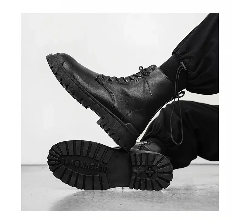 Scarpe da uomo alla moda da lavoro alla moda in pelle di lusso Chelsea britannica di alta qualità da uomo Scarpe da moto alla moda con plateau Scarpe da uomo nere primaverili