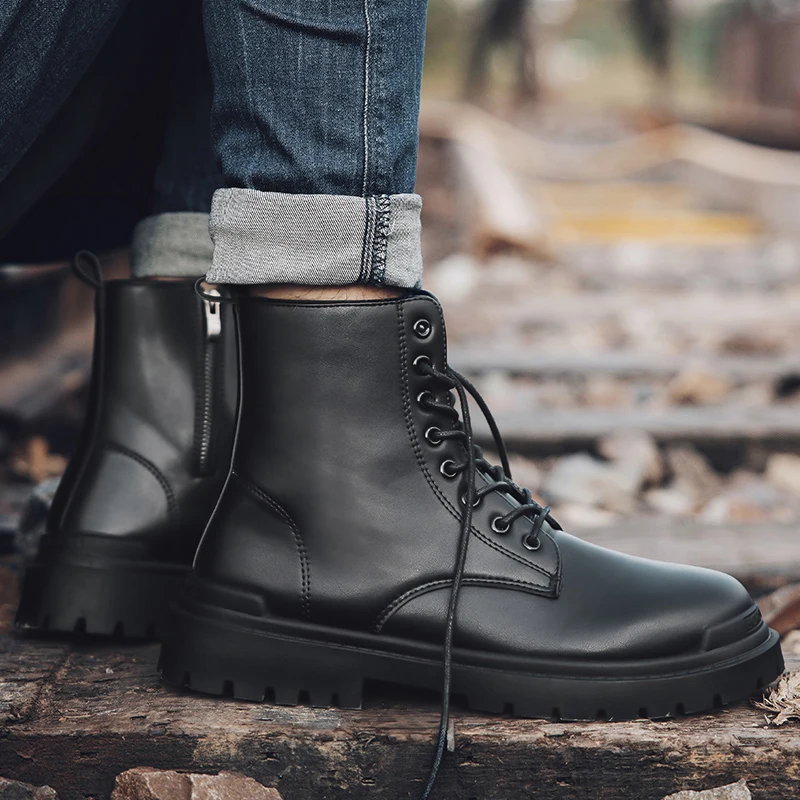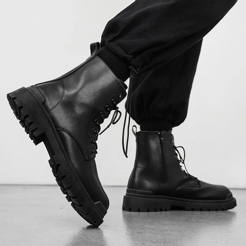 Scarpe da uomo alla moda da lavoro alla moda in pelle di lusso Chelsea britannica di alta qualità da uomo Scarpe da moto alla moda con plateau Scarpe da uomo nere primaverili