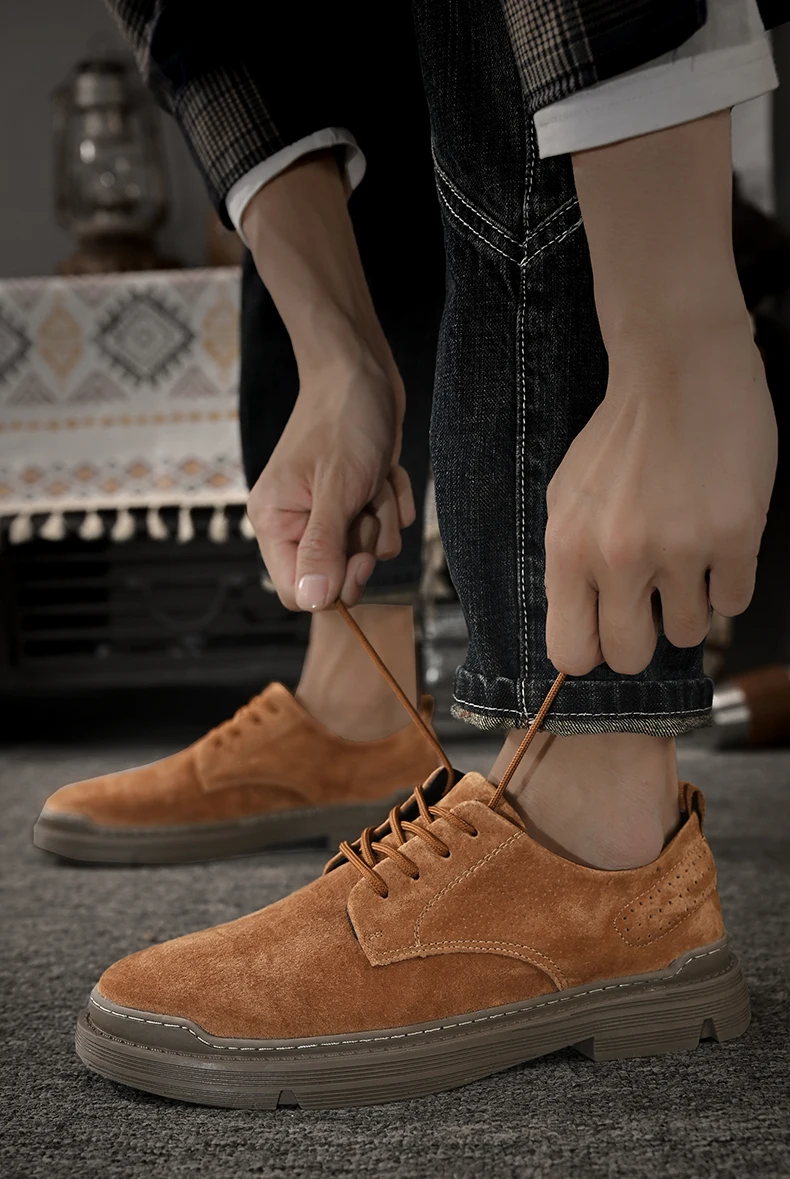 Scarpe da uomo retrò in vera pelle Casual antiscivolo Scarpe da lavoro quotidiane in pelle scamosciata resistenti all'usura Vendita calda Punta tonda Low Top British Styl 1Scarpe da uomo retrò in vera pelle Casual antiscivolo Scarpe da lavoro quotidiane in pelle scamosciata resistenti all’usura Vendita calda Punta tonda Low Top British Styl