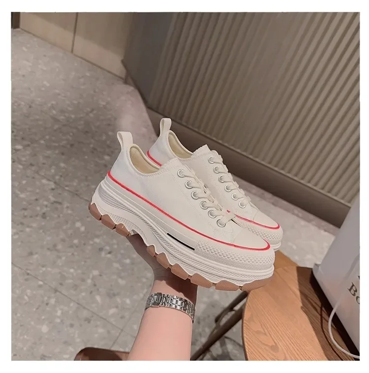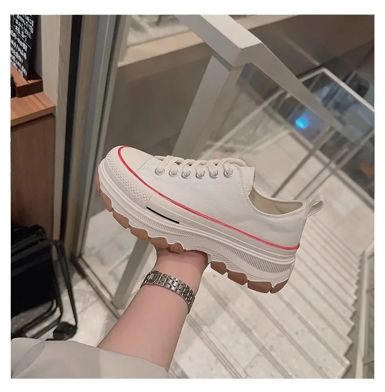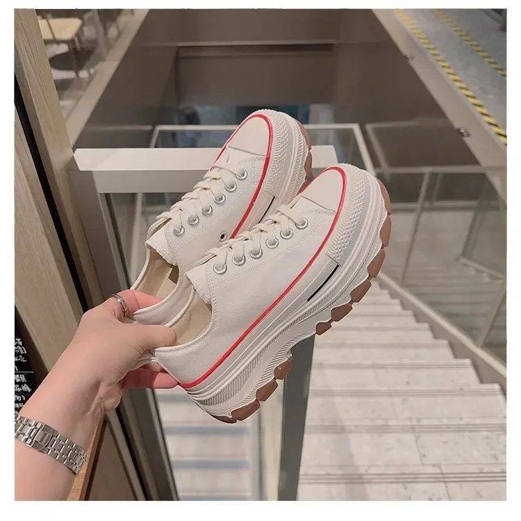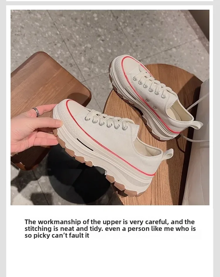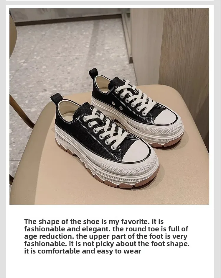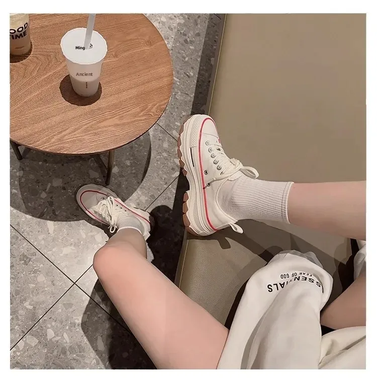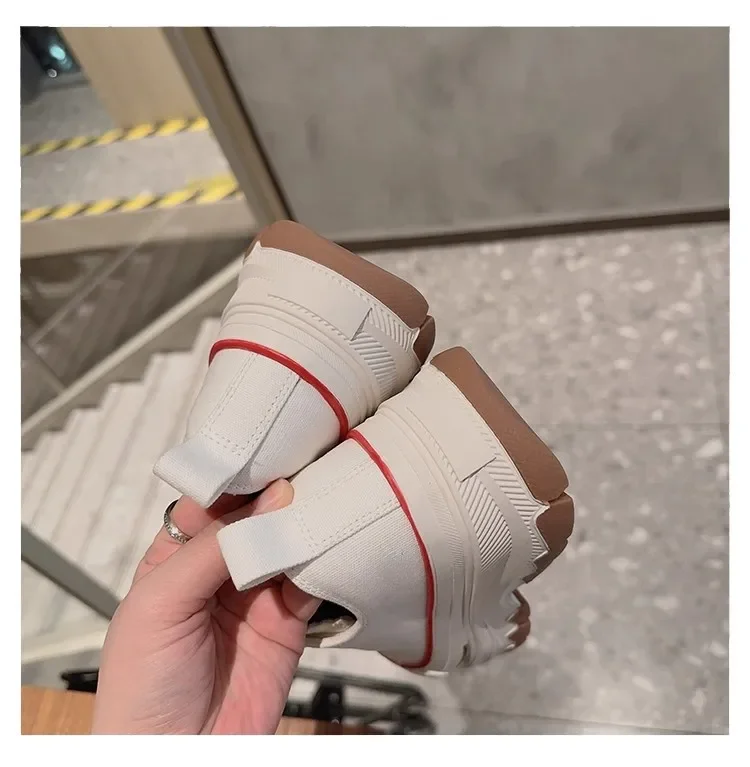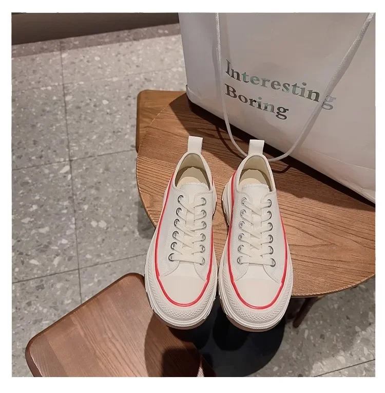 Scarpe di tela con fondo spesso da donna Primavera Nuovo stile che aumenta le scarpe da tavolo bianche sportive con piattaforma casual a testa grande 1Scarpe di tela con fondo spesso da donna Primavera Nuovo stile che aumenta le scarpe da tavolo bianche sportive con piattaforma casual a testa grande