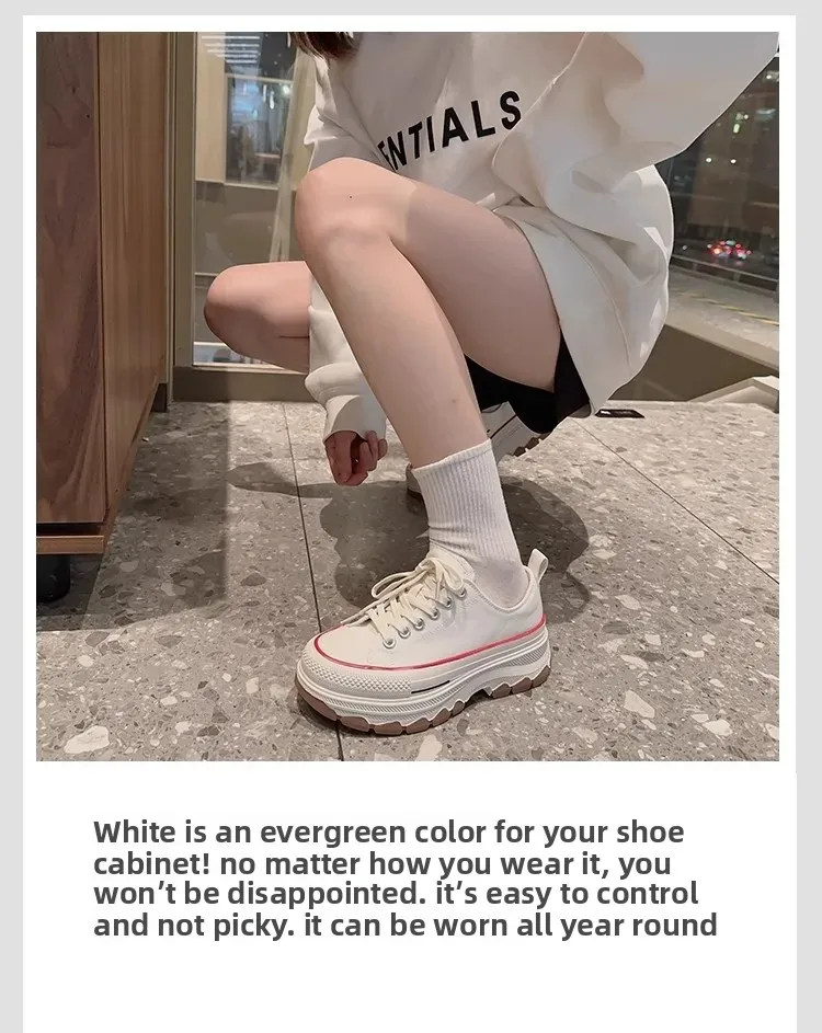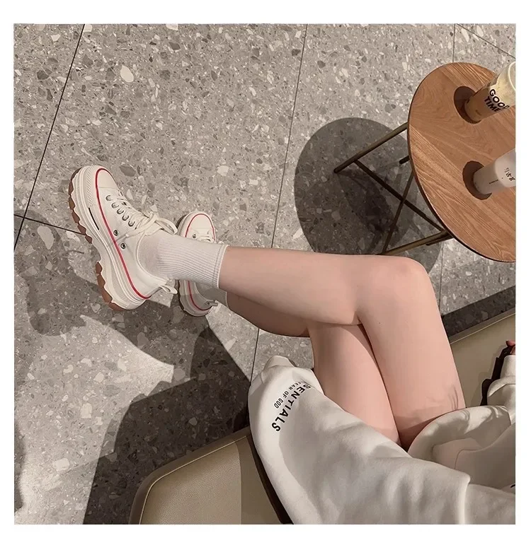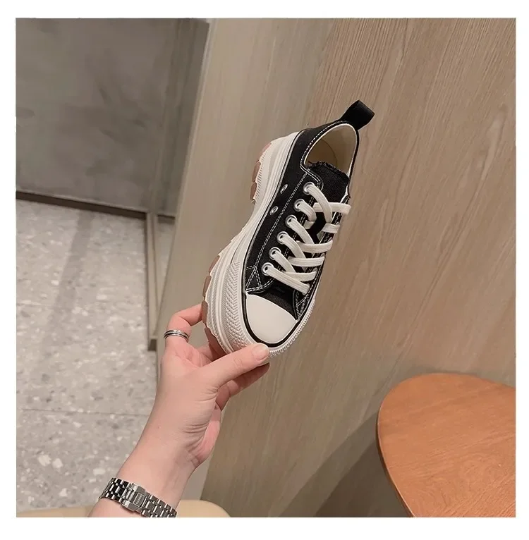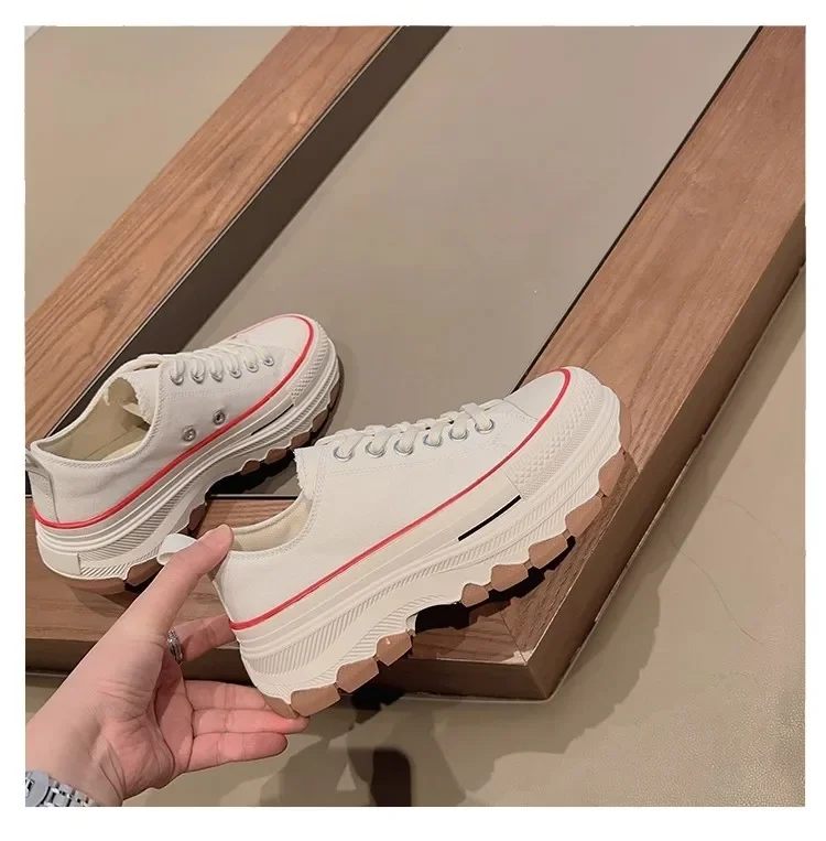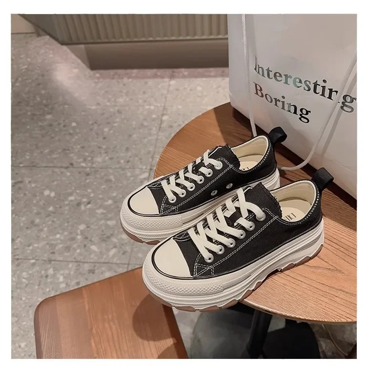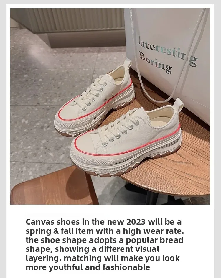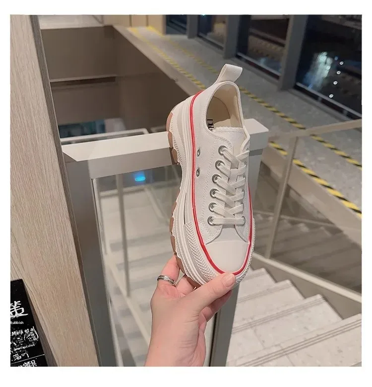 Scarpe di tela con fondo spesso da donna Primavera Nuovo stile che aumenta le scarpe da tavolo bianche sportive con piattaforma casual a testa grande 1Scarpe di tela con fondo spesso da donna Primavera Nuovo stile che aumenta le scarpe da tavolo bianche sportive con piattaforma casual a testa grande