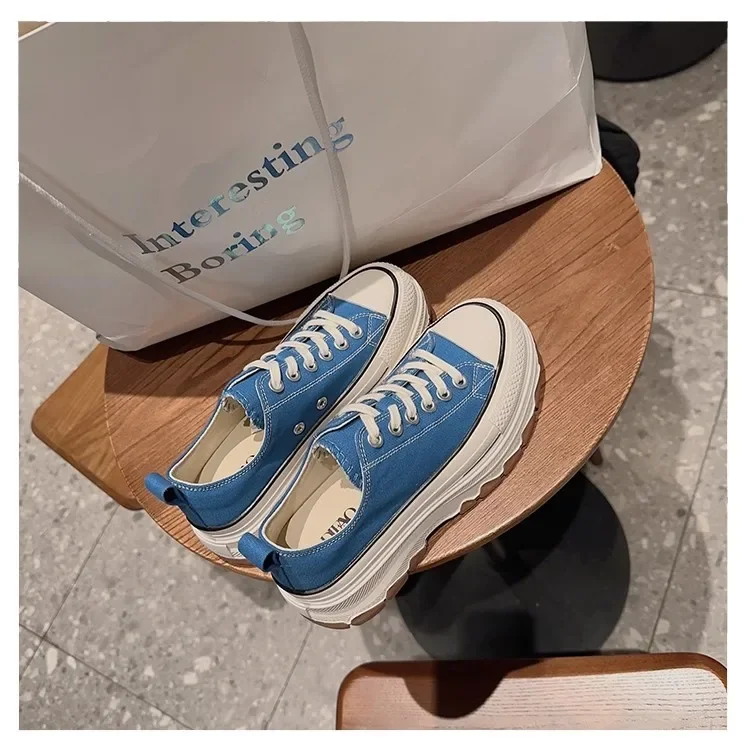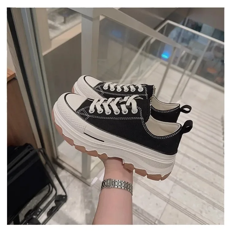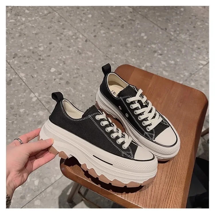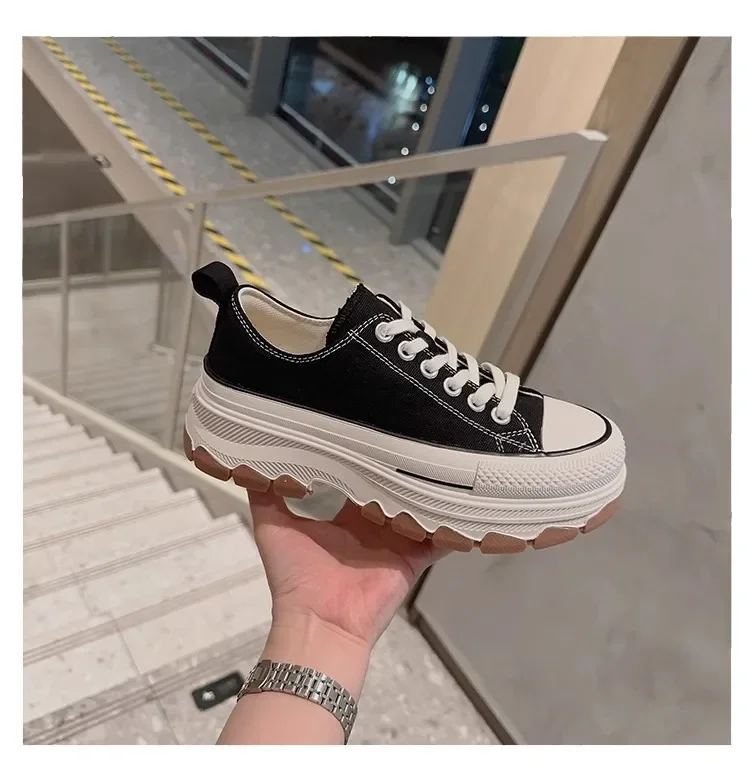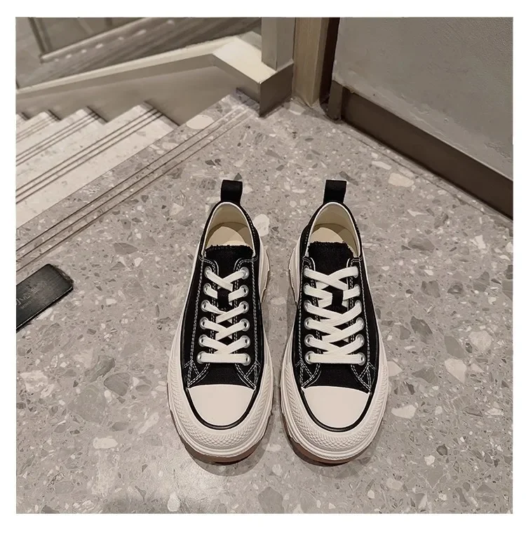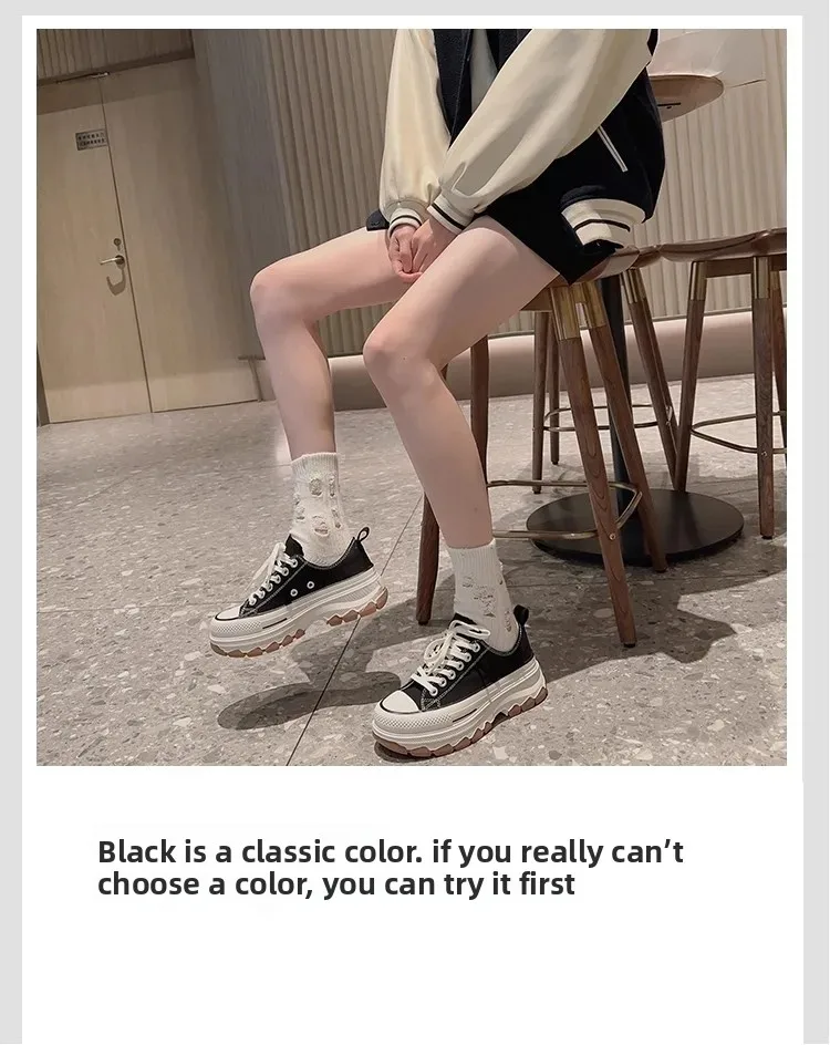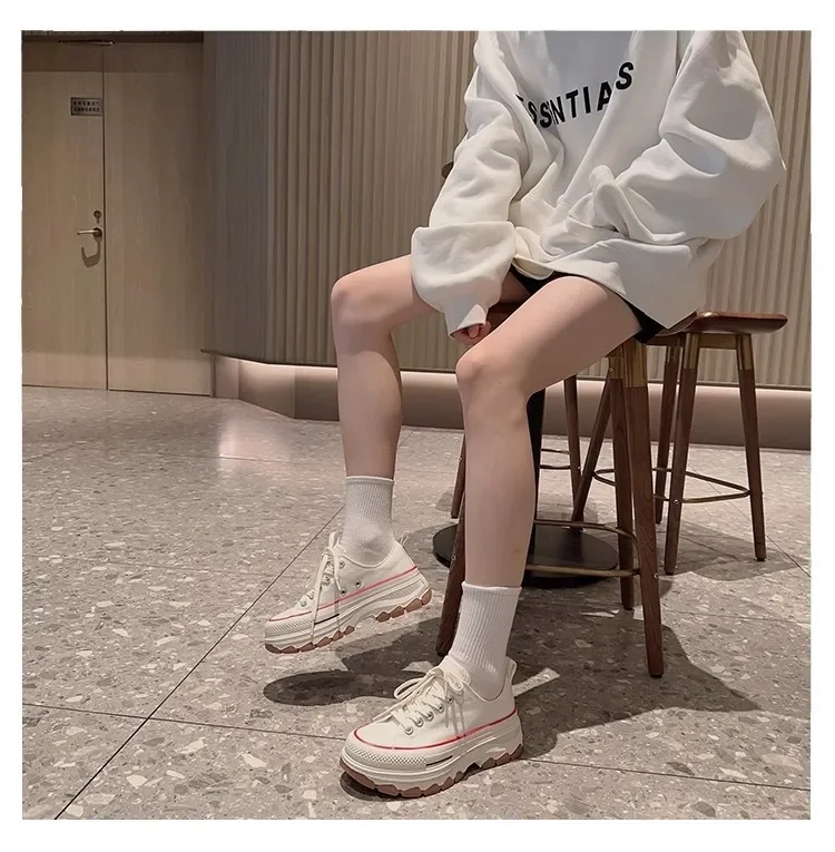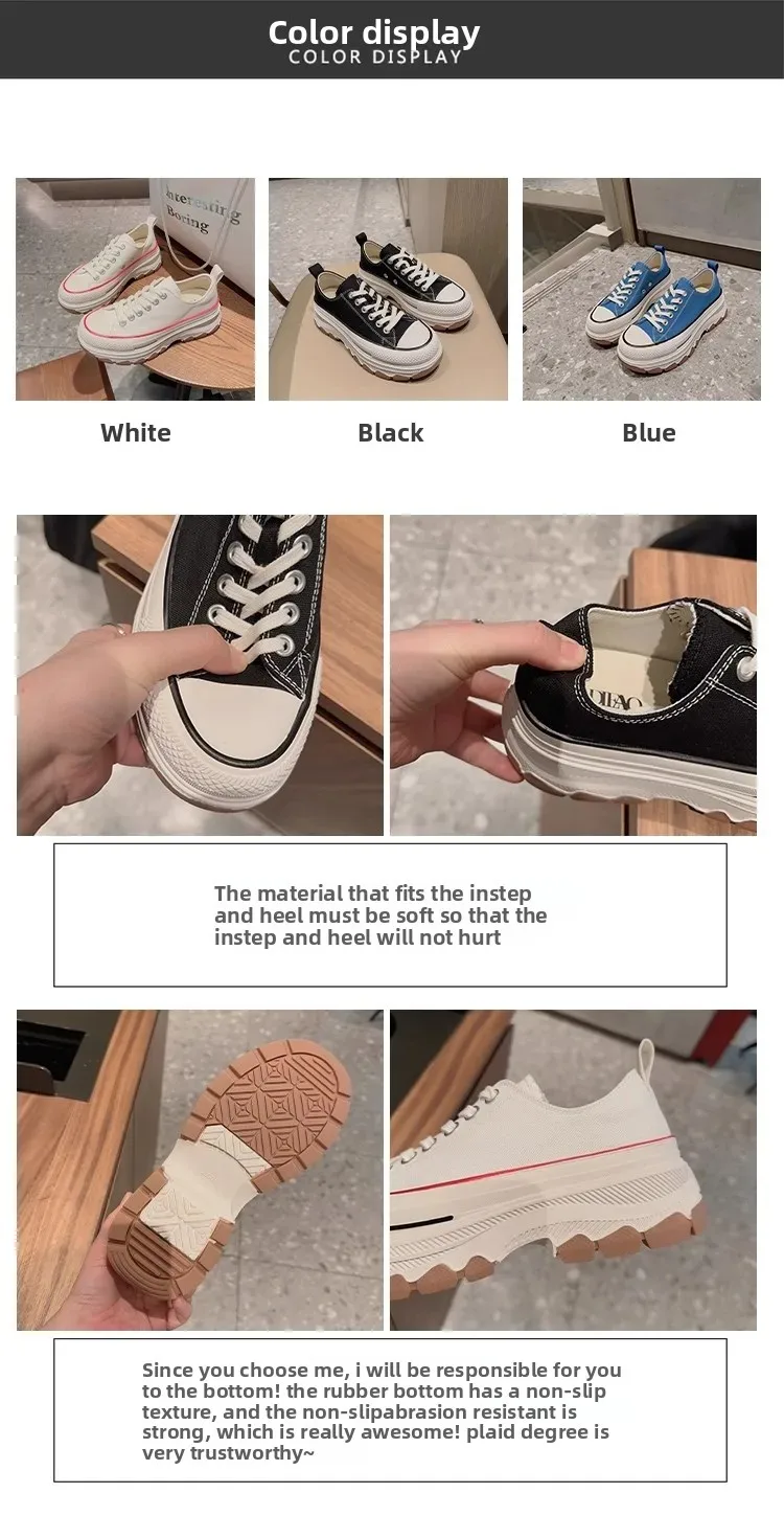 Scarpe di tela con fondo spesso da donna Primavera Nuovo stile che aumenta le scarpe da tavolo bianche sportive con piattaforma casual a testa grande 1Scarpe di tela con fondo spesso da donna Primavera Nuovo stile che aumenta le scarpe da tavolo bianche sportive con piattaforma casual a testa grande