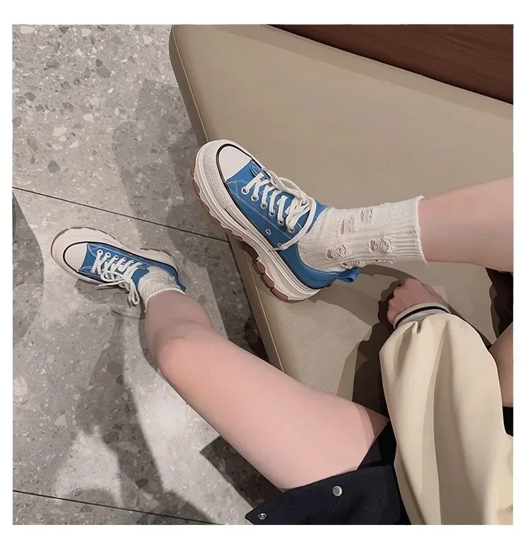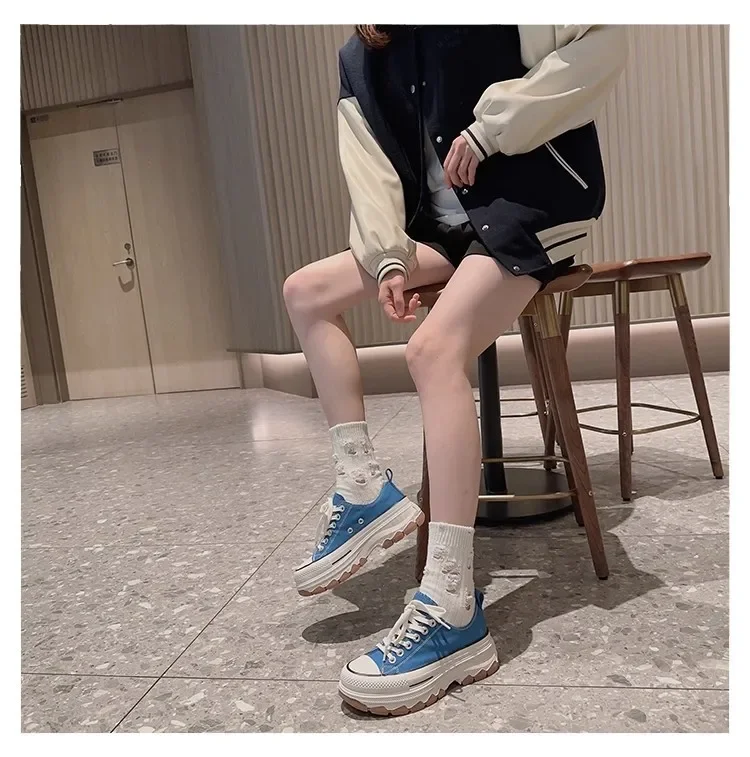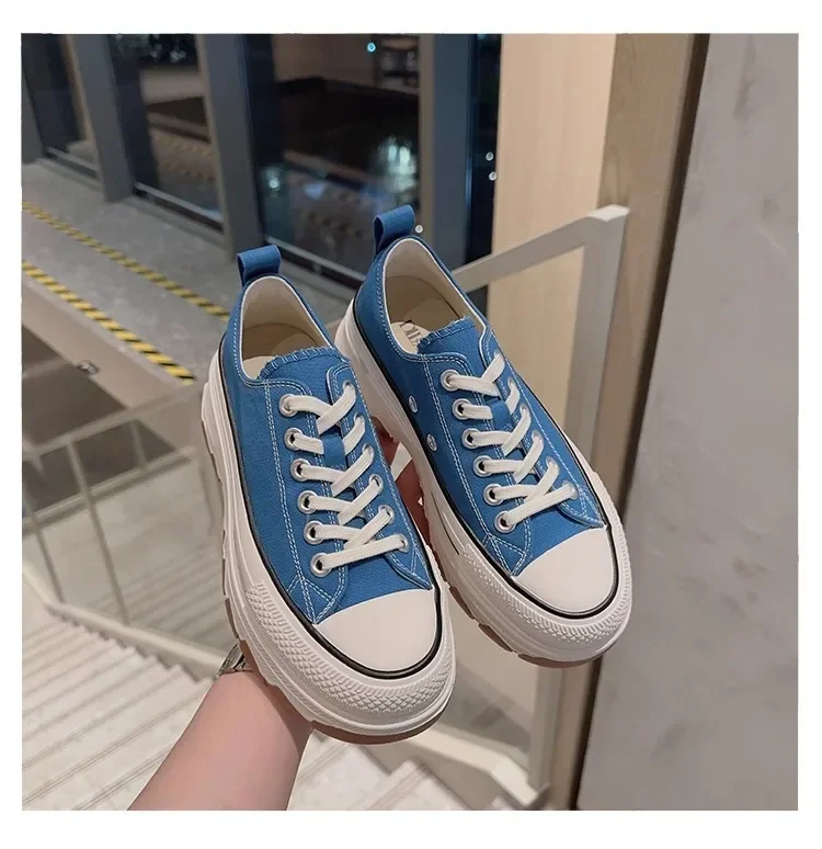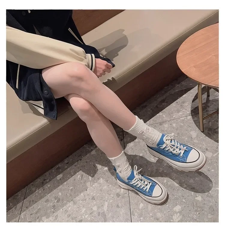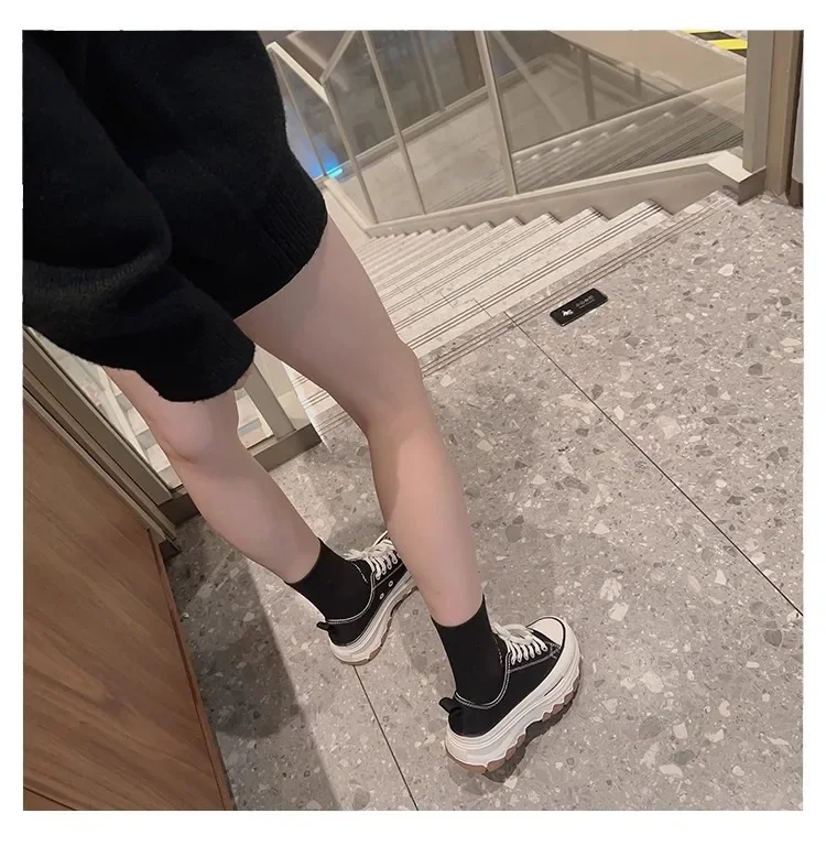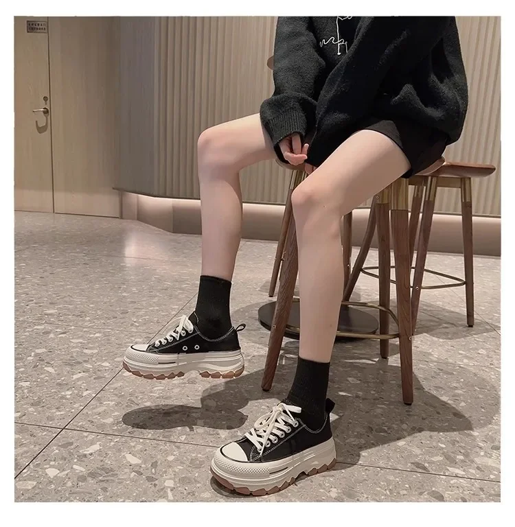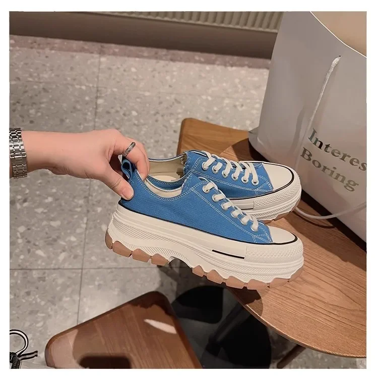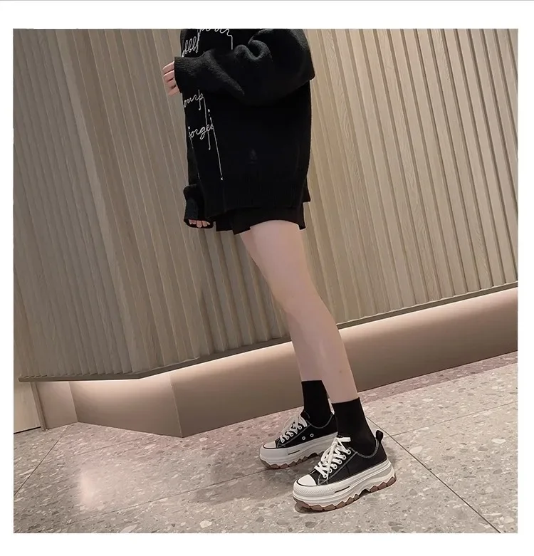 Scarpe di tela con fondo spesso da donna Primavera Nuovo stile che aumenta le scarpe da tavolo bianche sportive con piattaforma casual a testa grande 1Scarpe di tela con fondo spesso da donna Primavera Nuovo stile che aumenta le scarpe da tavolo bianche sportive con piattaforma casual a testa grande