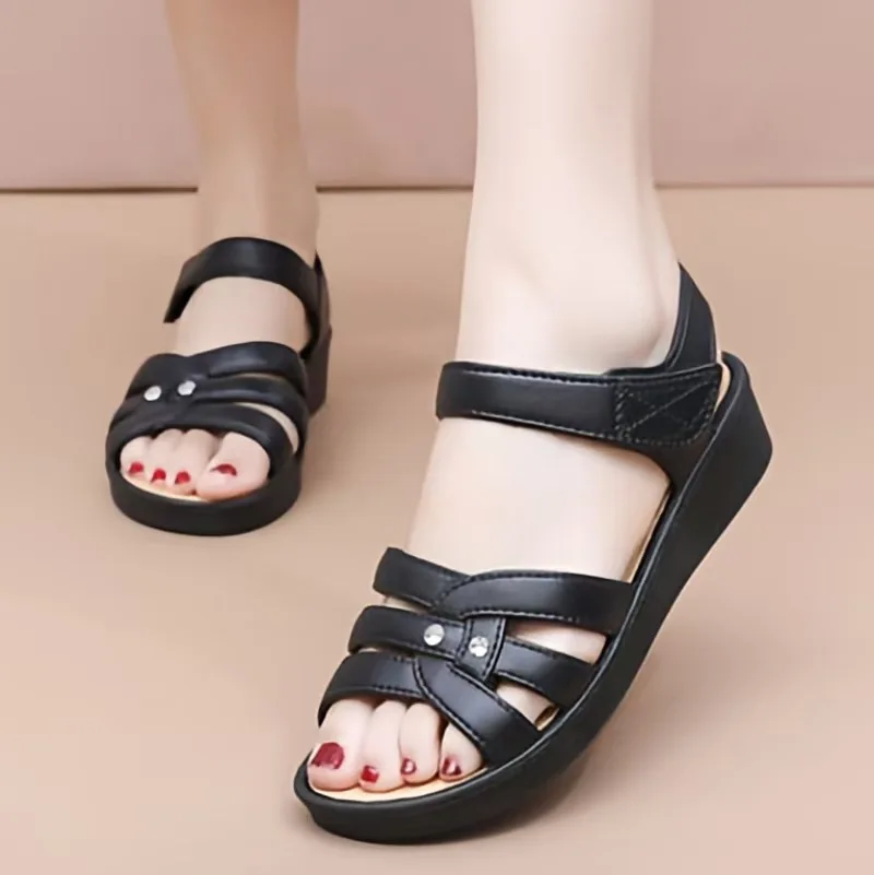 Scarpe estive Scarpe da spiaggia Sandali con zeppa in PVC moda donna Sandali neri comodi casual Sandali con fondo morbido per anziani