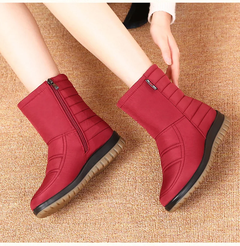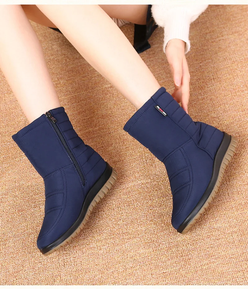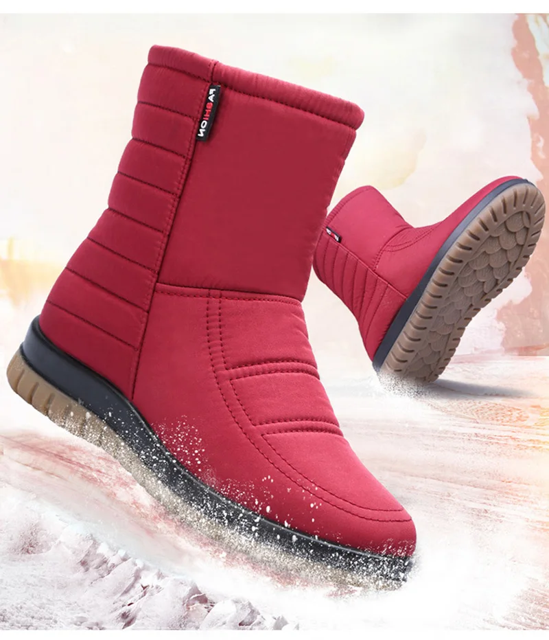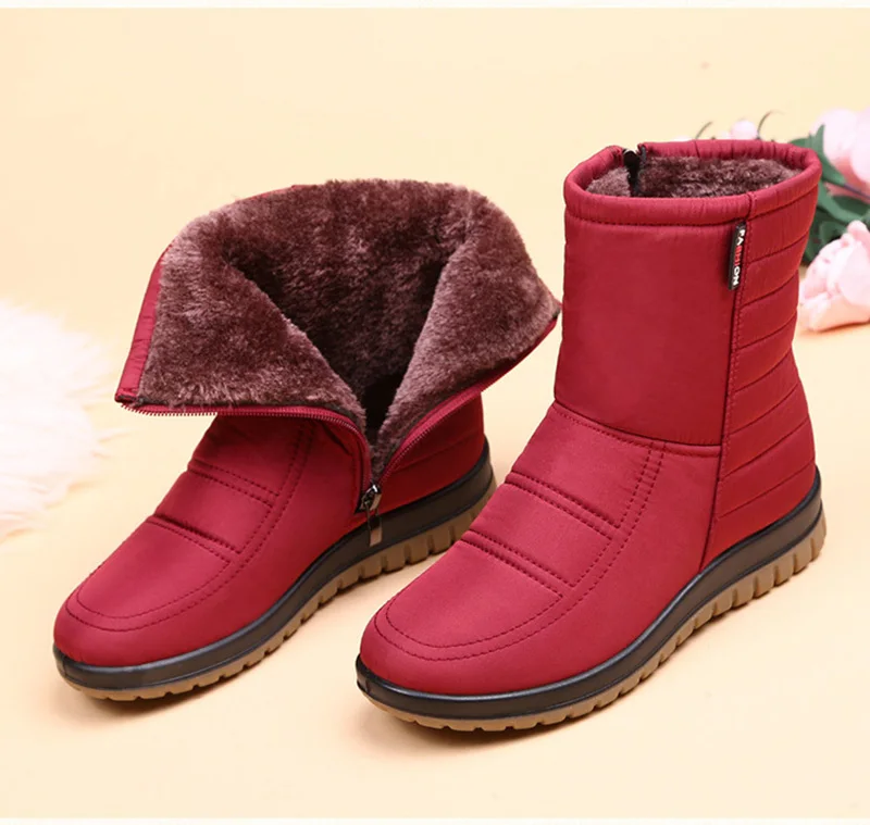 Scarpe invernali da donna stivali da neve impermeabili stivaletti da donna in peluche caldi piatti antiscivolo nero blu rosso taglia grande 42