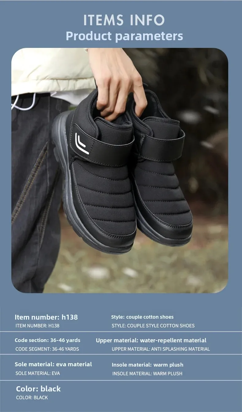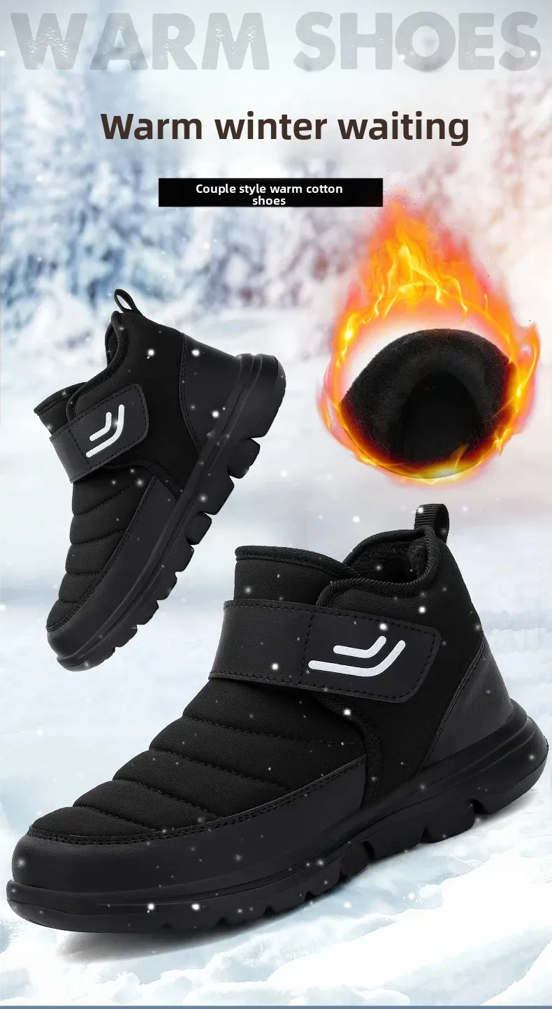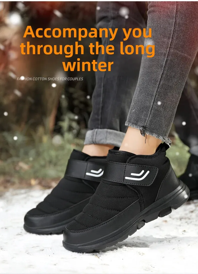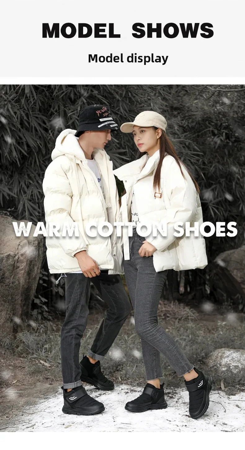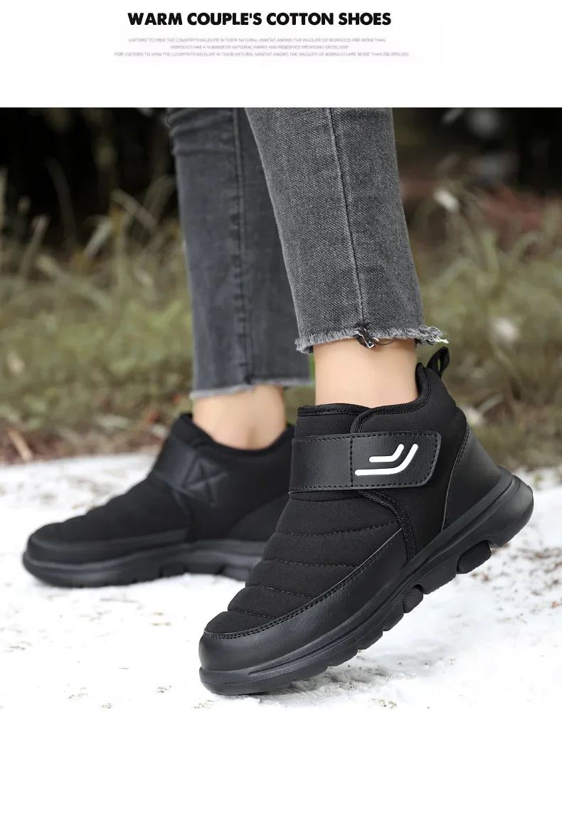 Scarpe invernali in cotone con fondo spesso caldo Stivali alti per il tempo libero all'aperto Stivali da neve con nastro magico per uomo e donna Punta tonda 1Scarpe invernali in cotone con fondo spesso caldo Stivali alti per il tempo libero all’aperto Stivali da neve con nastro magico per uomo e donna Punta tonda