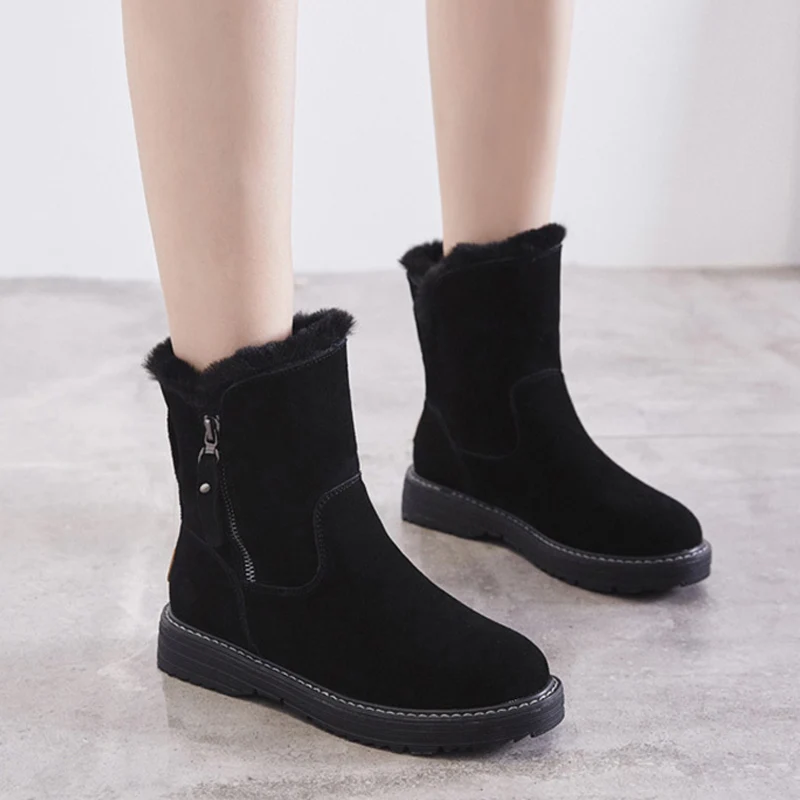 Stivali da donna Stivaletti da donna con pelliccia Scarpe invernali Donna Tacchi bassi Stivali invernali da neve Impermeabili Botas Mujer Calzature invernali
