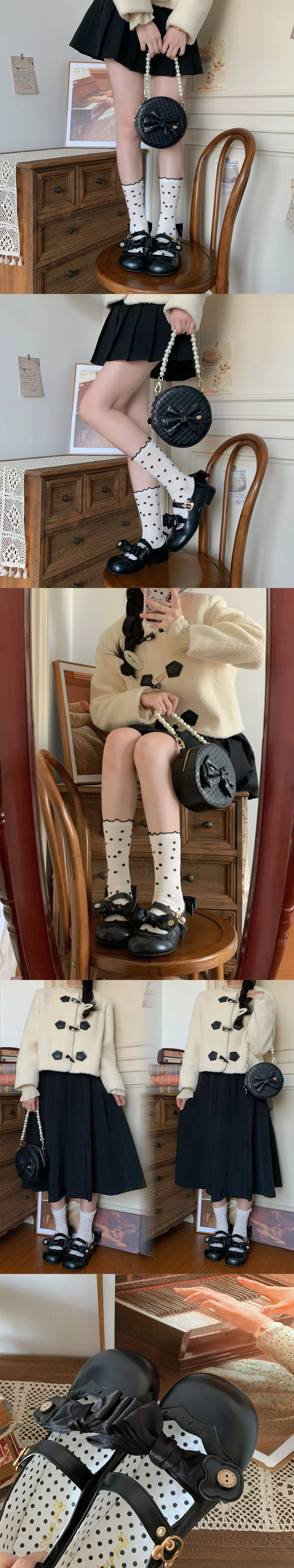 Scarpe Lolita giapponesi Kawaii Sweet Bow Mary Janes Scarpe con fibbia Design Punta rotonda Décolleté con plateau casual carino