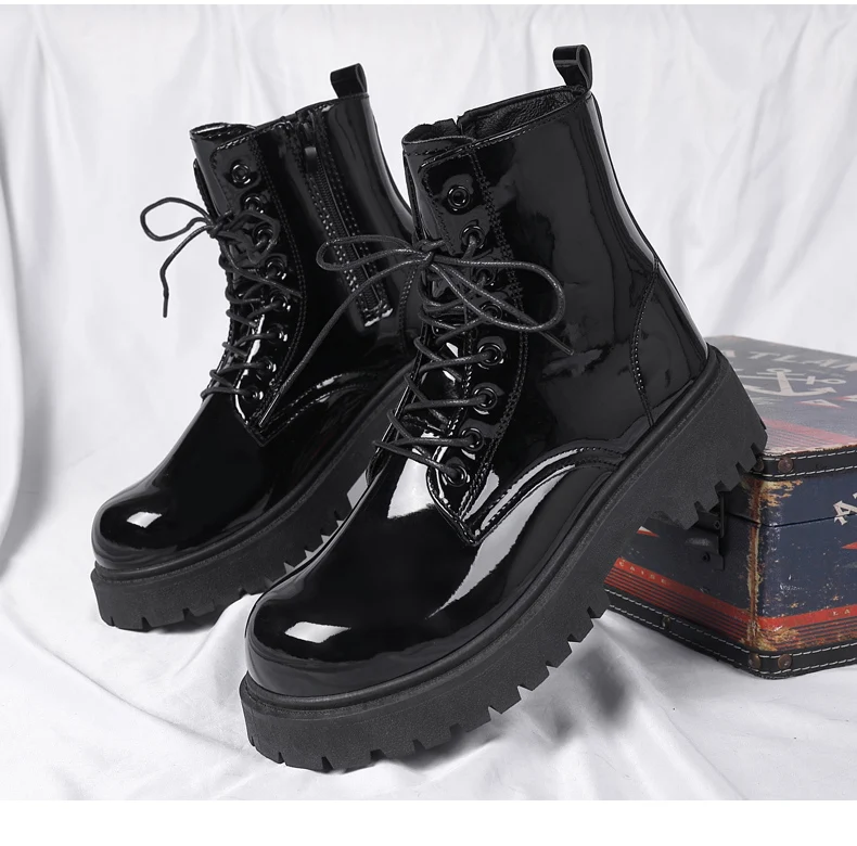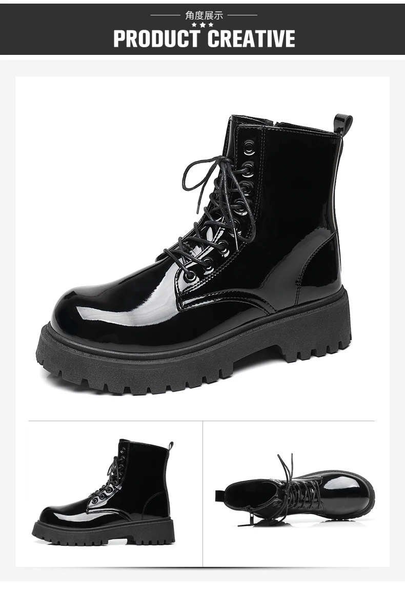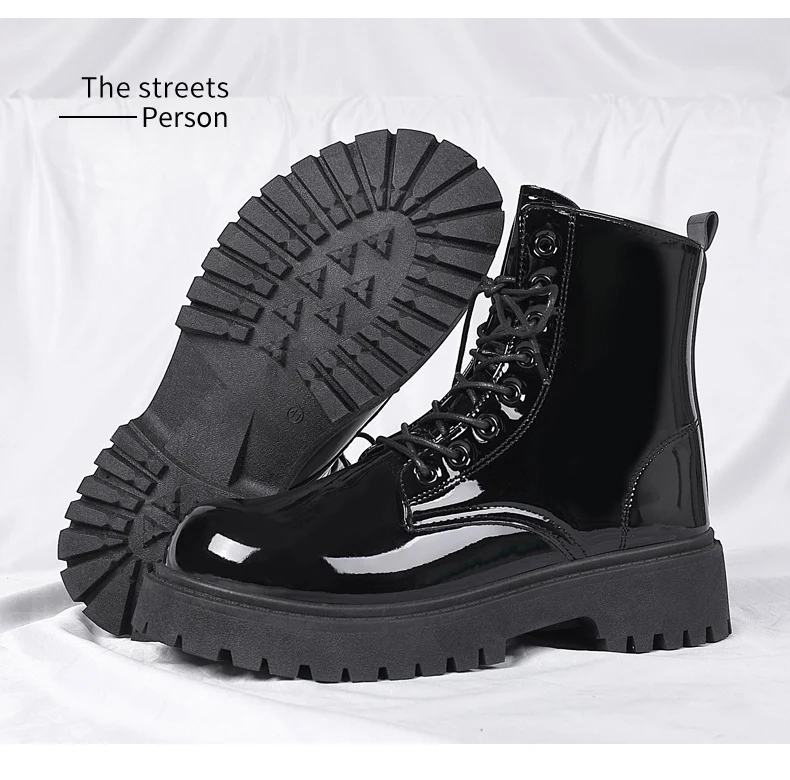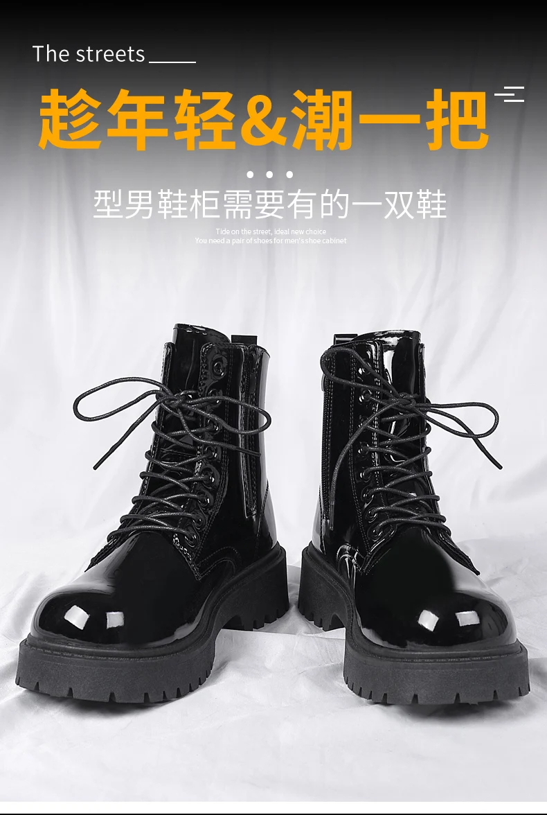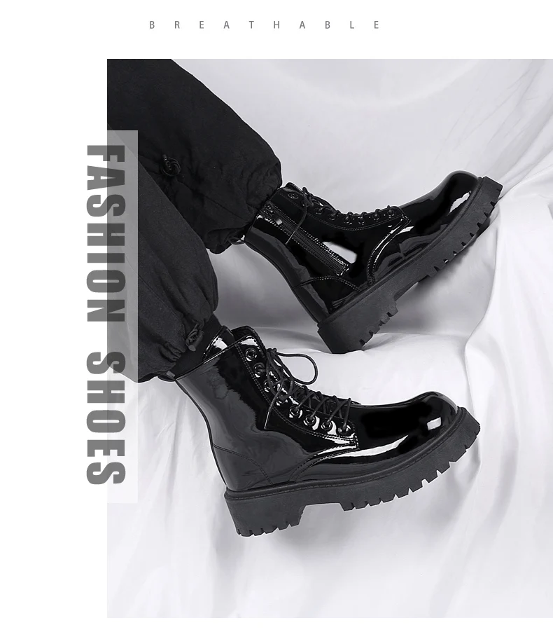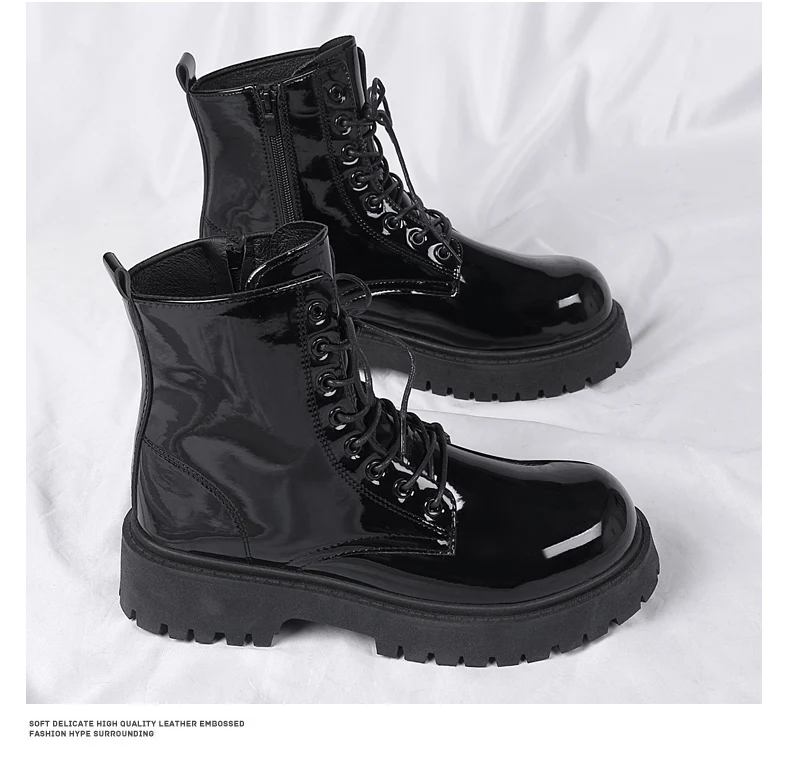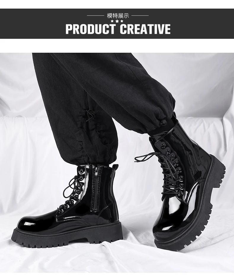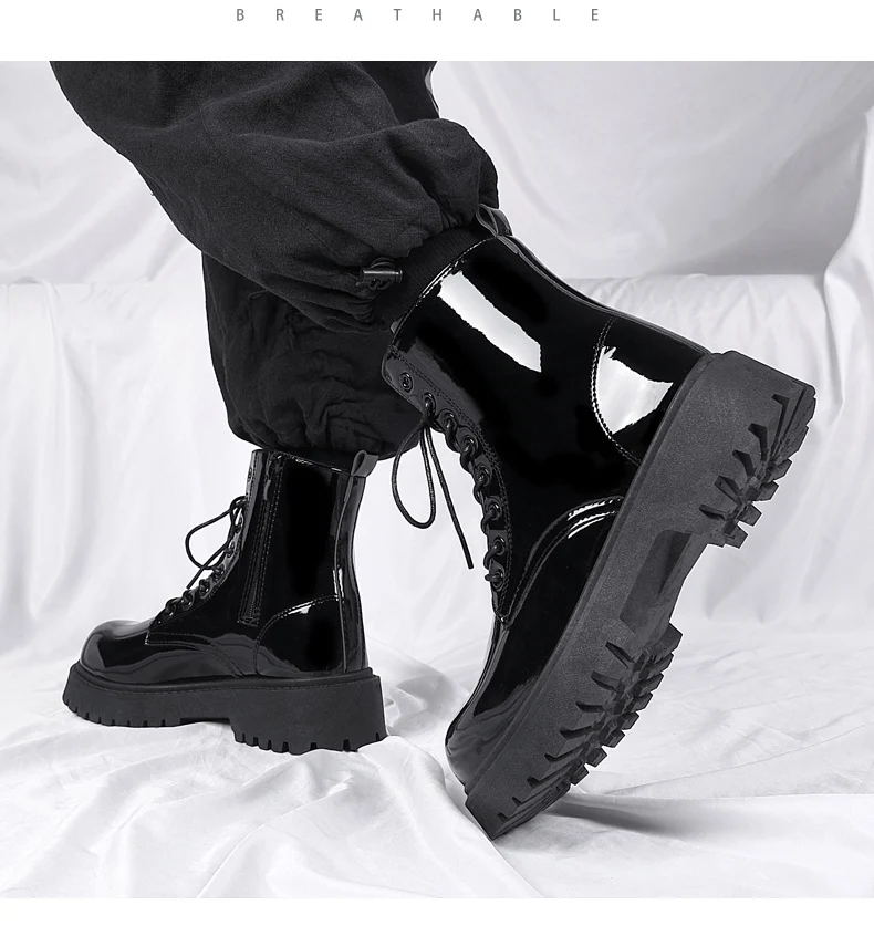 Scarpe rialzanti da uomo con suola spessa in stile britannico, stivali da moto alti in pelle da moto alla moda antiscivolo e impermeabili