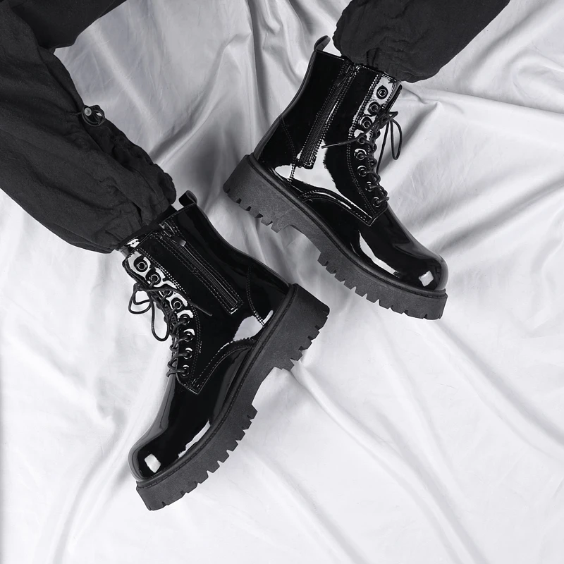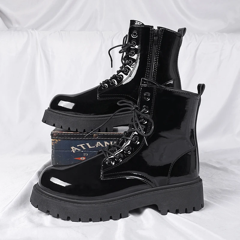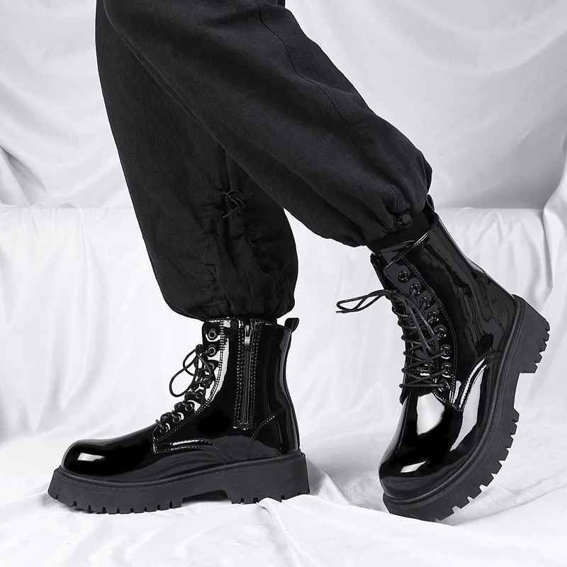 Scarpe rialzanti da uomo con suola spessa in stile britannico, stivali da moto alti in pelle da moto alla moda antiscivolo e impermeabili