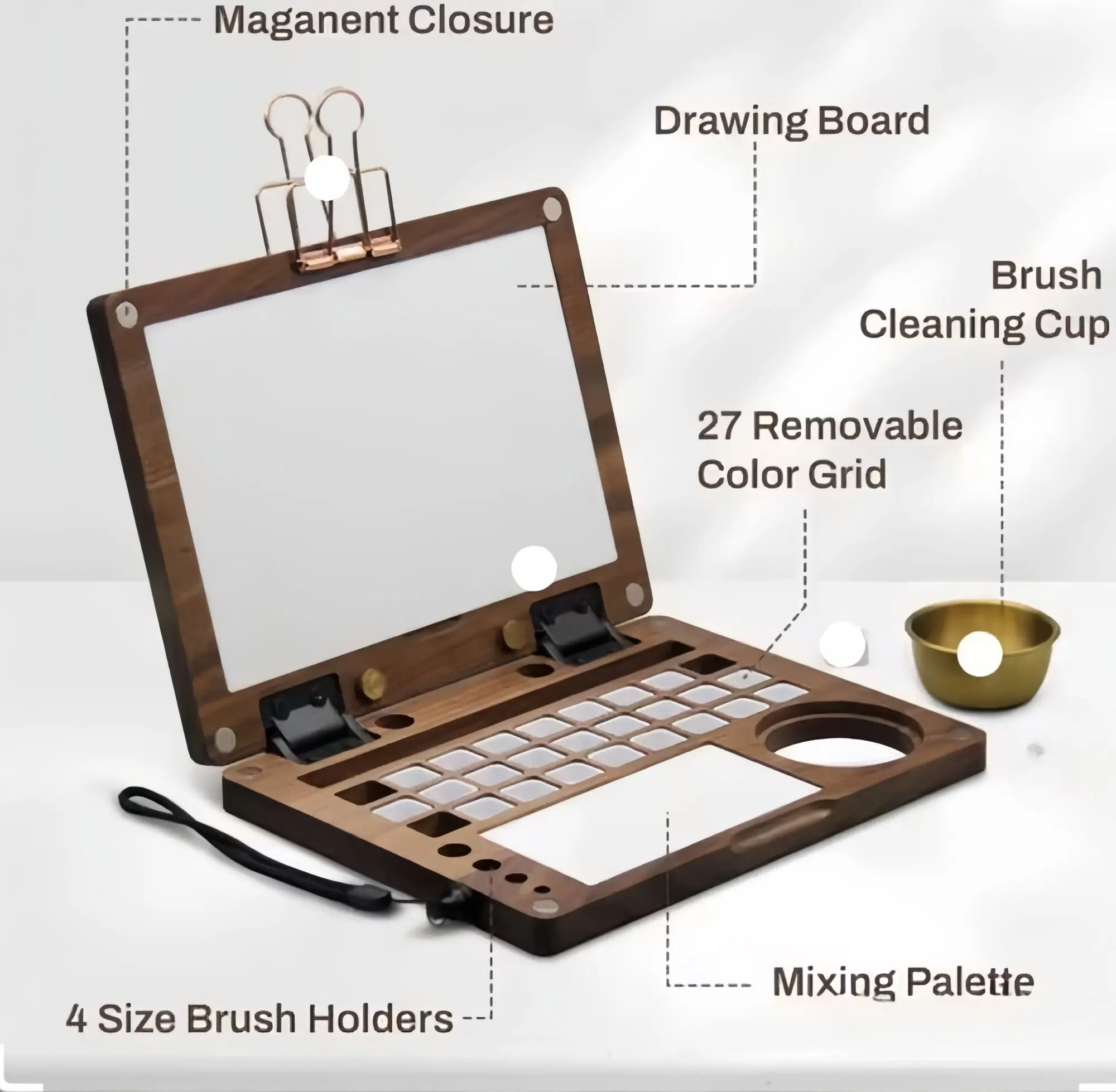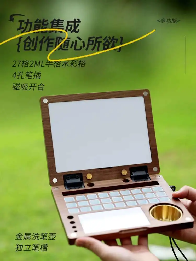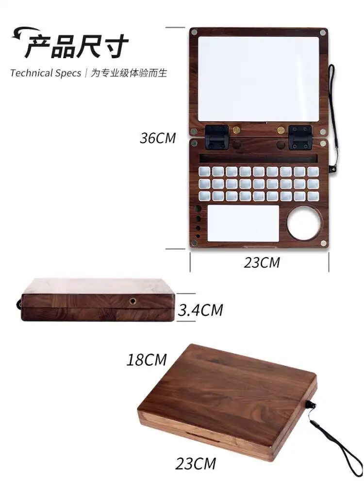 Scatola da viaggio per schizzi ad acquerello in noce nera, scatola per pittura ad acquerello, schizzi all'aperto multifunzionali portatili 1Scatola da viaggio per schizzi ad acquerello in noce nera, scatola per pittura ad acquerello, schizzi all’aperto multifunzionali portatili