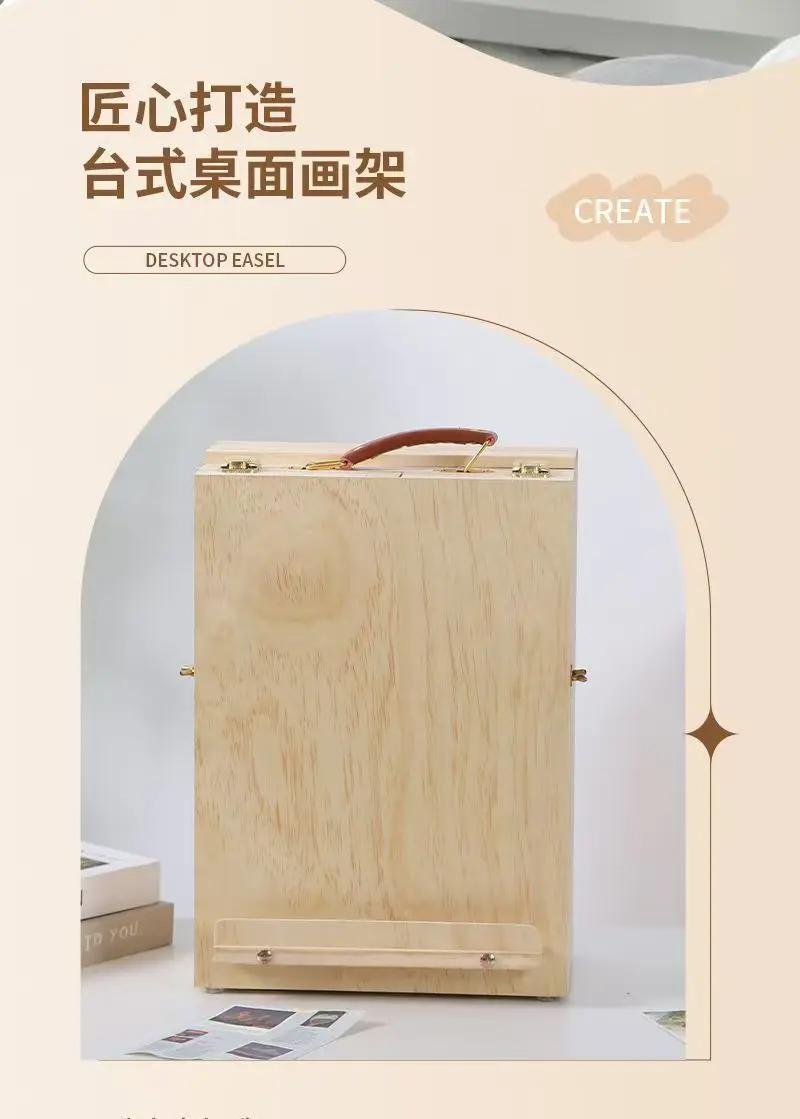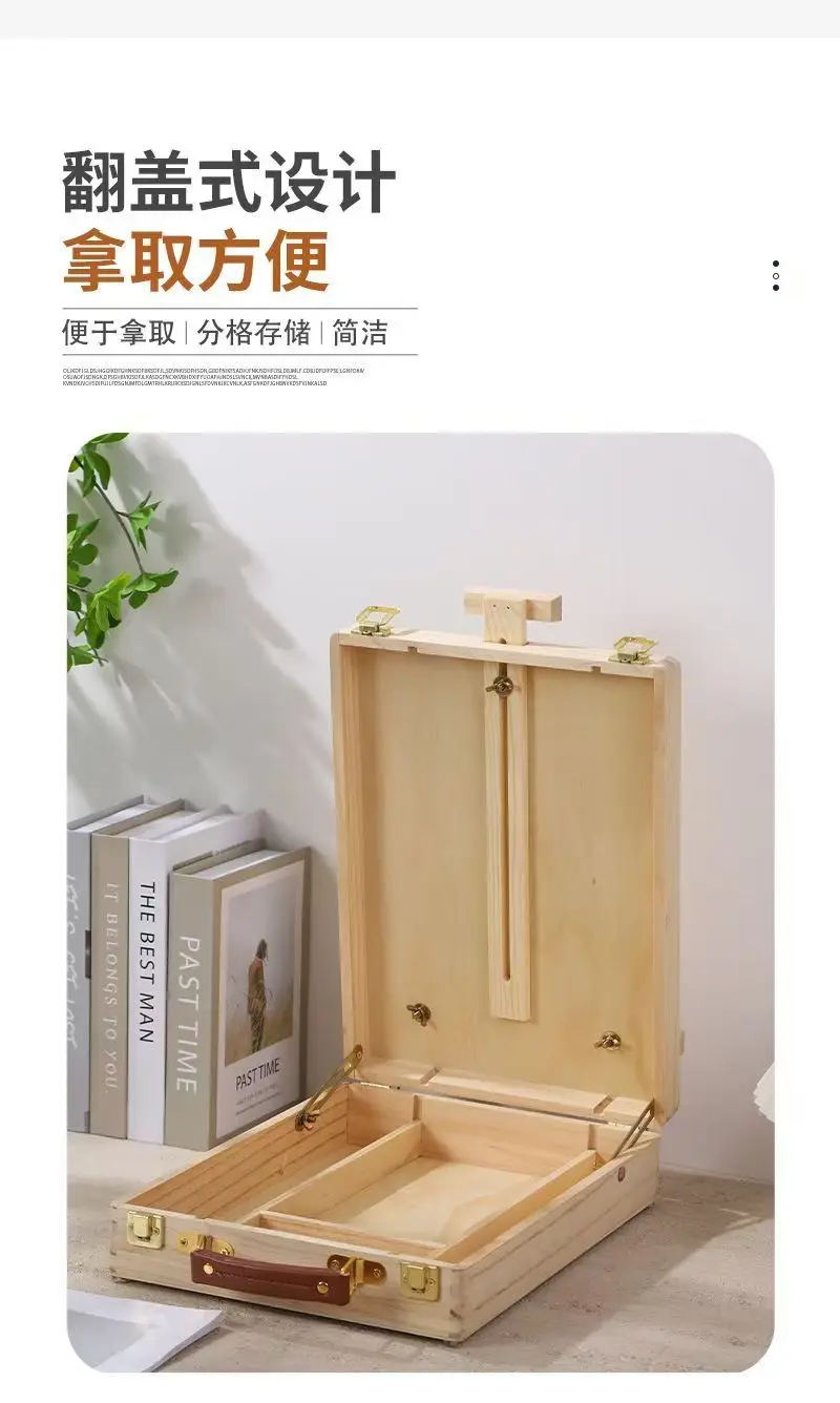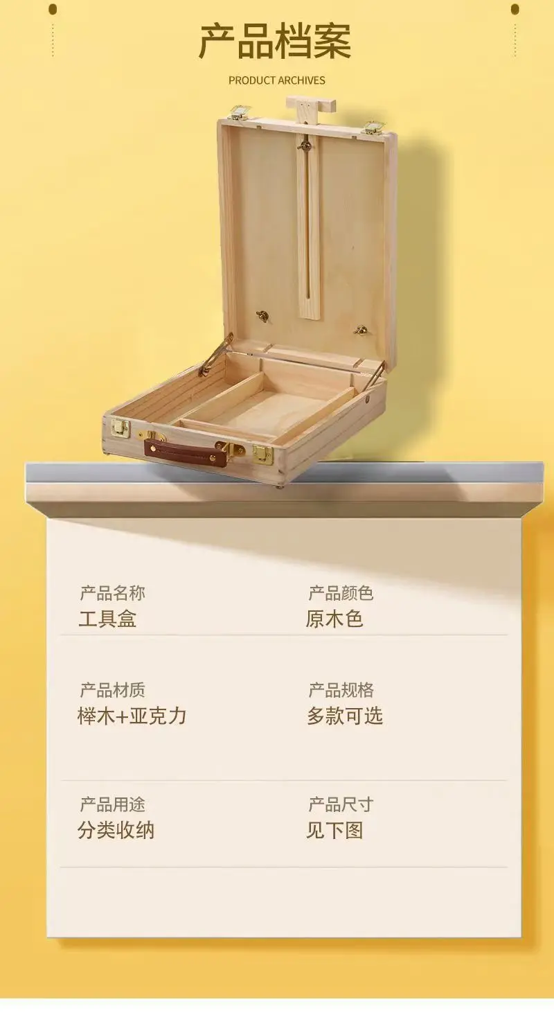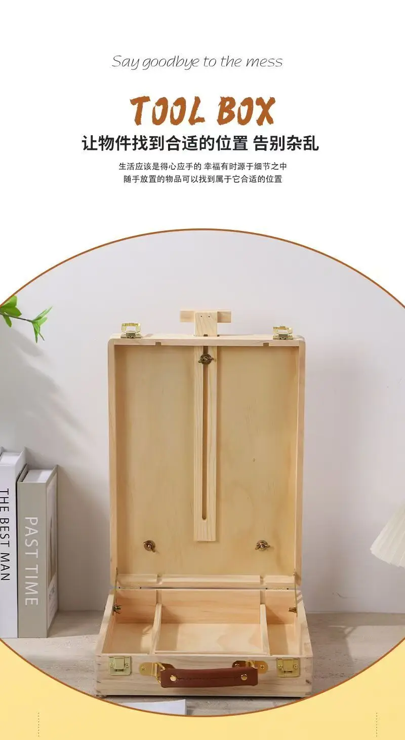 Scatola per pittura a olio portatile portatile ad angolo arrotondato in legno per schizzi, supporto per pittura, custodia per attrezzi a doppio uso