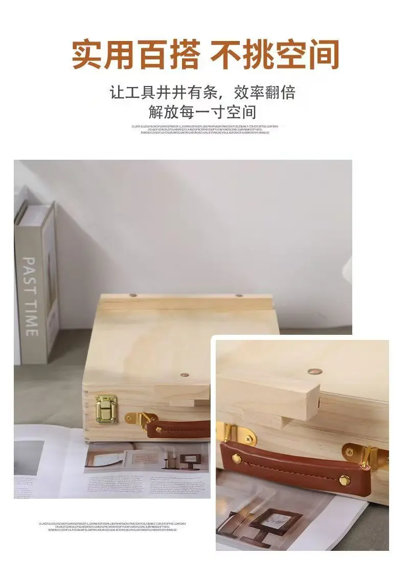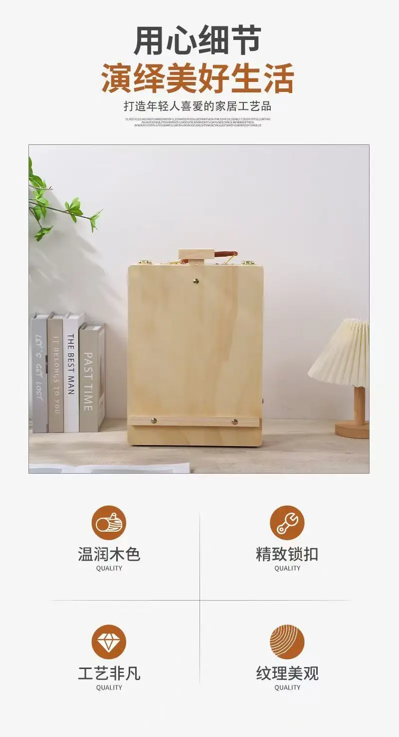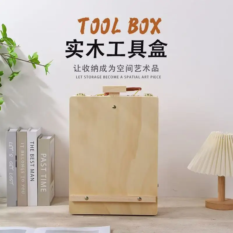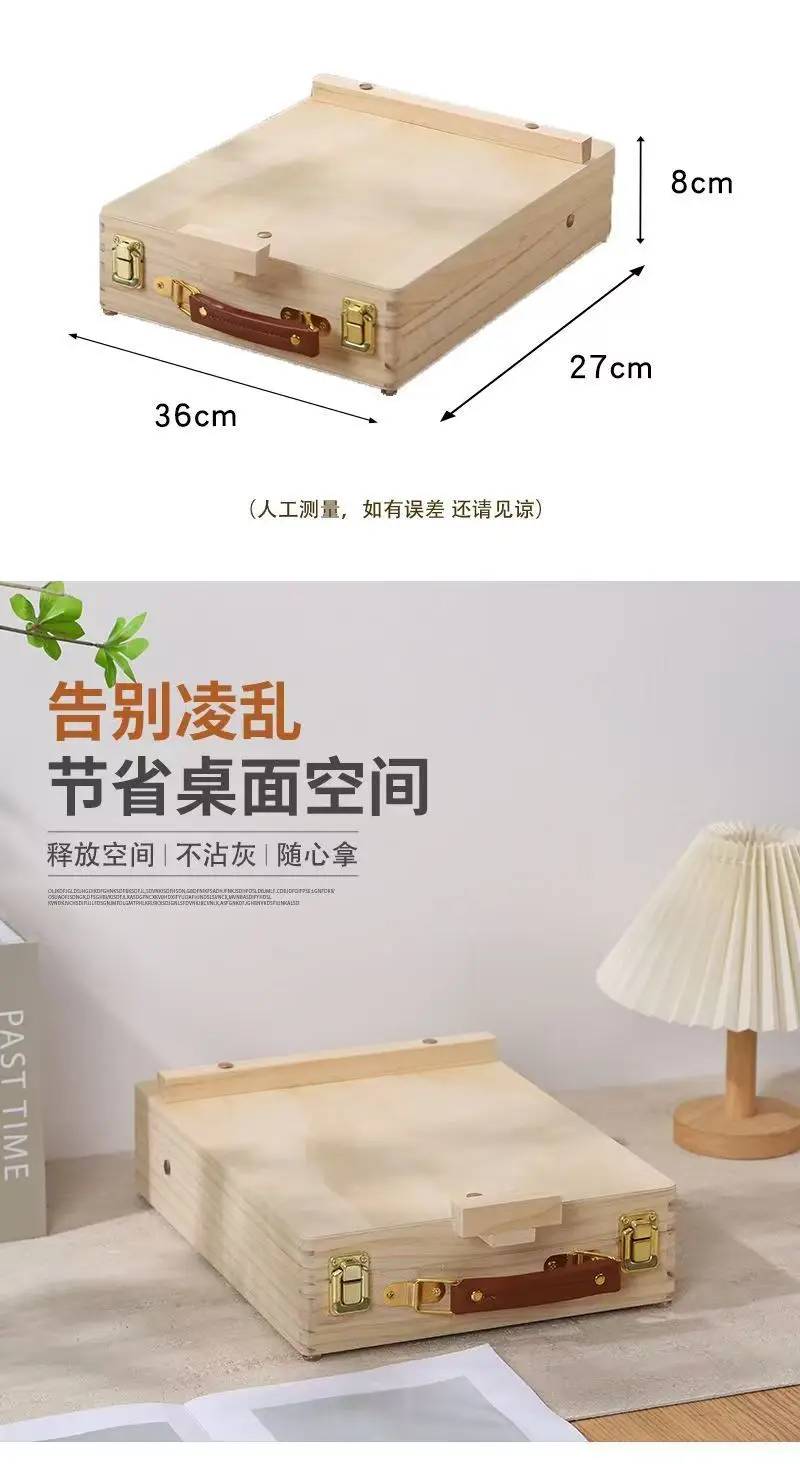 Scatola per pittura a olio portatile portatile ad angolo arrotondato in legno per schizzi, supporto per pittura, custodia per attrezzi a doppio uso
