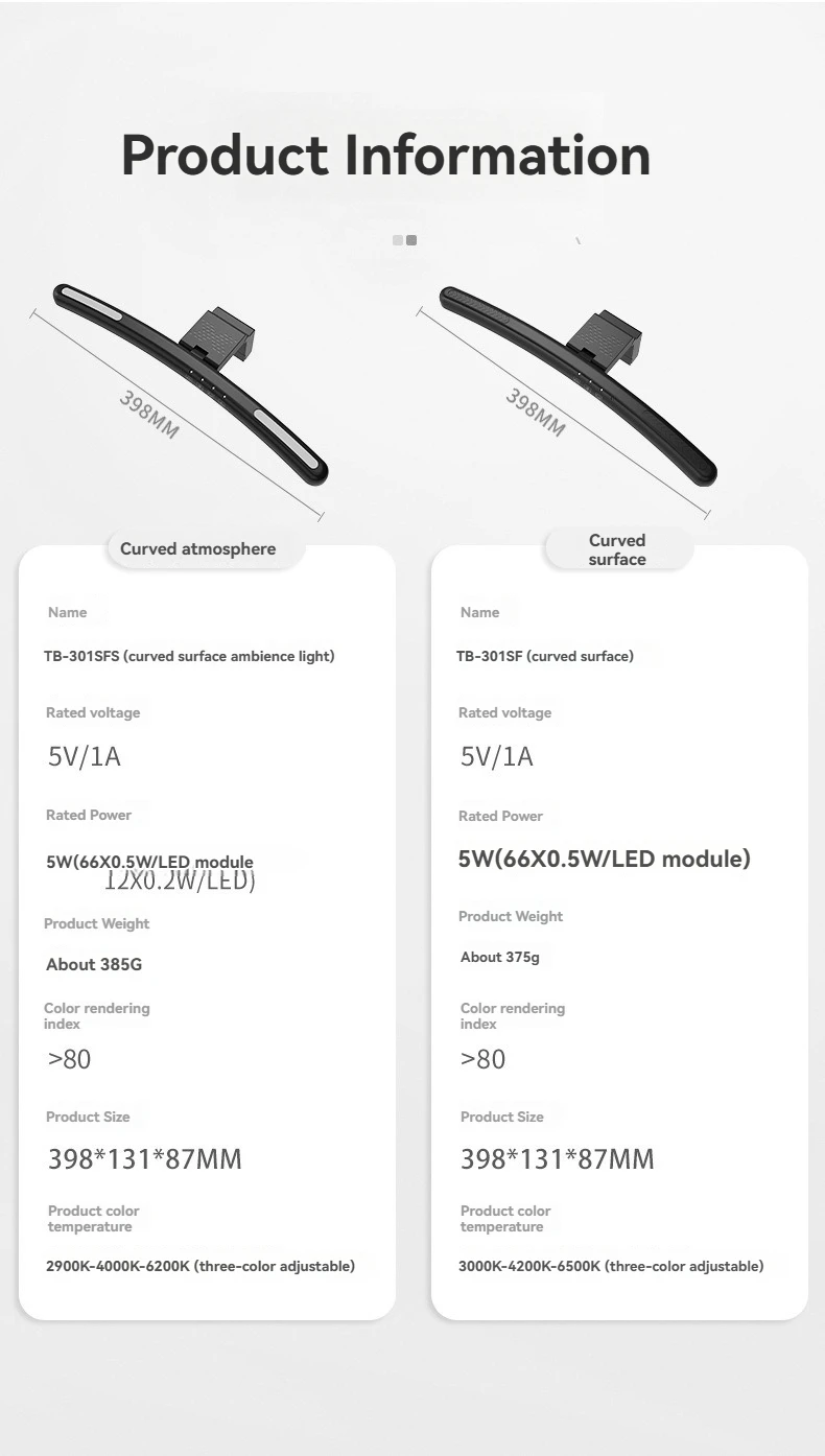 Modello del prodotto: TB-301SFS (lunghezza lampada 398MM) lampada d’atmosfera colorata lampada a sospensione a schermo curvo (modello plug-in) parametri