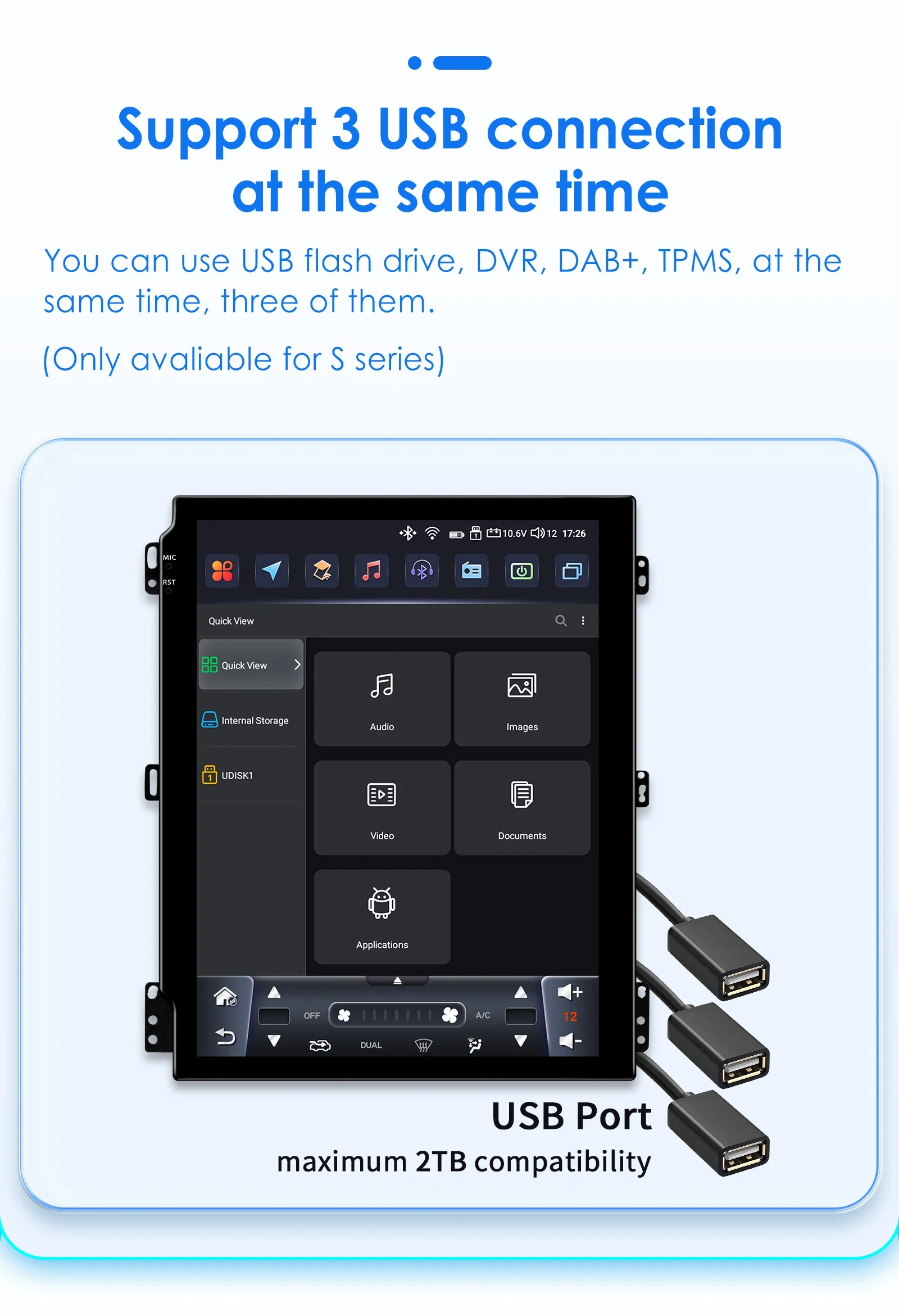 La serie S supporta 3 Connessione USB:Memoria esterna: porta USB fino a 2 TB, questa unità può riprodurre file video e audio dal tuo dispositivo esterno.