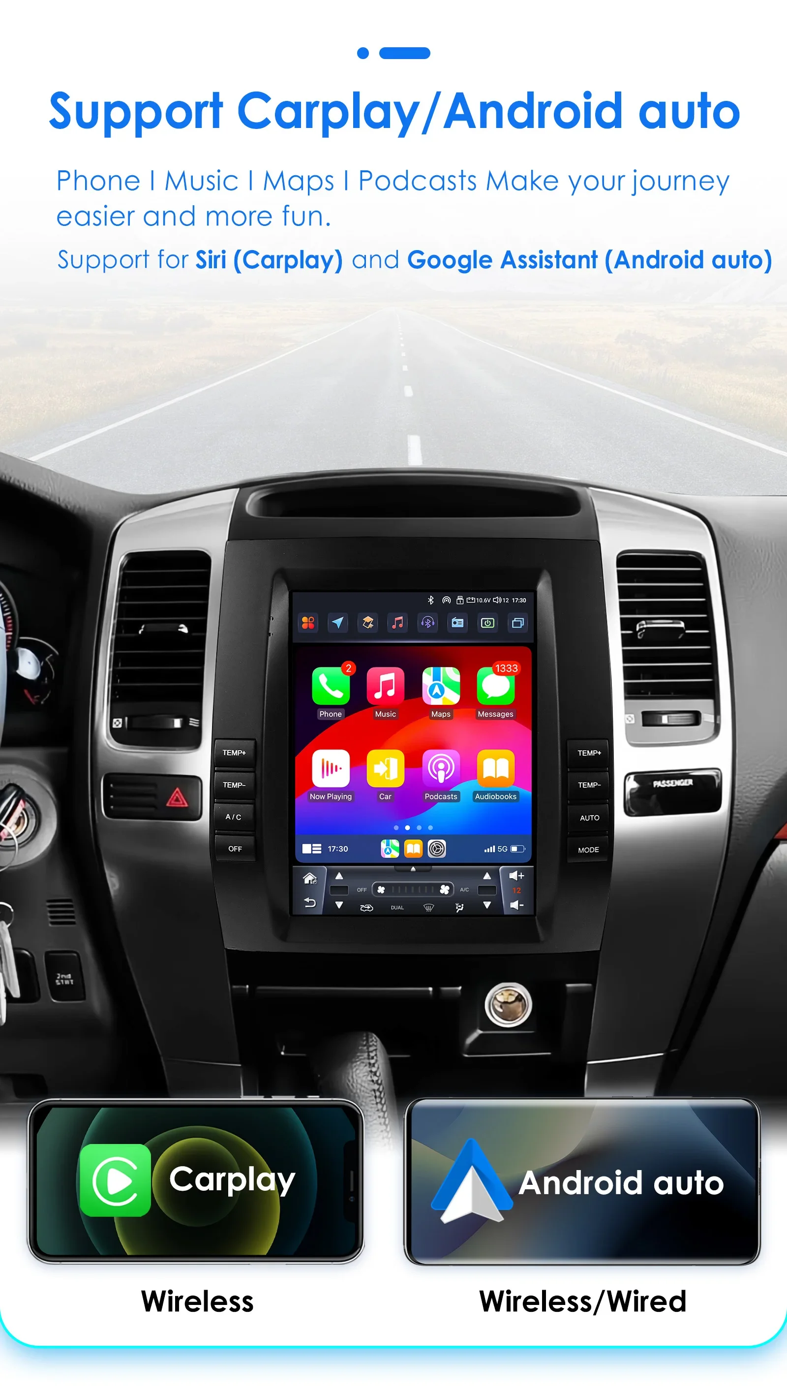 Supporto Carplay/Android auto: telefono/musica/mappe/podcast Rendi il tuo viaggio più facile e divertente.supporta carplay wireless, Android Auto cablato, Android Auto wireless (che deve impostare la banda AP dell’hotspot Wi-Fi del telefono cellulare come banda da 5 Ghz).