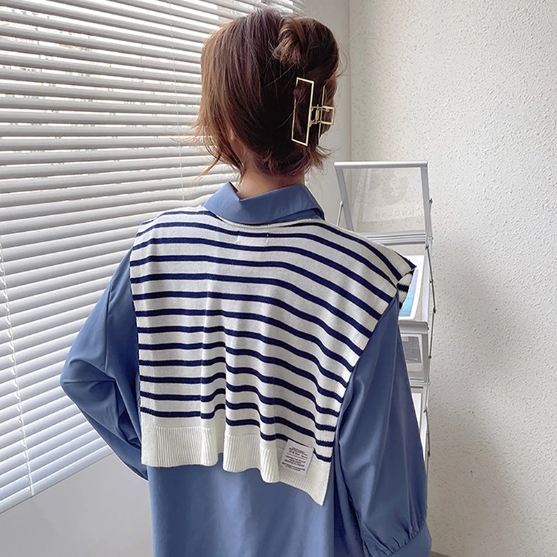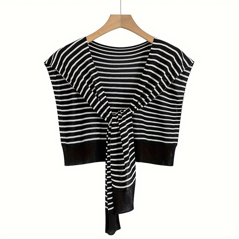 Scialle caldo lavorato a maglia a righe coreane Camicetta invernale femminile Spalle Colletto finto Mantello Sciarpa annodata Capispalla a righe