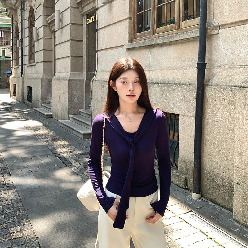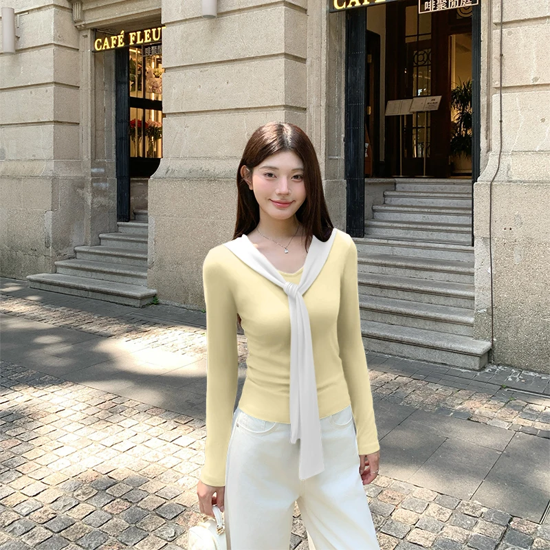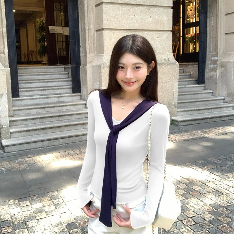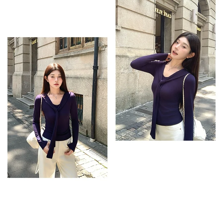 Scialle francese Design Sense Top falso in due pezzi Autunno Inverno Puro desiderio Maglione lavorato a maglia filettato T-shirt a maniche lunghe da donnaPensa ad un Regalo Unico e Utile per le Persone a te Vicine!! Regala un buono a partire da € 10,00 a € 300,00
