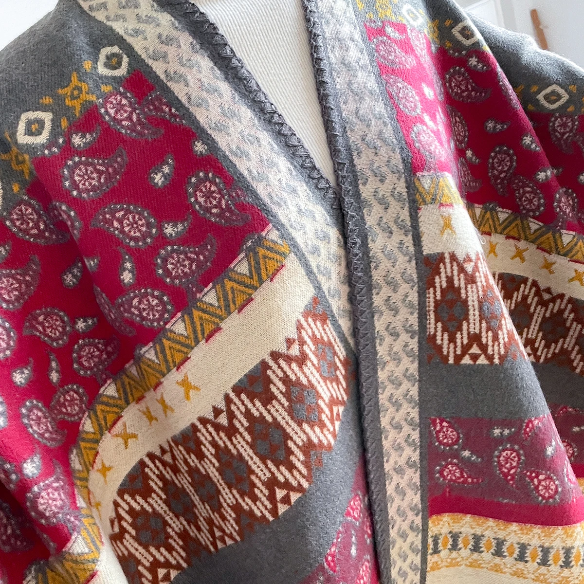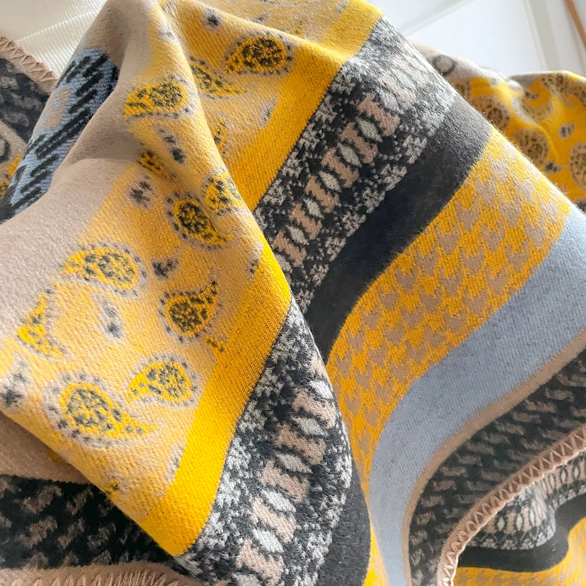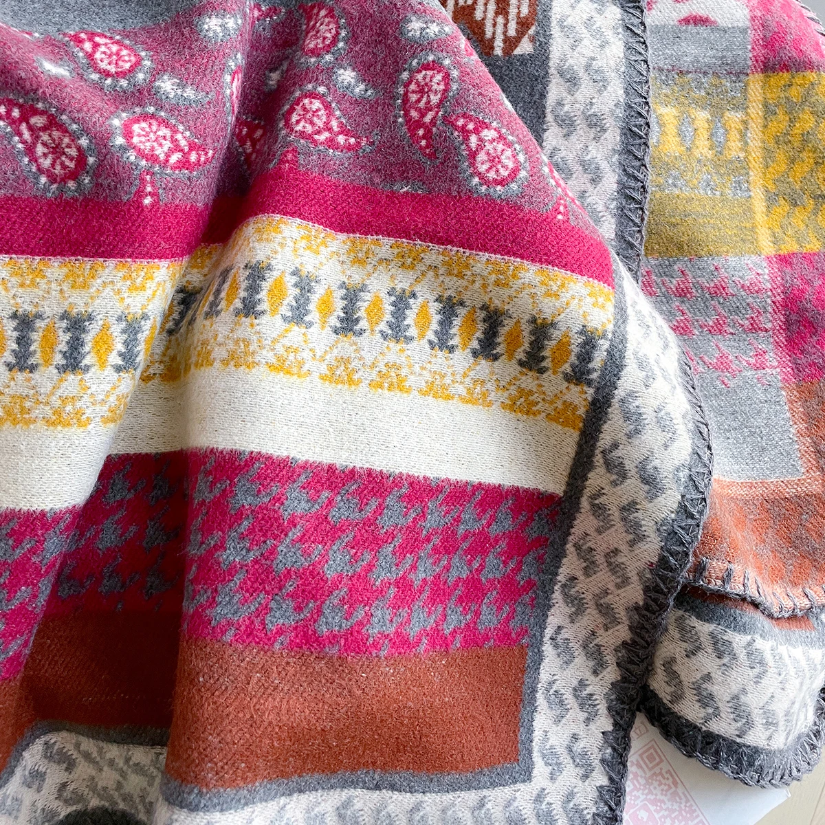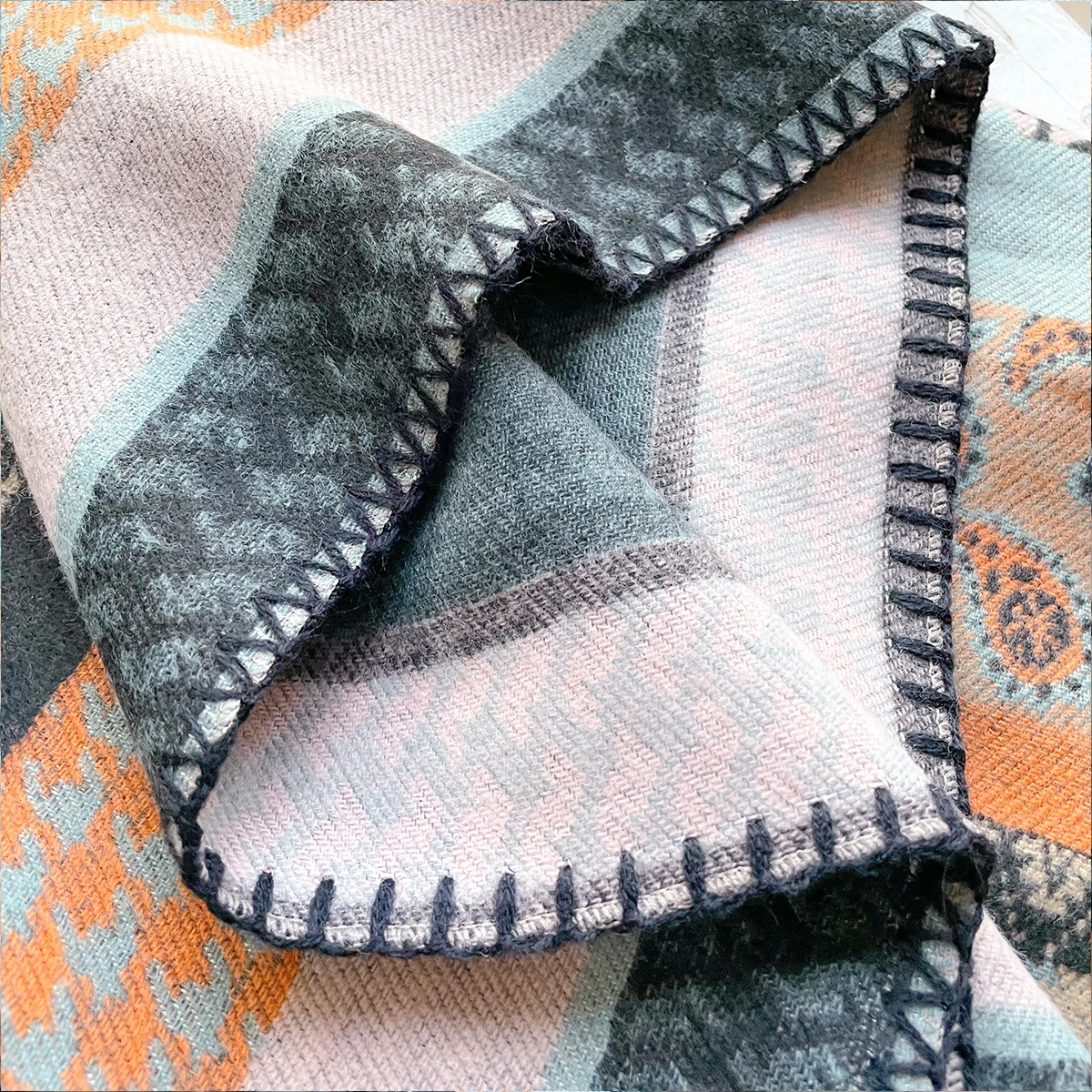 Scialle invernale in cashmere di marca di lusso da donna 2025 – Motivo allover vintage stampato con nappe, involucro di pashmina e bandana