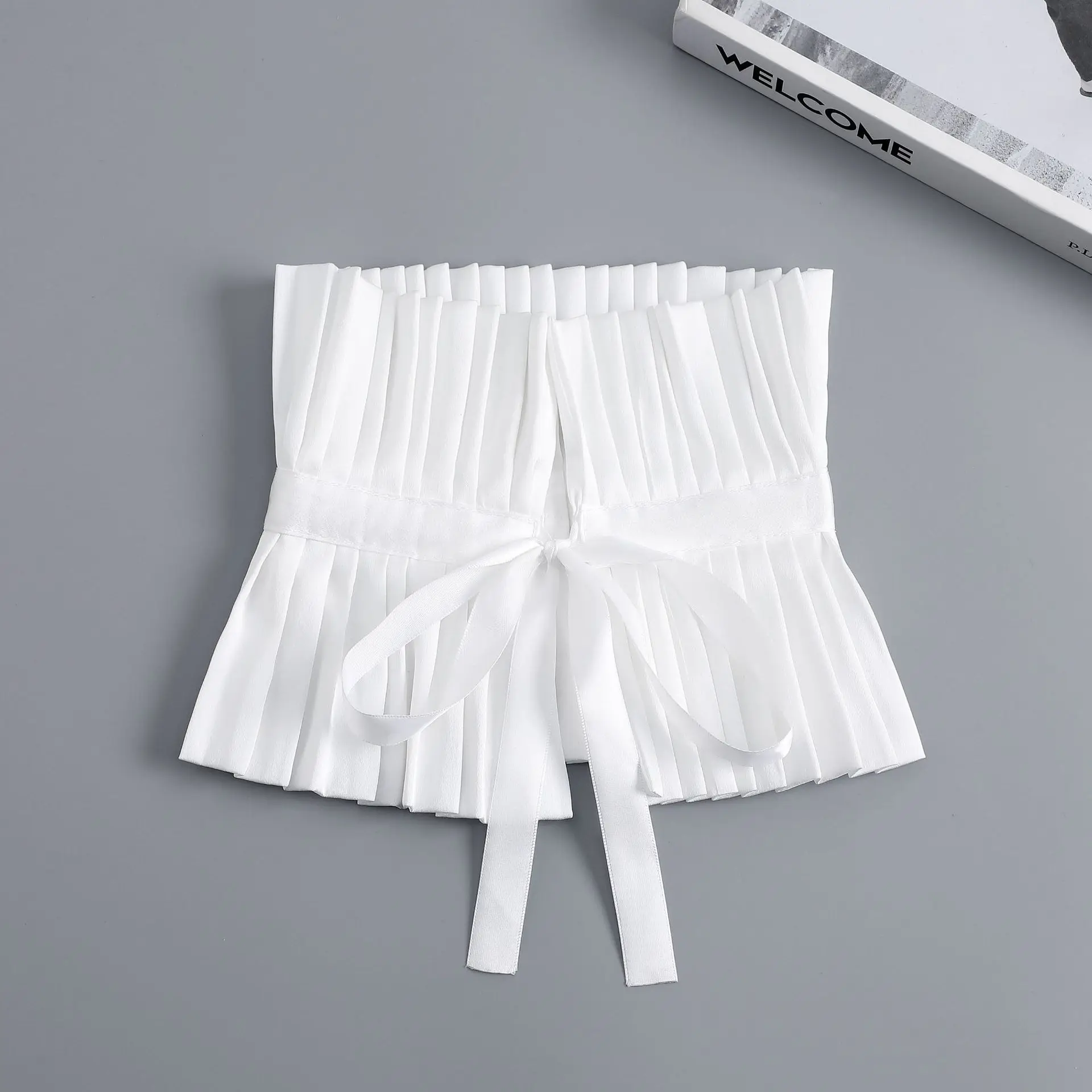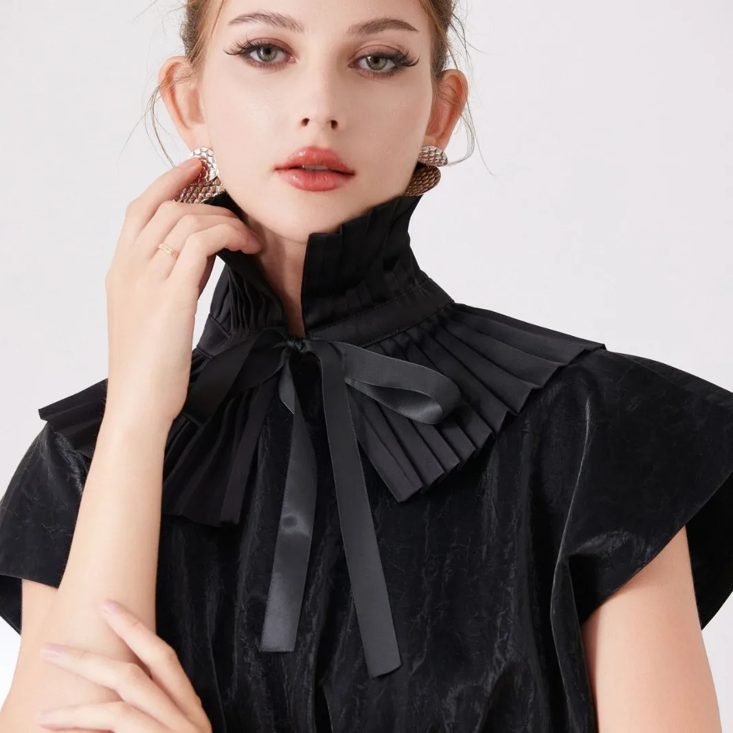 Scialle nero Colletto falso Tinta unita Copri collo con volant Cravatta Polsini con colletto pieghettato Set per accessori per costumi da festa 1Scialle nero Colletto falso Tinta unita Copri collo con volant Cravatta Polsini con colletto pieghettato Set per accessori per costumi da festa