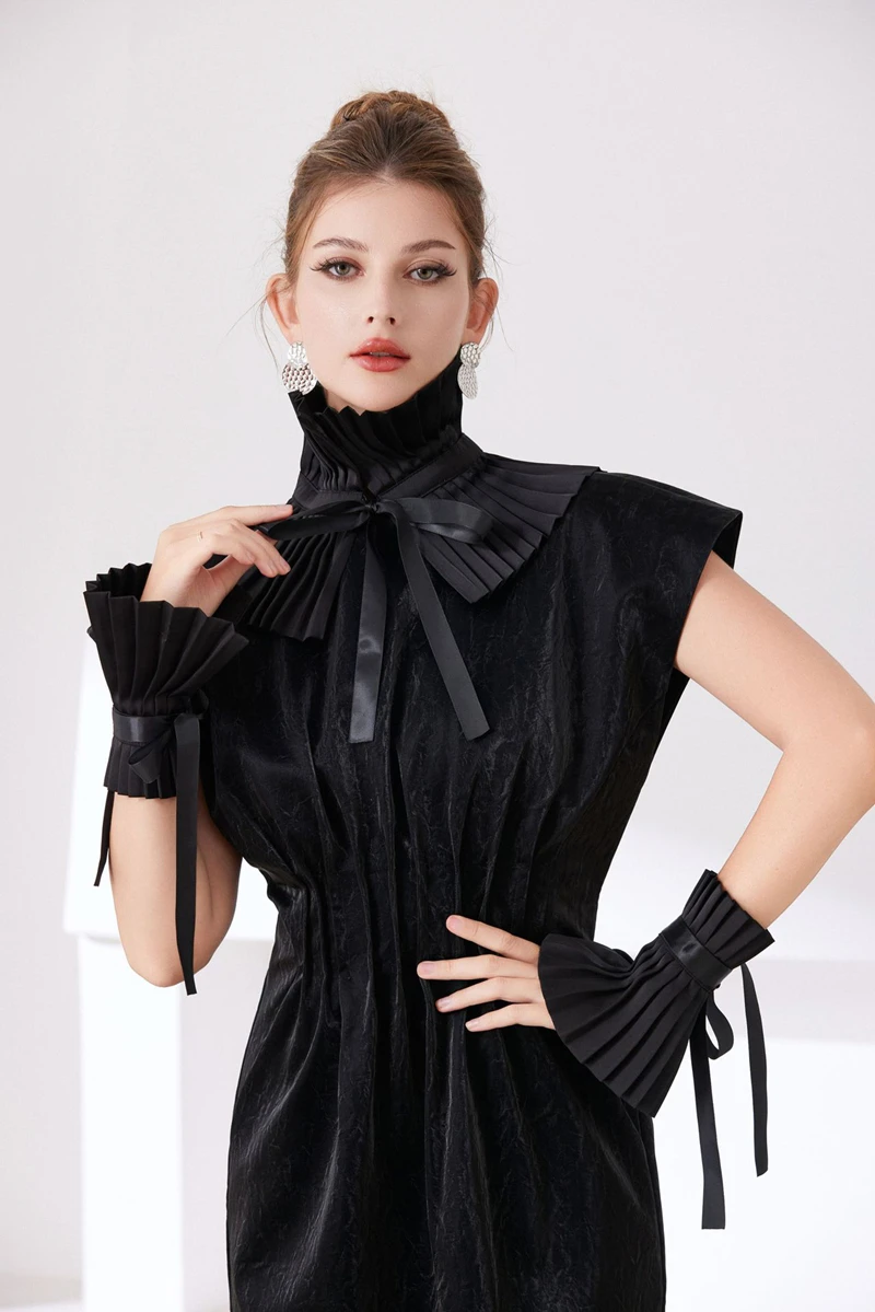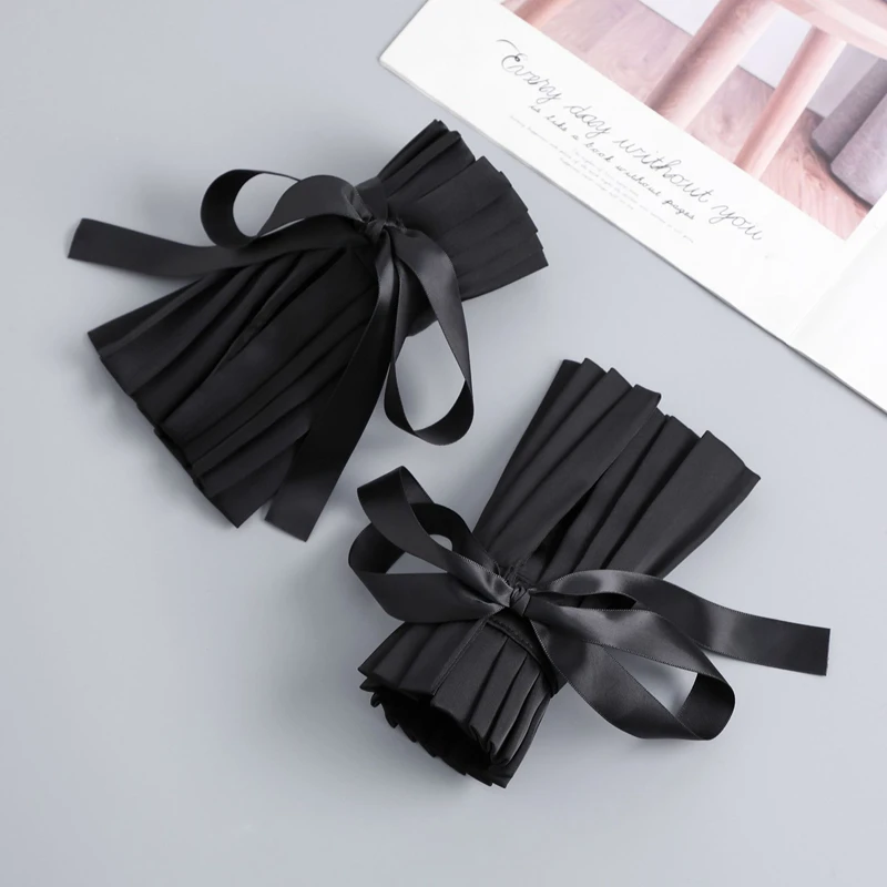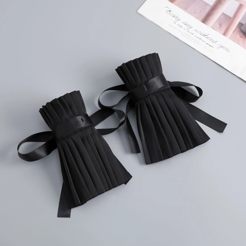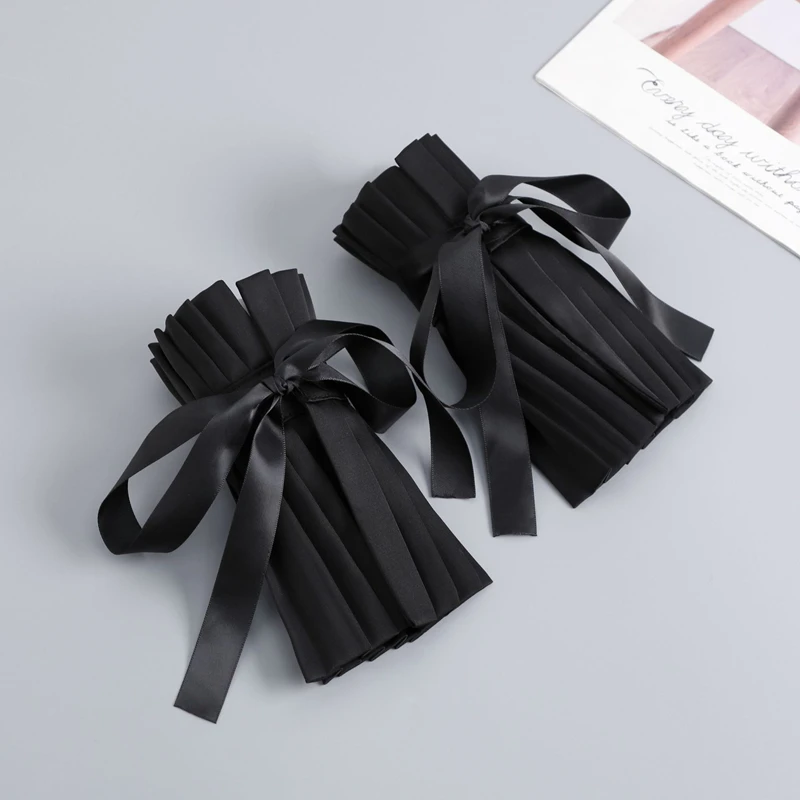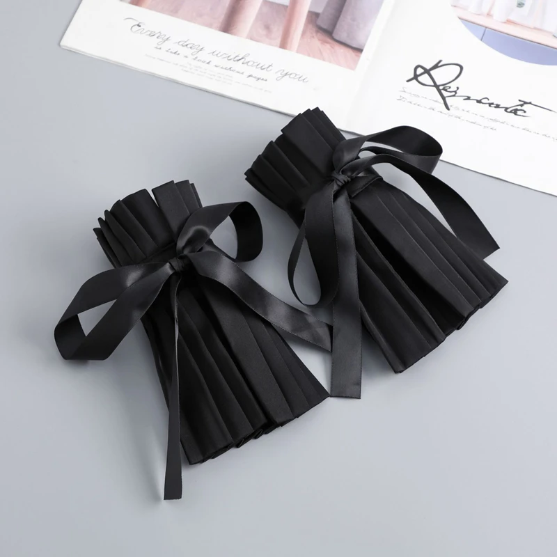 Scialle nero Colletto falso Tinta unita Ruffle Collo Copri cravatta Colletto pieghettato Polsini Set per feste Accessorio per costume