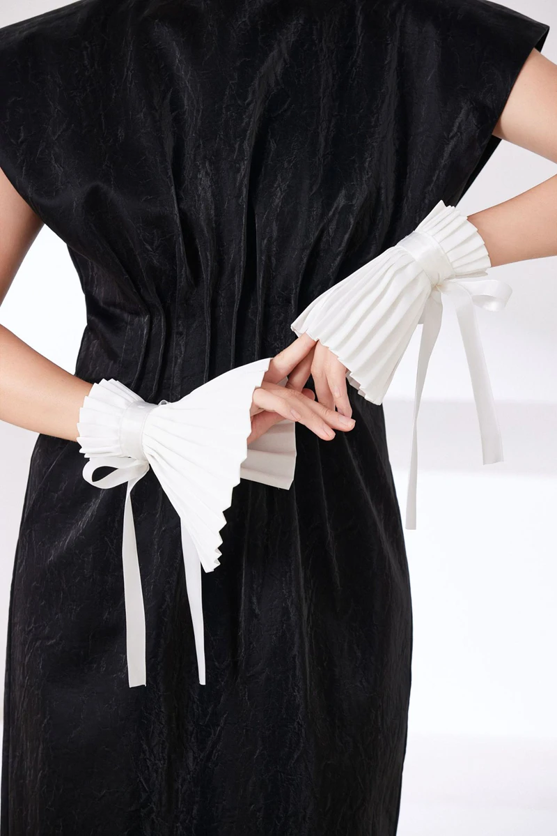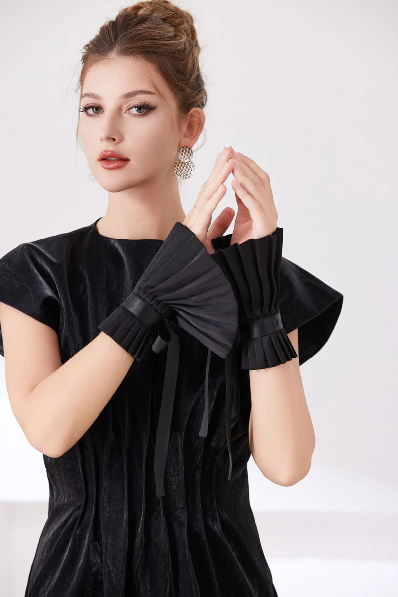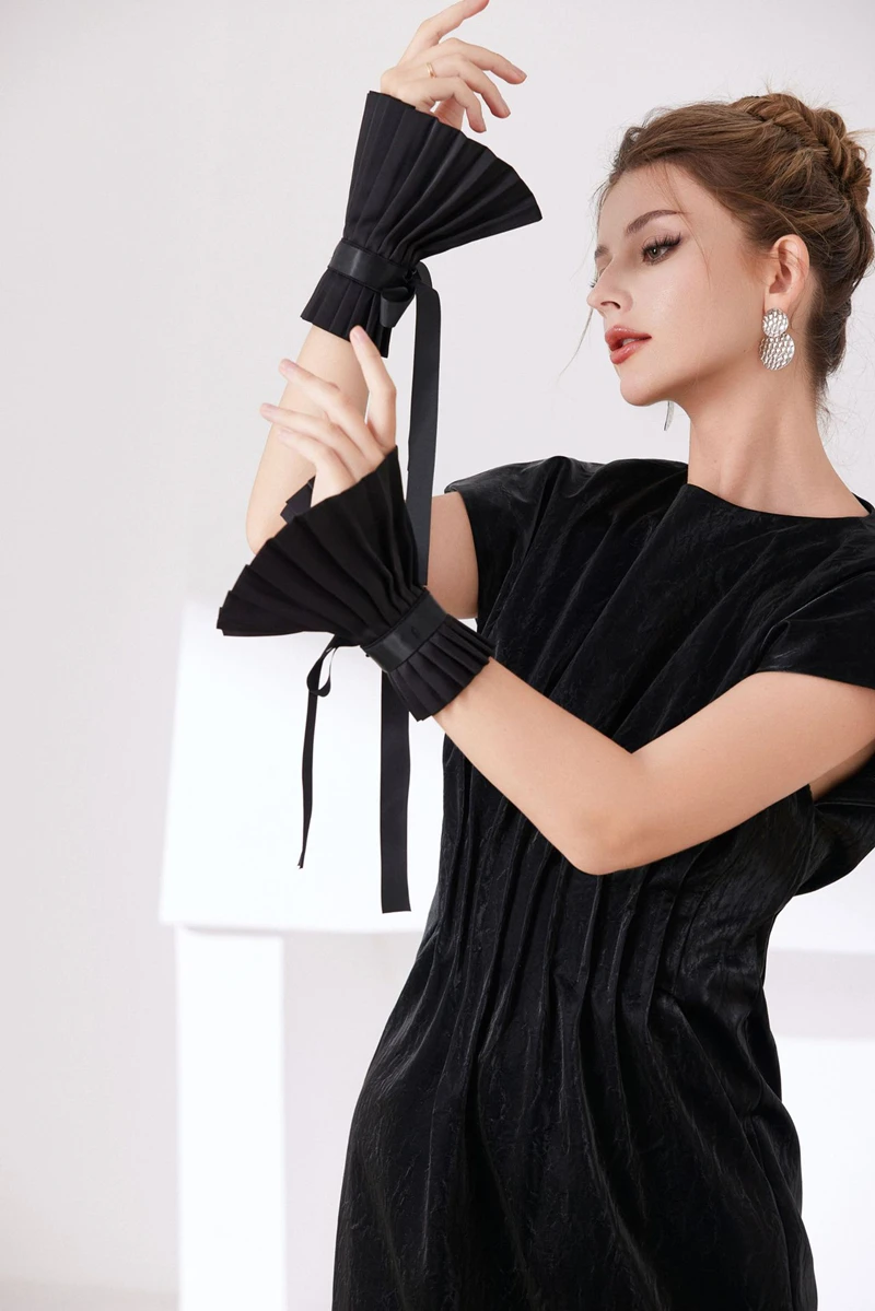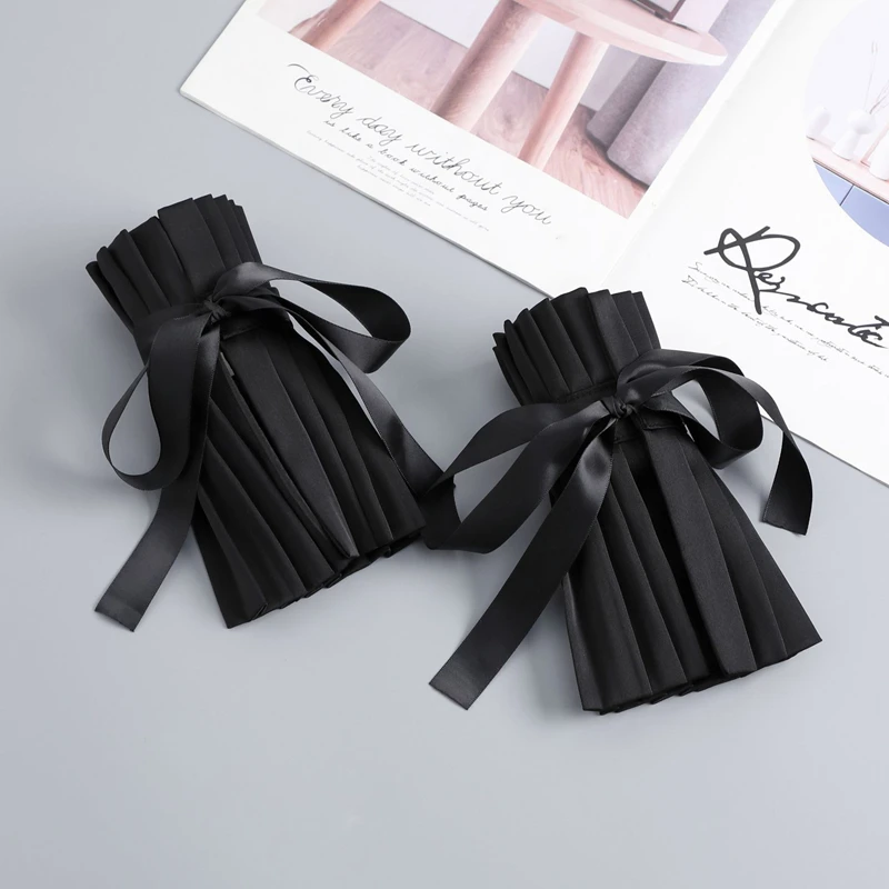 Scialle nero Colletto falso Tinta unita Ruffle Collo Copri cravatta Colletto pieghettato Polsini Set per feste Accessorio per costume