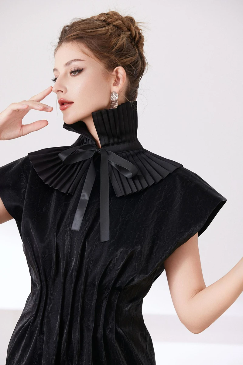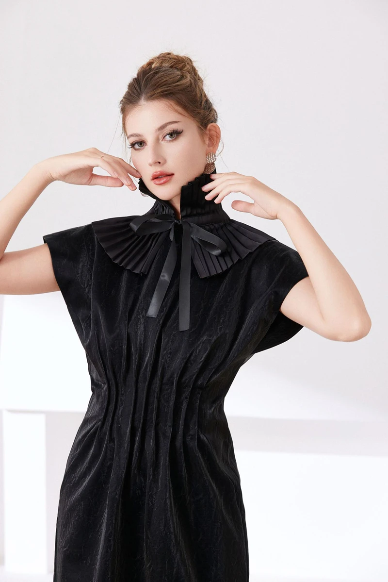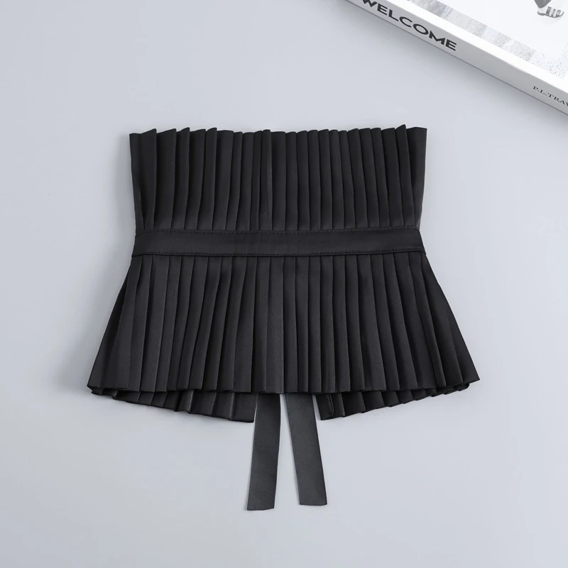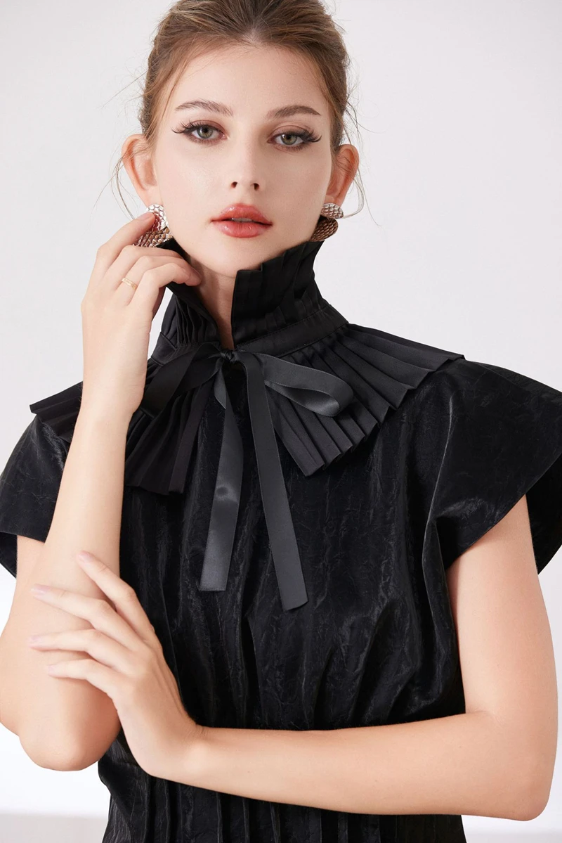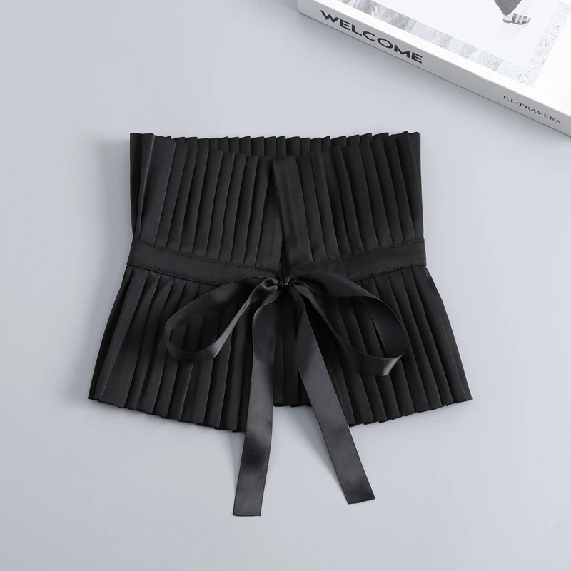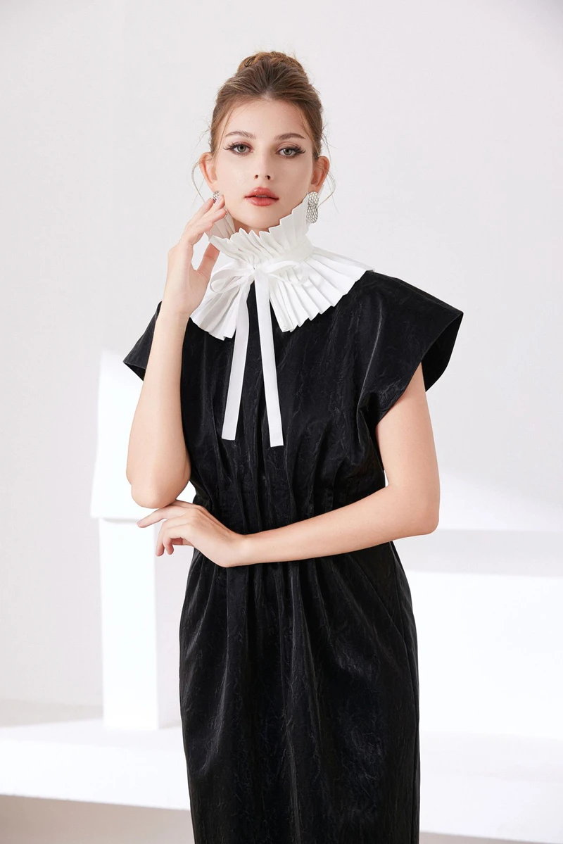 Scialle nero Colletto falso Tinta unita Copri collo con volant Cravatta Polsini con colletto pieghettato Set per accessori per costumi da festa 1Scialle nero Colletto falso Tinta unita Copri collo con volant Cravatta Polsini con colletto pieghettato Set per accessori per costumi da festa