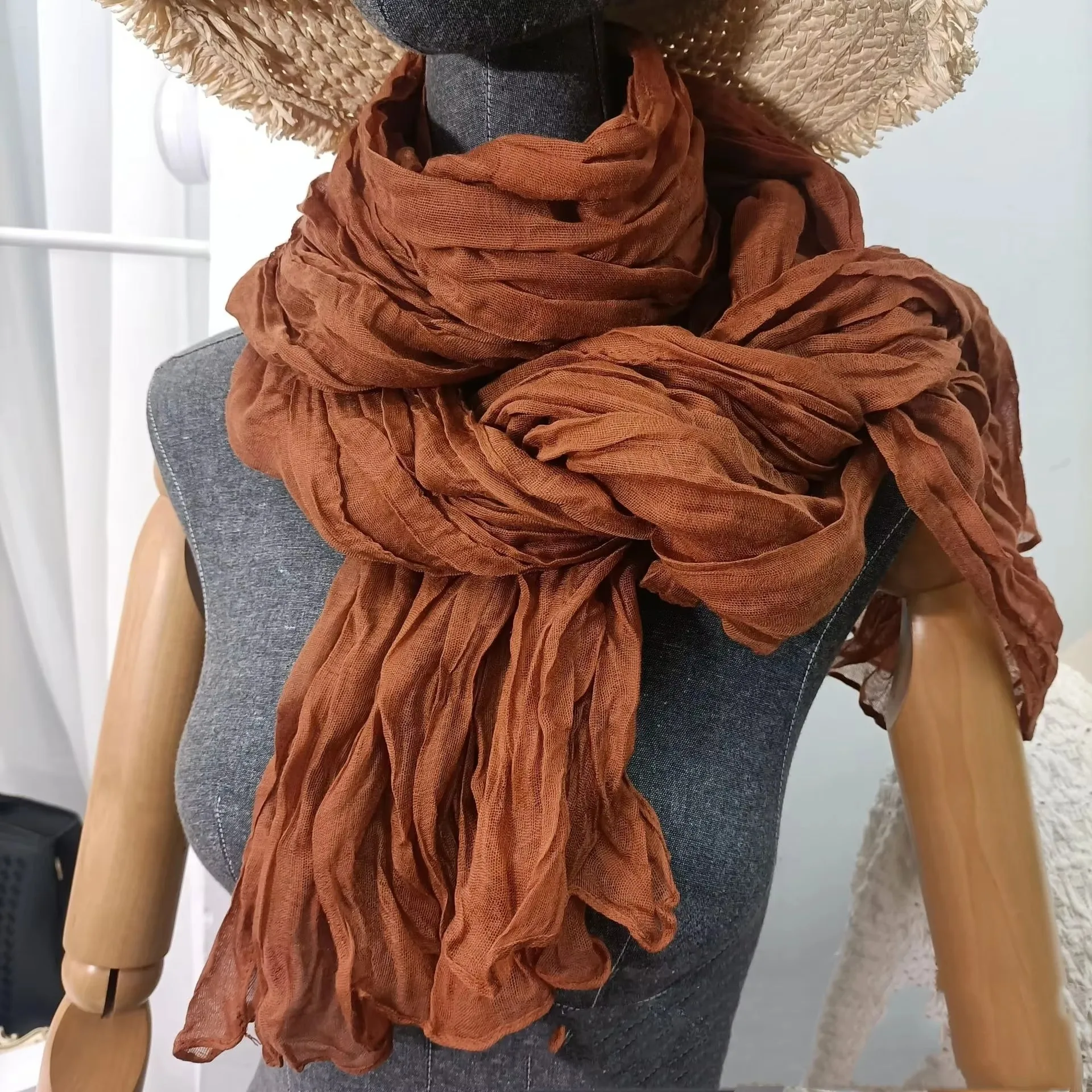 Sciarpa al tatto in cotone e lino tinta unita Retro Autunno Inverno Nuovo scialle a strisce sottili verdi pieghettate in seta termica da donna da uomoPensa ad un Regalo Unico e Utile per le Persone a te Vicine!! Regala un buono a partire da € 10,00 a € 300,00