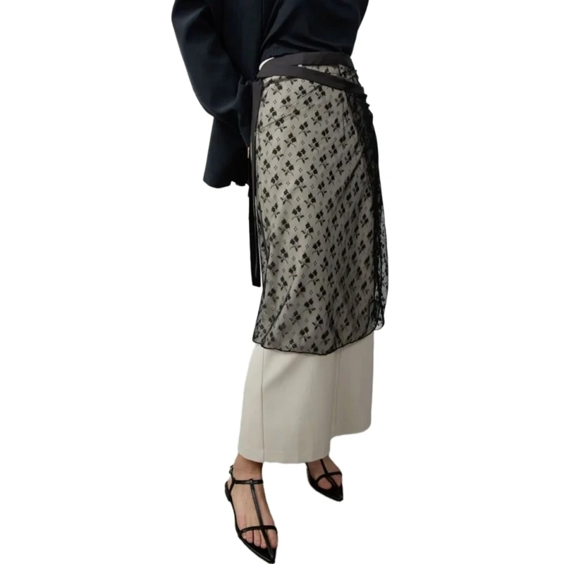 Aggiungi il tocco di sofisticazione al tuo look con questa gonna in pizzo floreale con paillettes. Il tessuto delicato e morbido garantisce comodità.