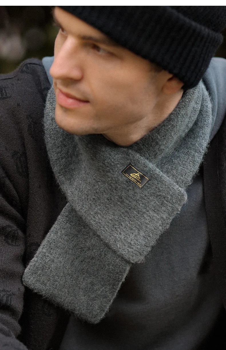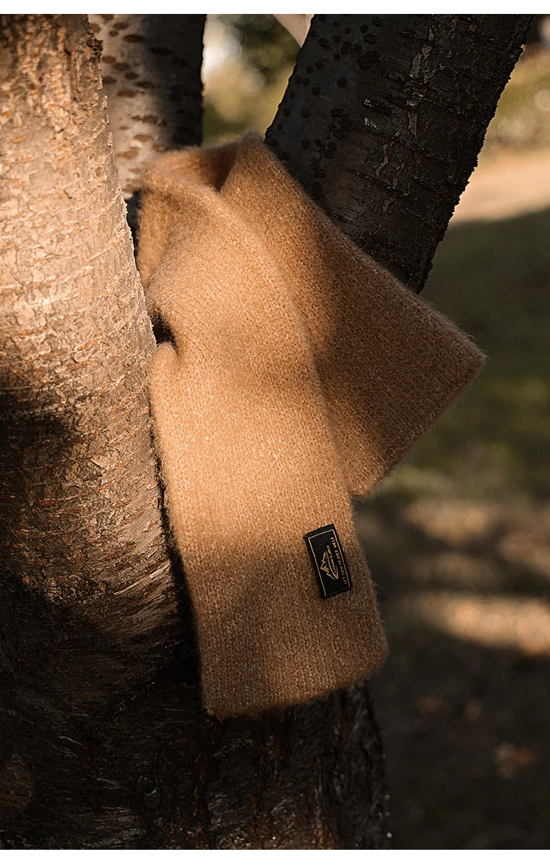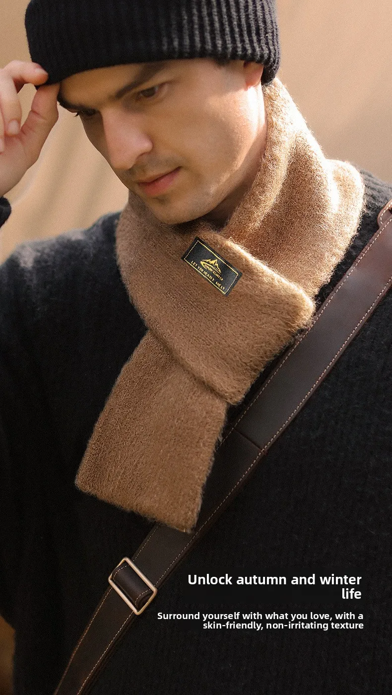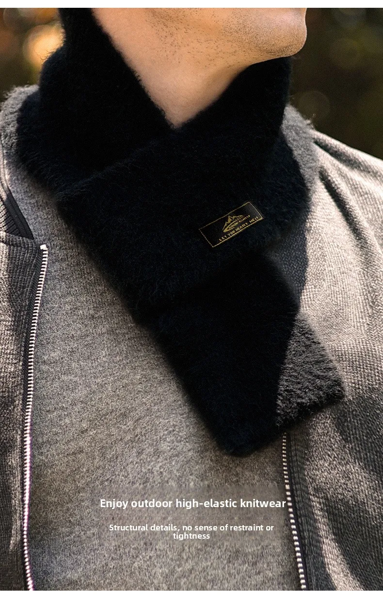 Sciarpa corta lavorata a maglia squisita in mohair imitazione retrò giapponese Sciarpa calda in peluche invernale a prova di freddo da uomo in tinta unita