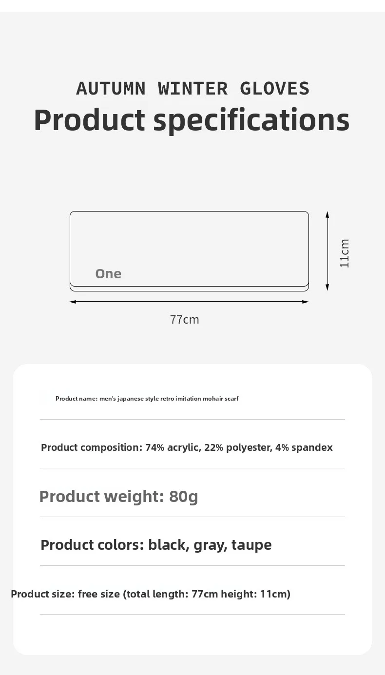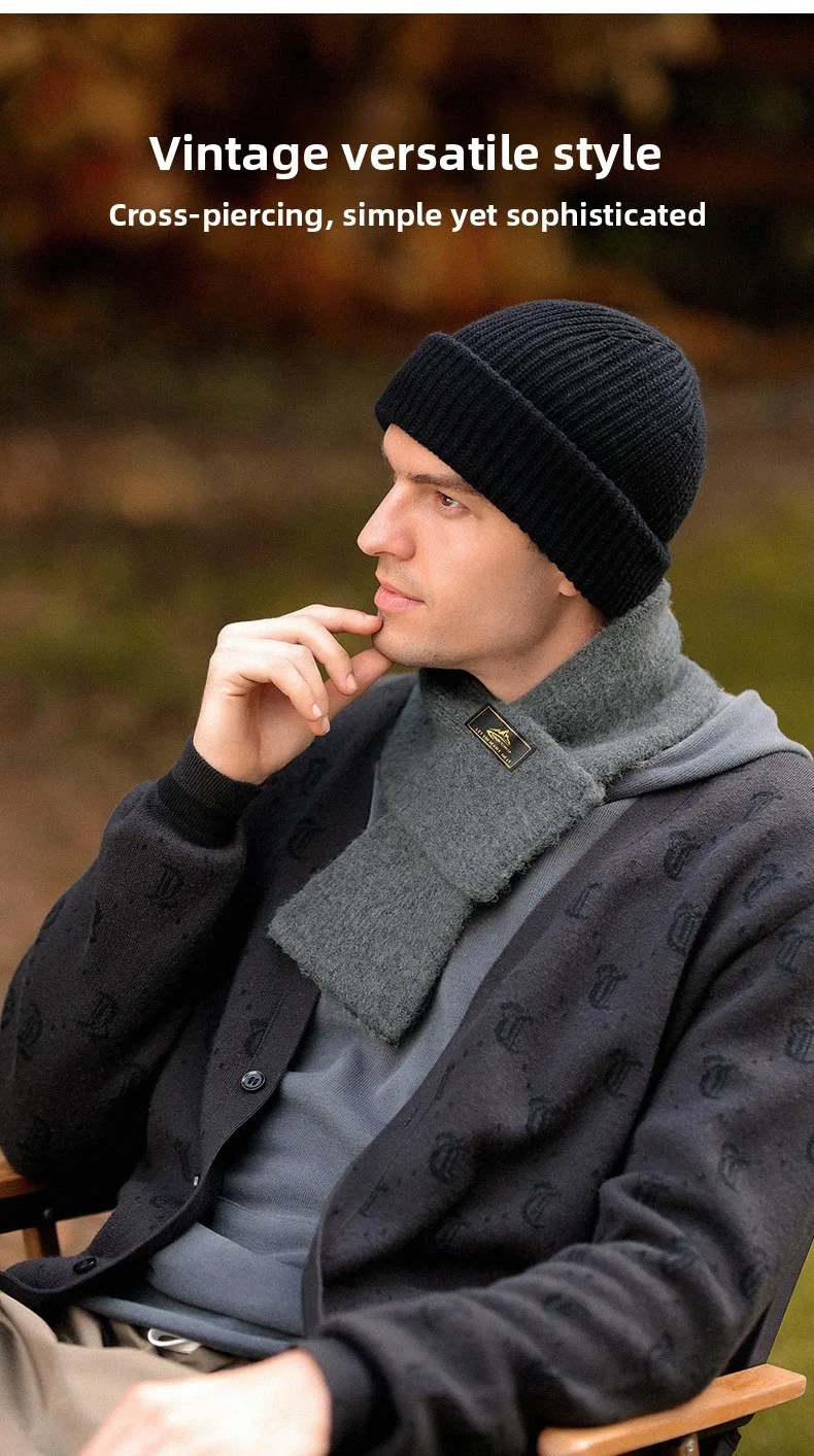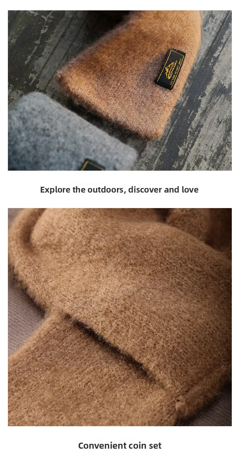 Sciarpa corta lavorata a maglia squisita in mohair imitazione retrò giapponese Sciarpa calda in peluche invernale a prova di freddo da uomo in tinta unita