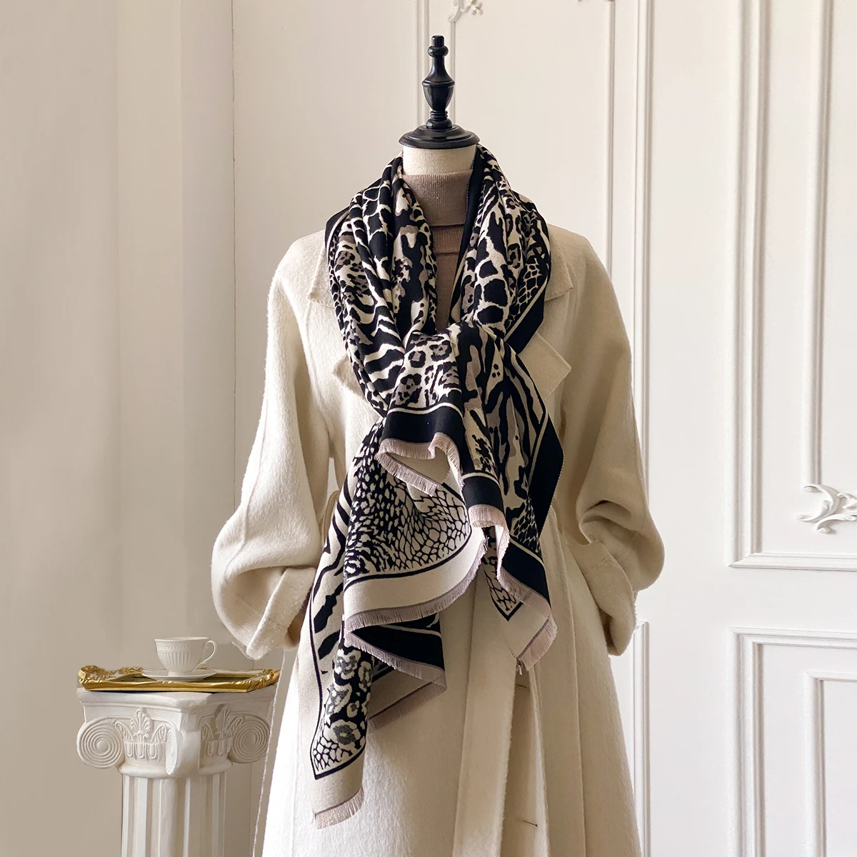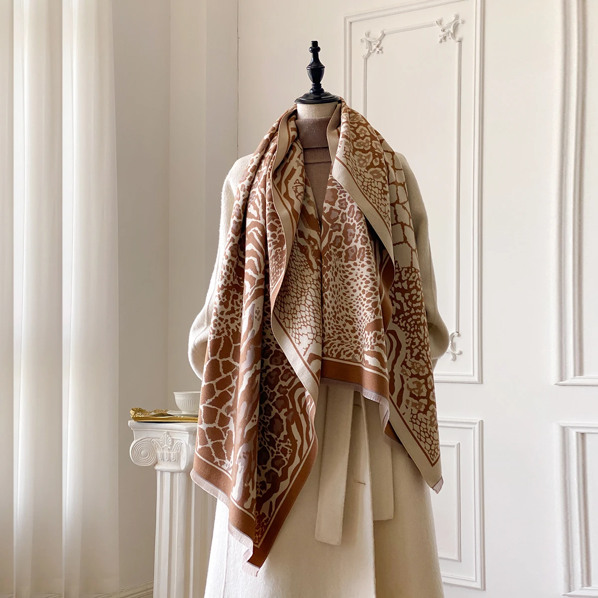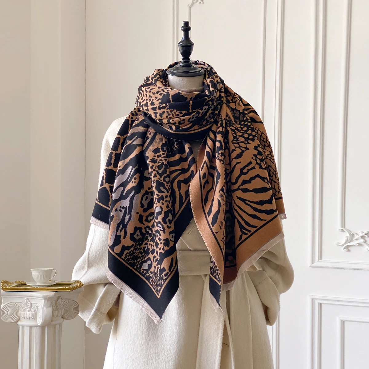 Sciarpa da donna con stampa leopardata Sciarpa calda Scialle Semplice imitazione Sciarpa di cashmere Scialle spesso Jacquard Moda Autunno e inverno