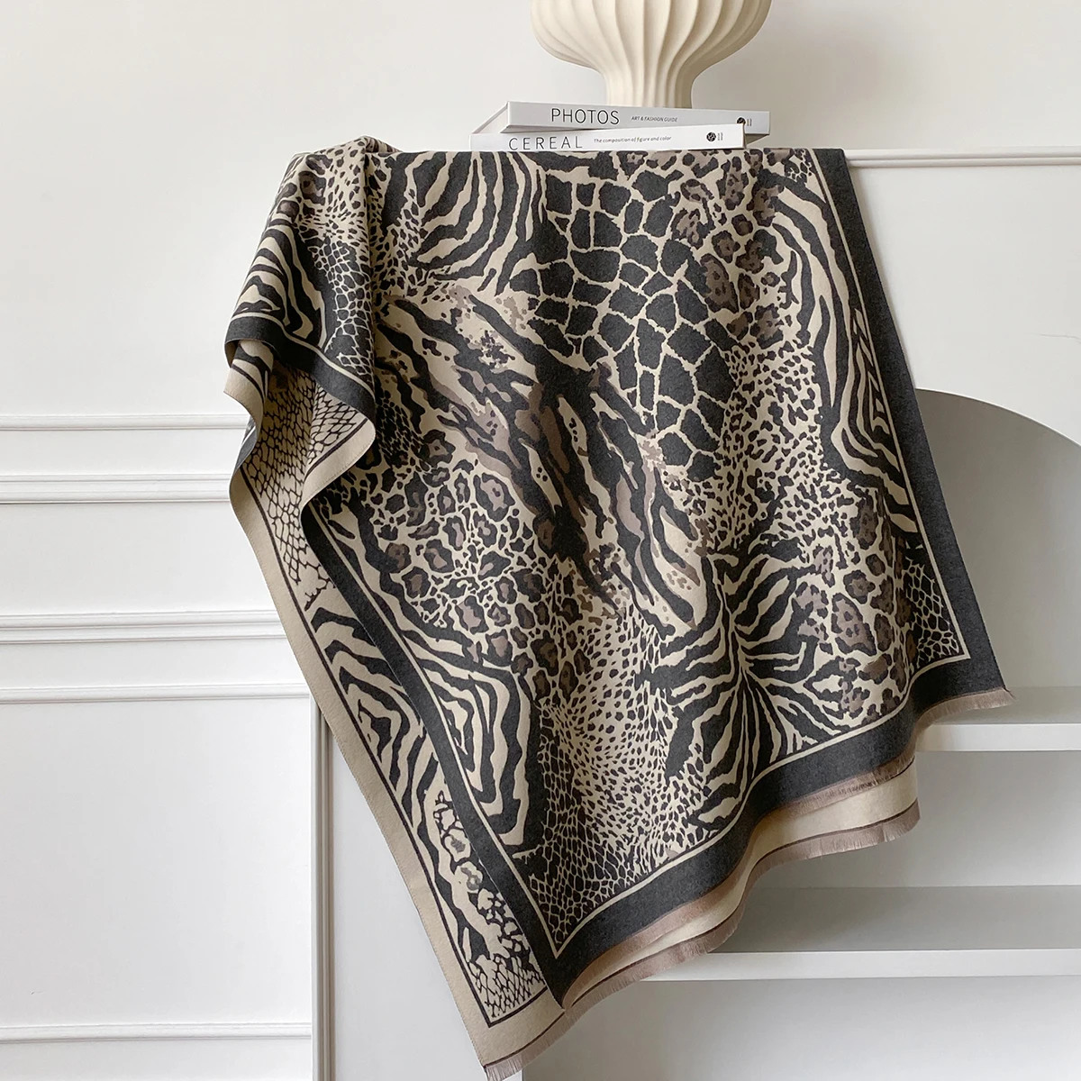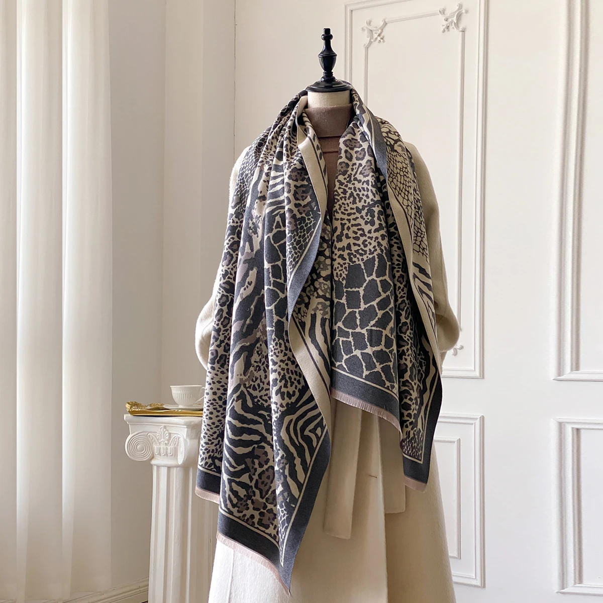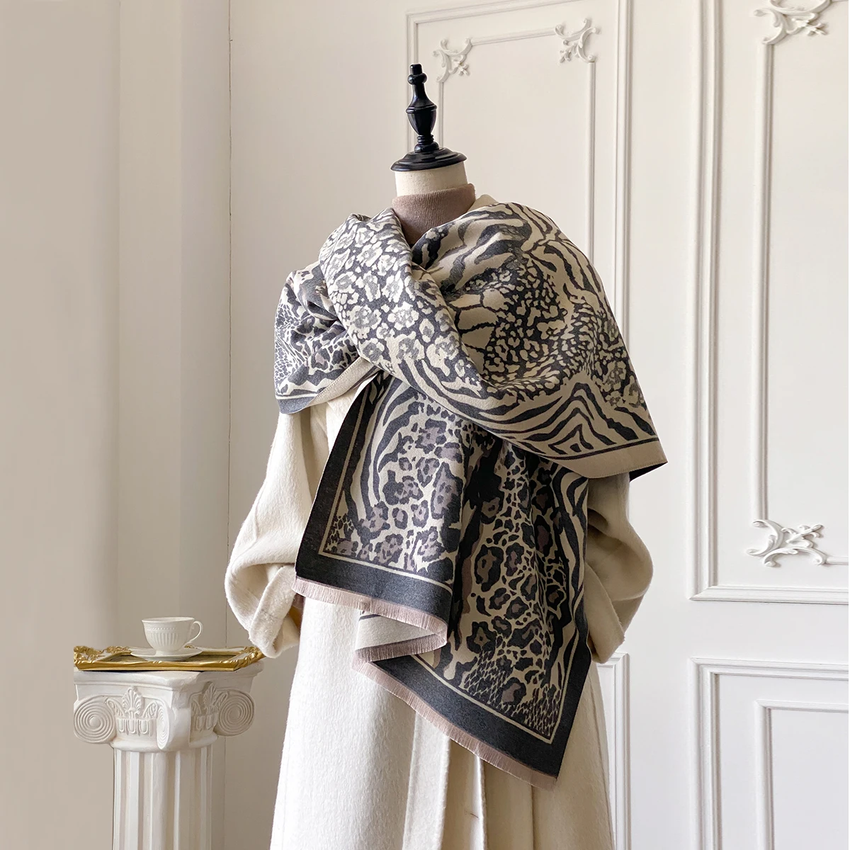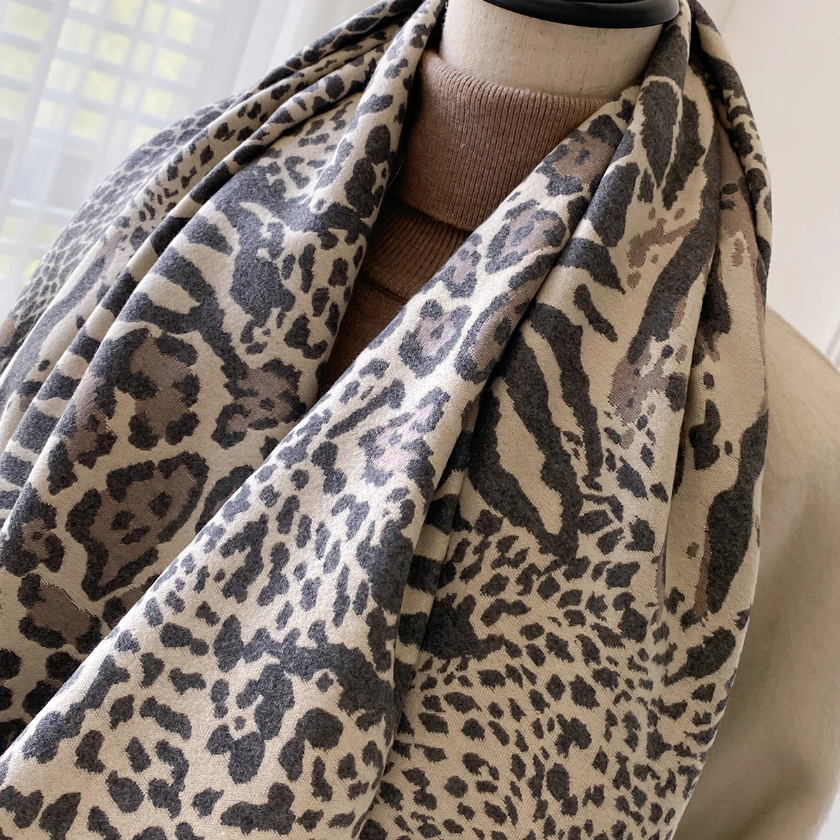 Sciarpa da donna con stampa leopardata Sciarpa calda Scialle Semplice imitazione Sciarpa di cashmere Scialle spesso Jacquard Moda Autunno e inverno