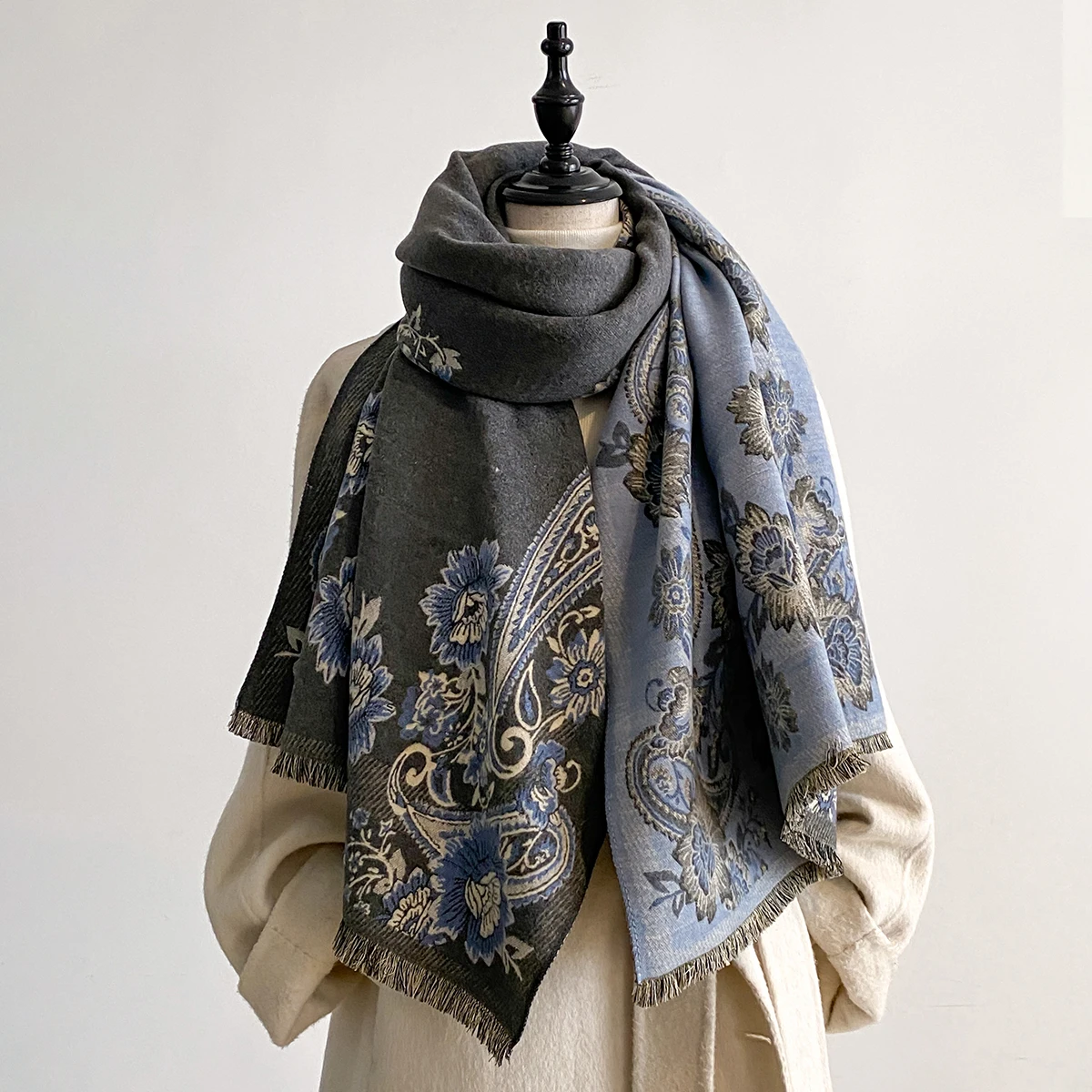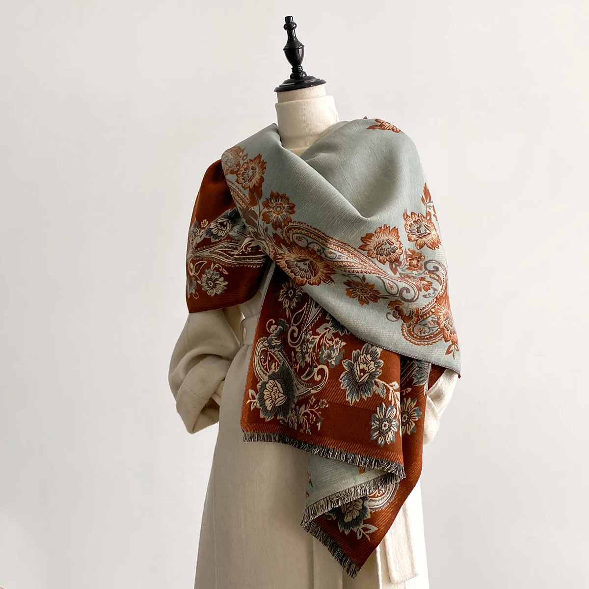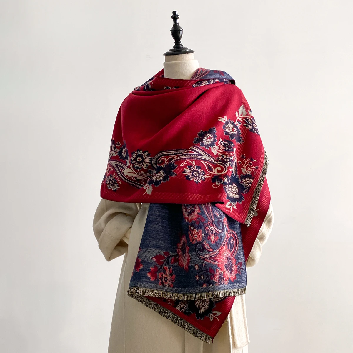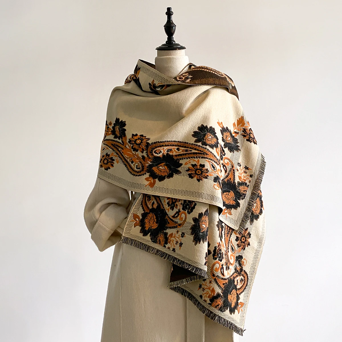 Sciarpa da donna in finto cashmere di lusso ispessito – Scialle avvolgente in jacquard invernale ultra morbido con eleganti motivi floreali