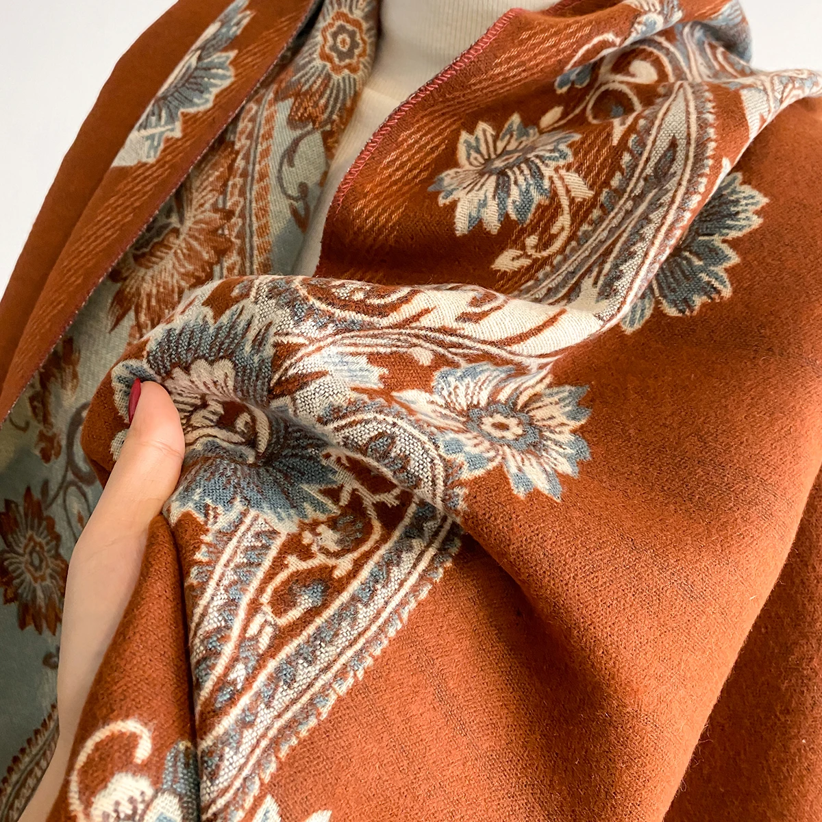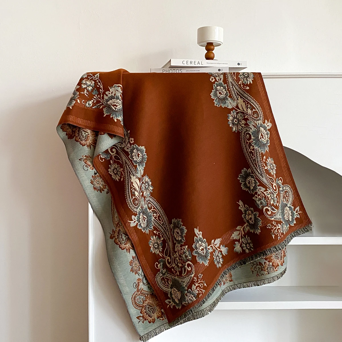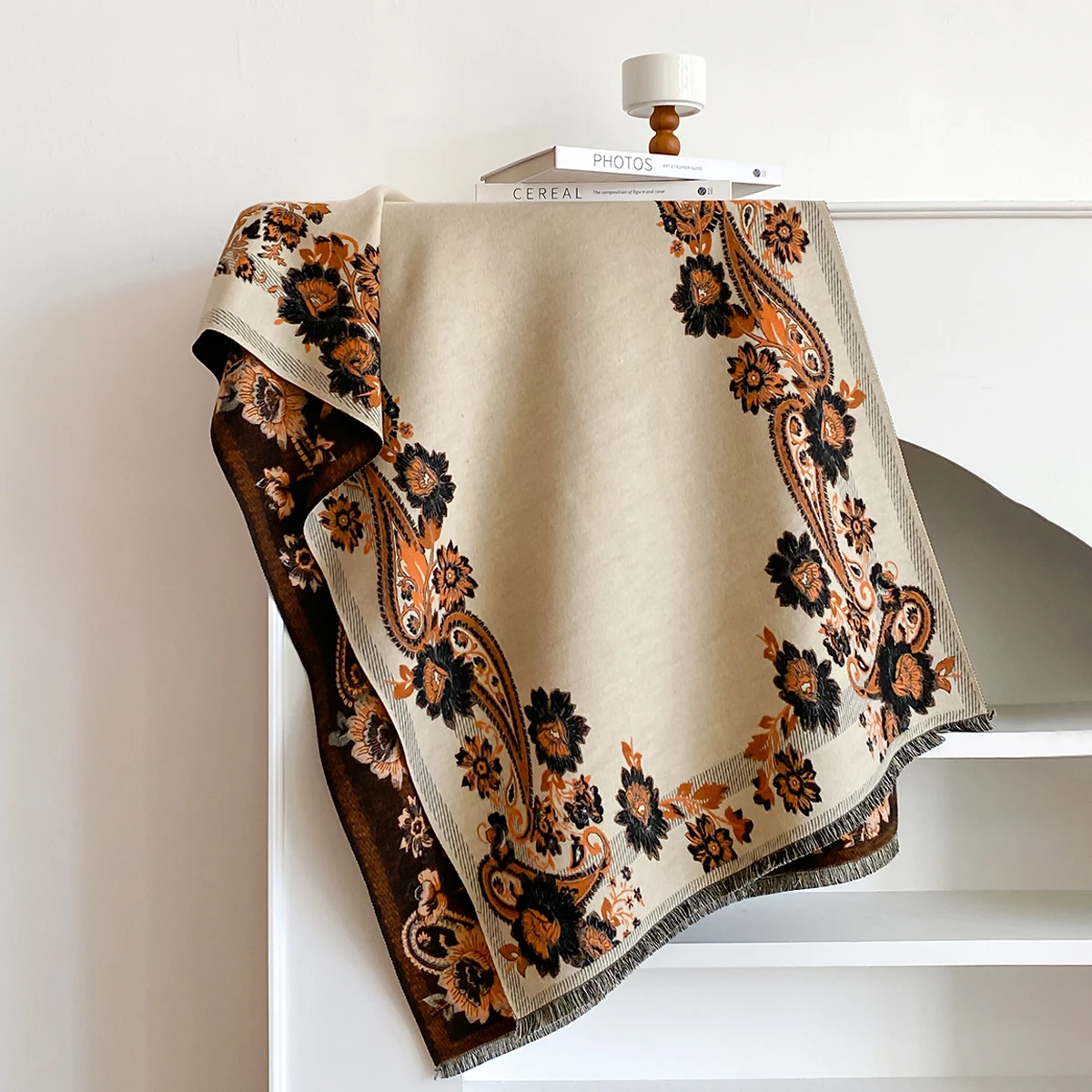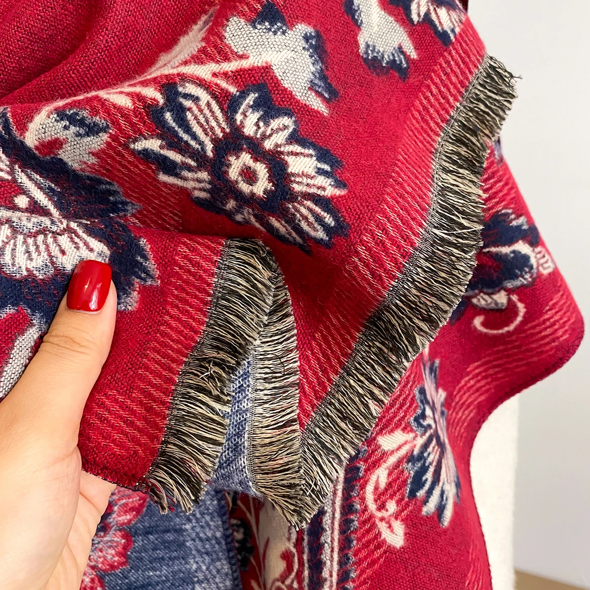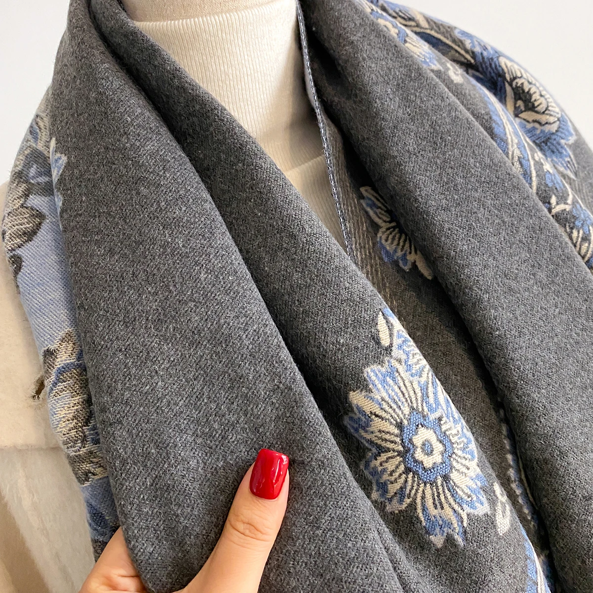 Sciarpa da donna in finto cashmere di lusso ispessito – Scialle avvolgente in jacquard invernale ultra morbido con eleganti motivi floreali