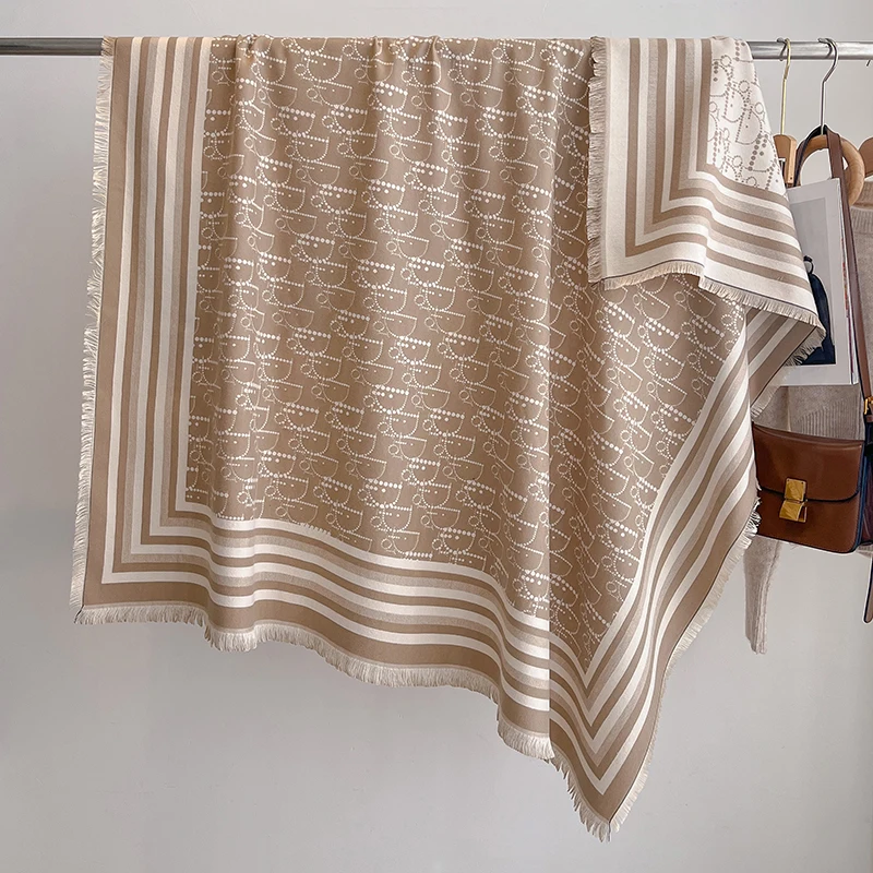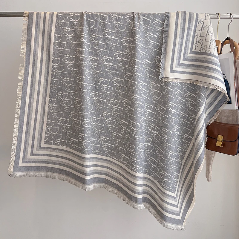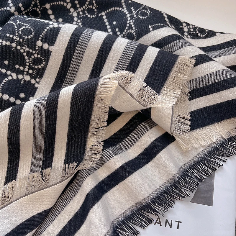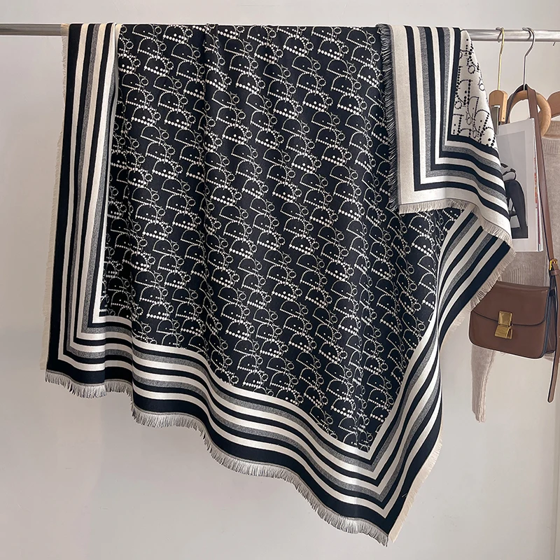 Sciarpa di cashmere da donna invernale di marca di lusso 2025 – Scialle con nappe stampato astratto, bandana di pashmina e poncho elegante
