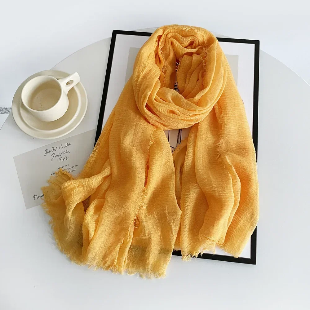 Sciarpa di lino in cotone da donna Scialle Hijab Foulard lungo musulmano Sciarpe Avvolge la testa Sciarpe solide Sciarpa per la testa semplice femminile