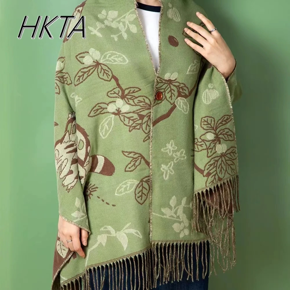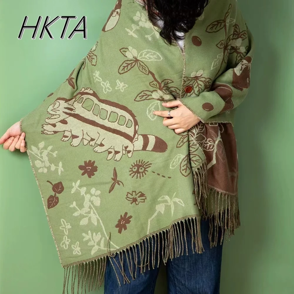 Sciarpa di nicchia Design Sciarpa di cartone animato carino Scialle da donna Versatile addensato caldo Sciarpe con bottoni invernali a doppia faccia Ragazza a doppio scopo