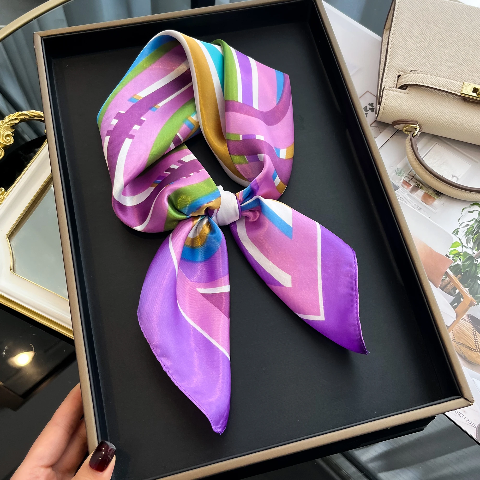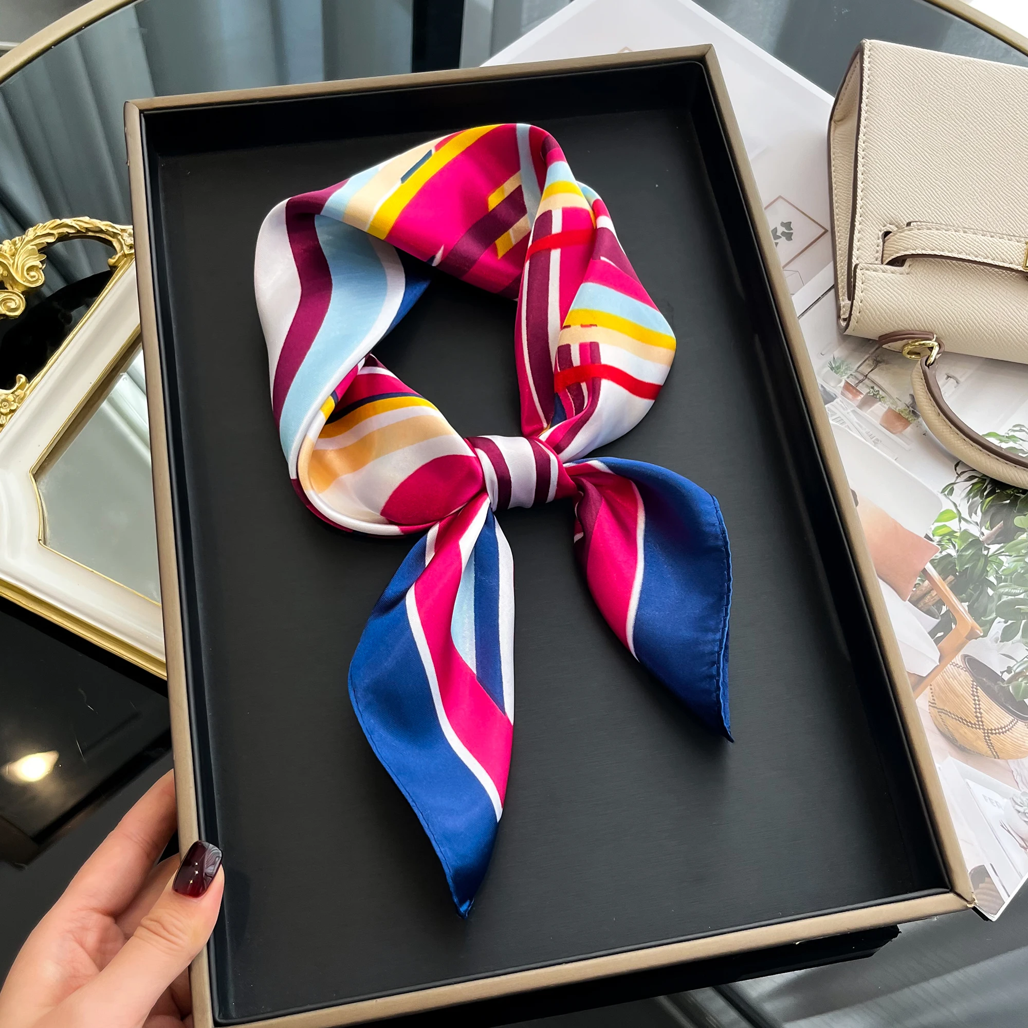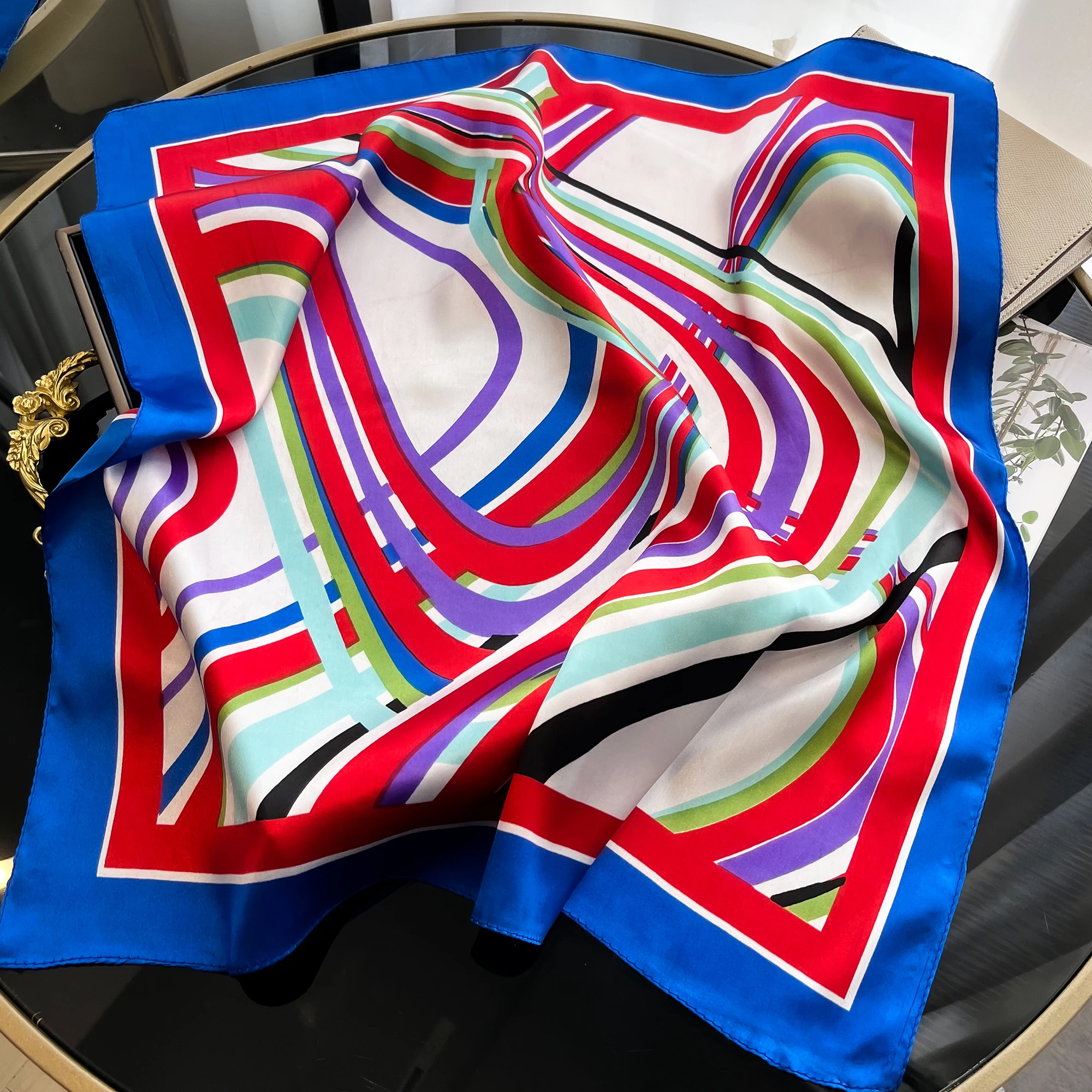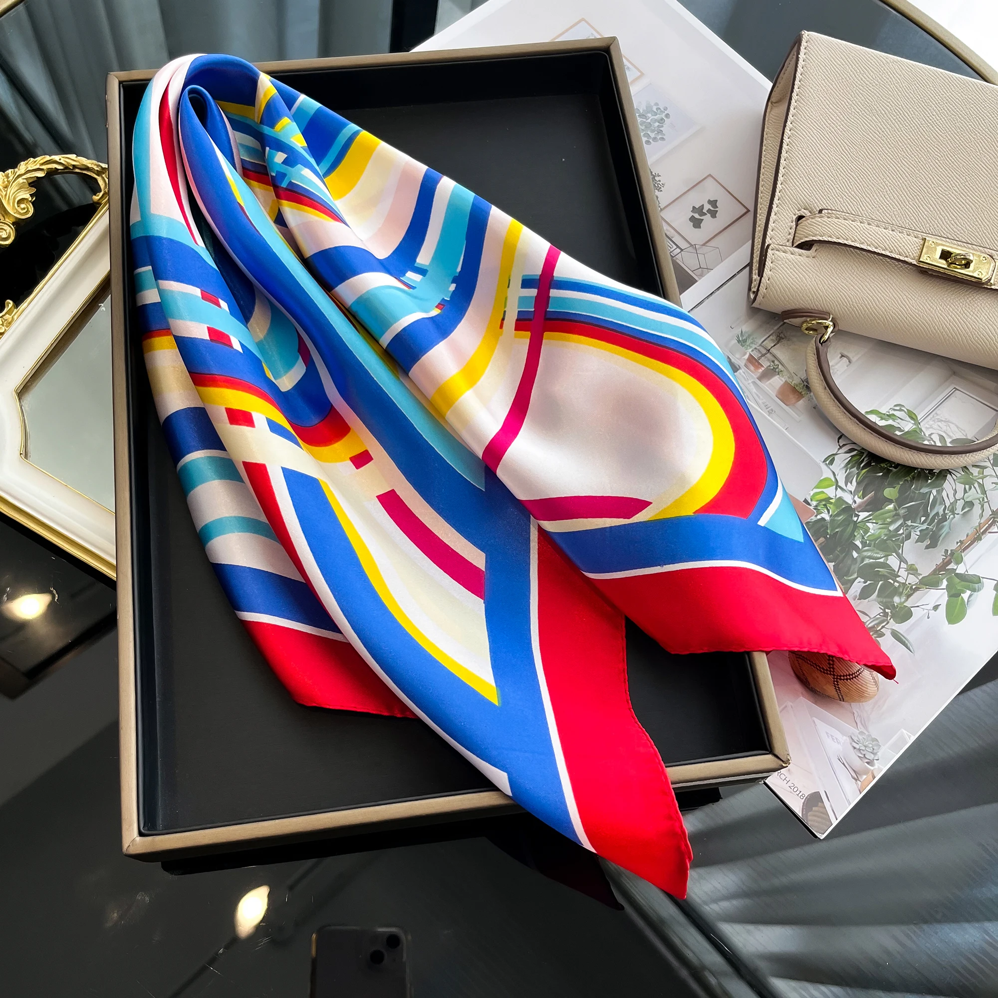 Sciarpa di seta quadrata di lusso per le donne Fasce per capelli Hijab Fazzoletto da collo Scialle di raso femminile Nastro Fascia Moda Avvolge Bandana 2024