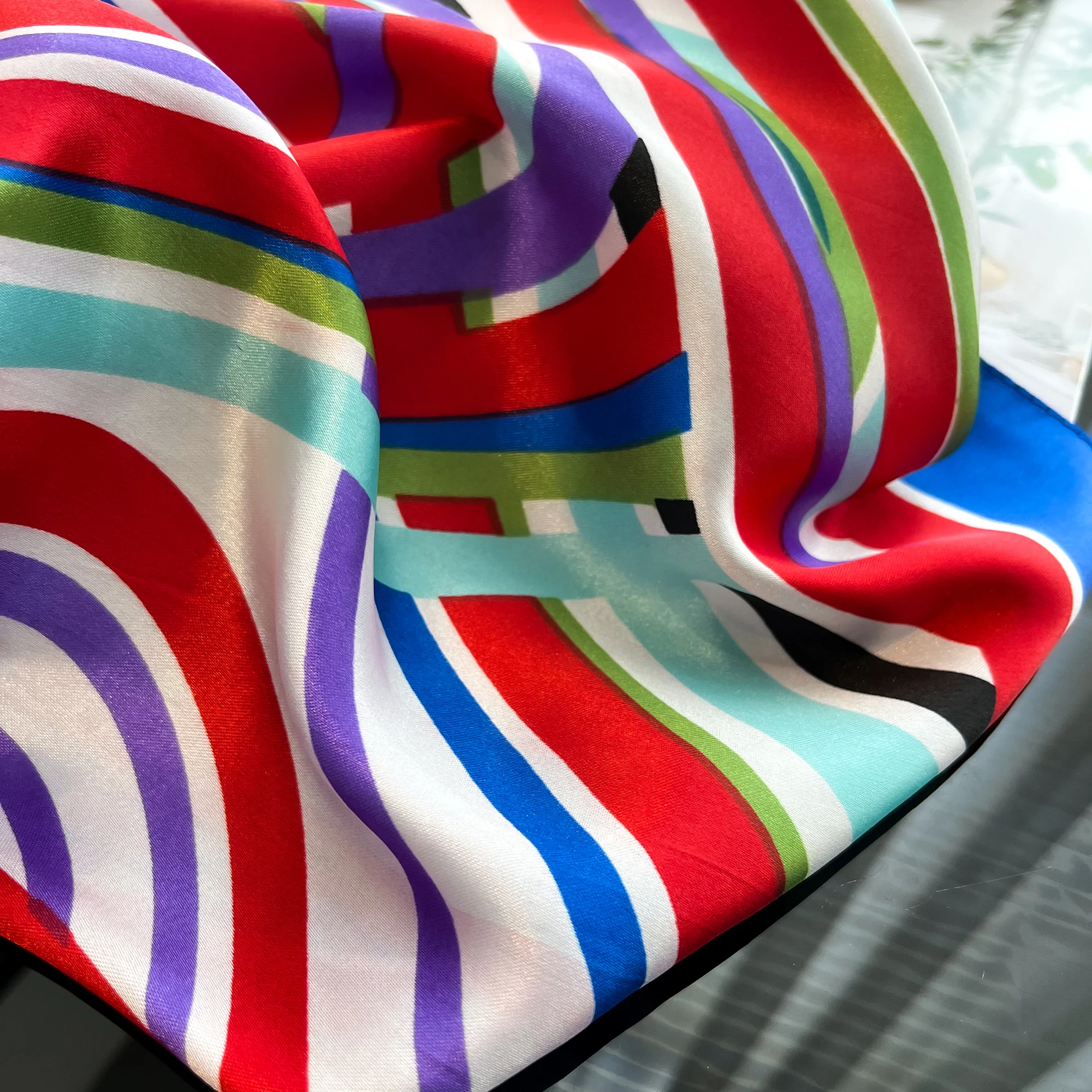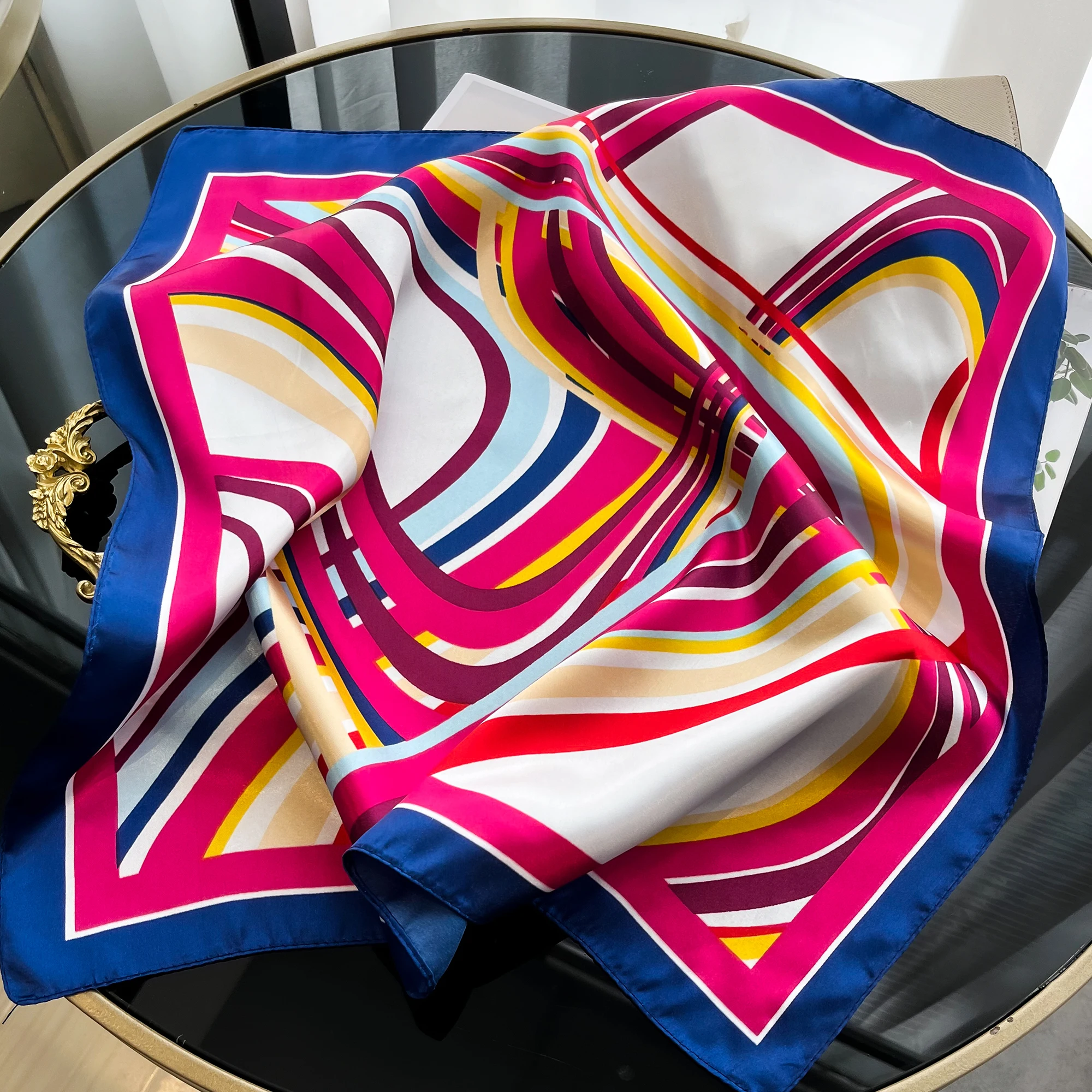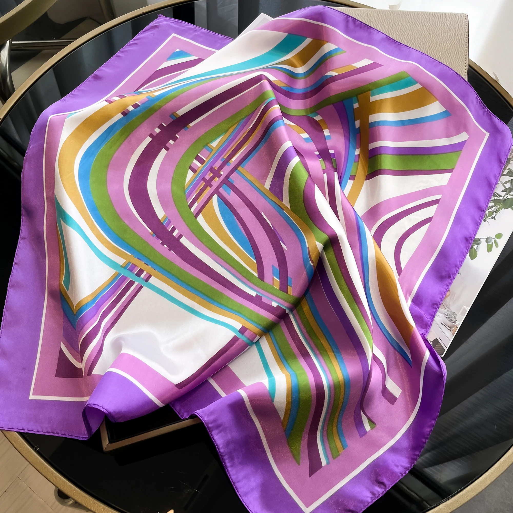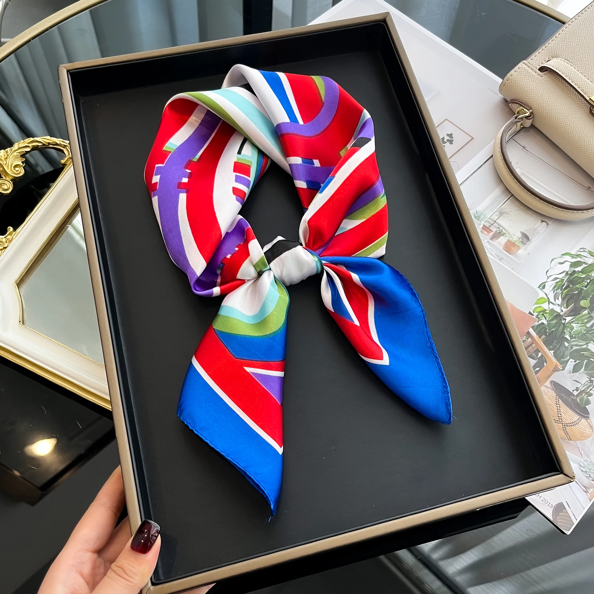 Sciarpa di seta quadrata di lusso per le donne Fasce per capelli Hijab Fazzoletto da collo Scialle di raso femminile Nastro Fascia Moda Avvolge Bandana 2024