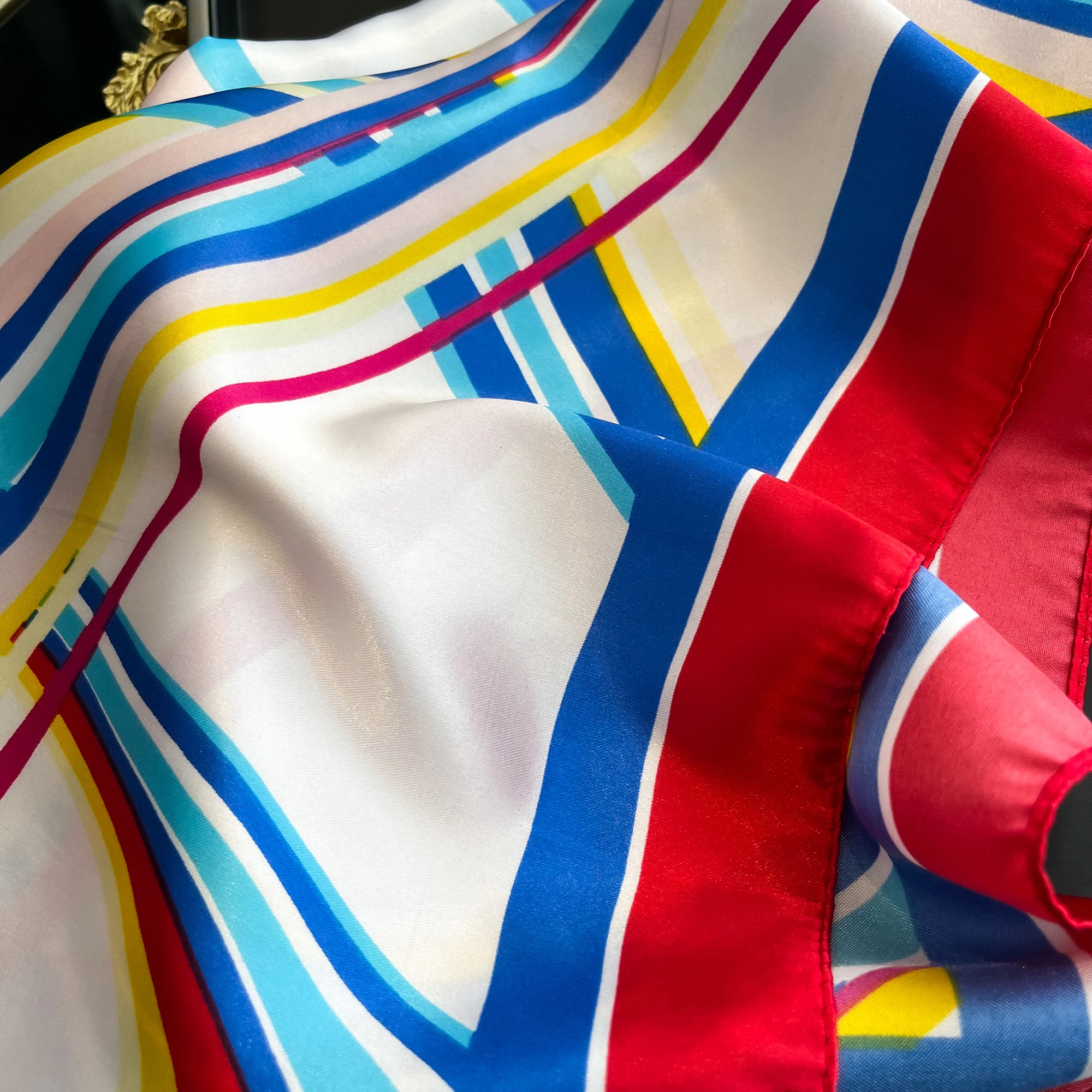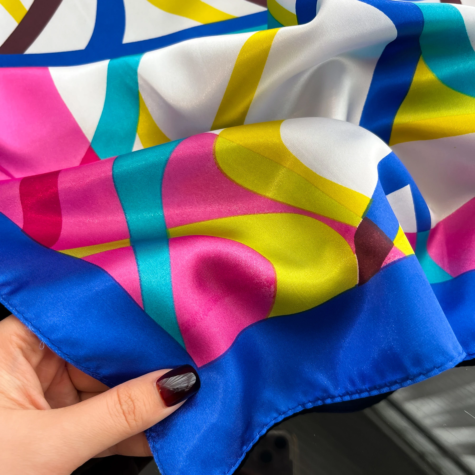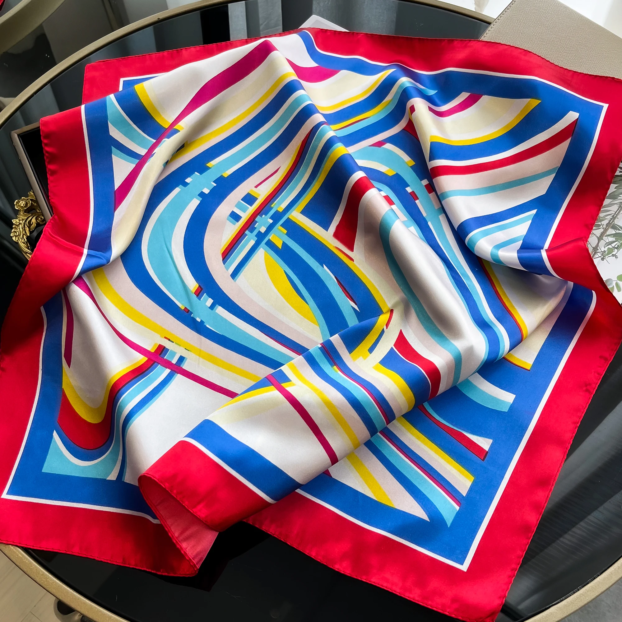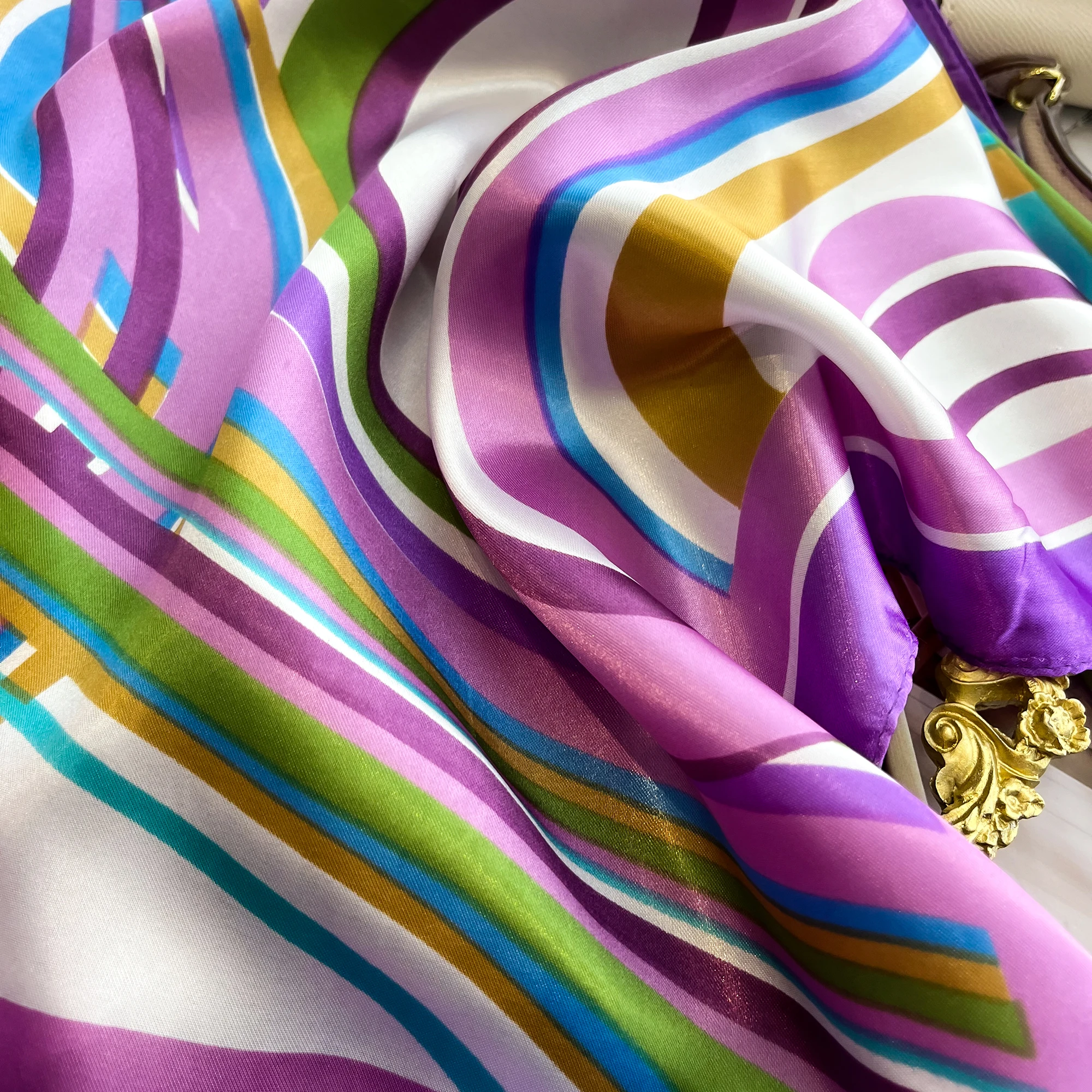 Sciarpa di seta quadrata di lusso per le donne Fasce per capelli Hijab Fazzoletto da collo Scialle di raso femminile Nastro Fascia Moda Avvolge Bandana 2024
