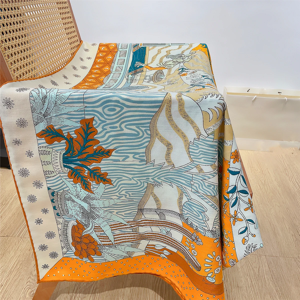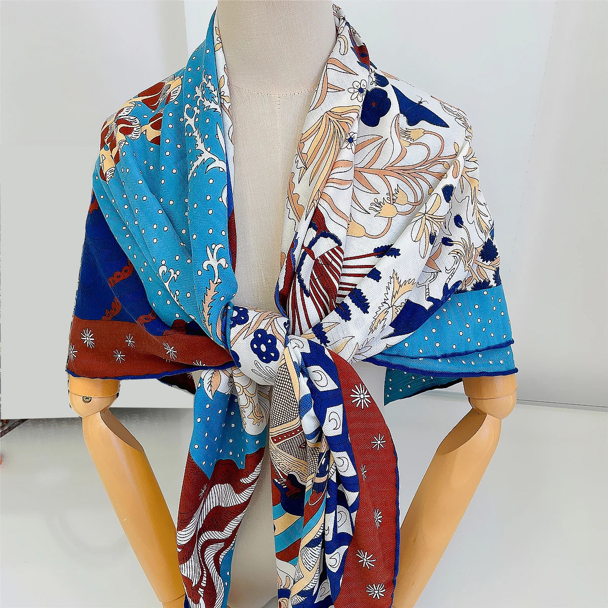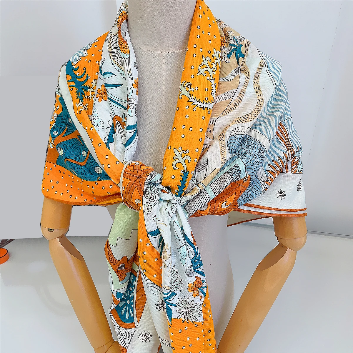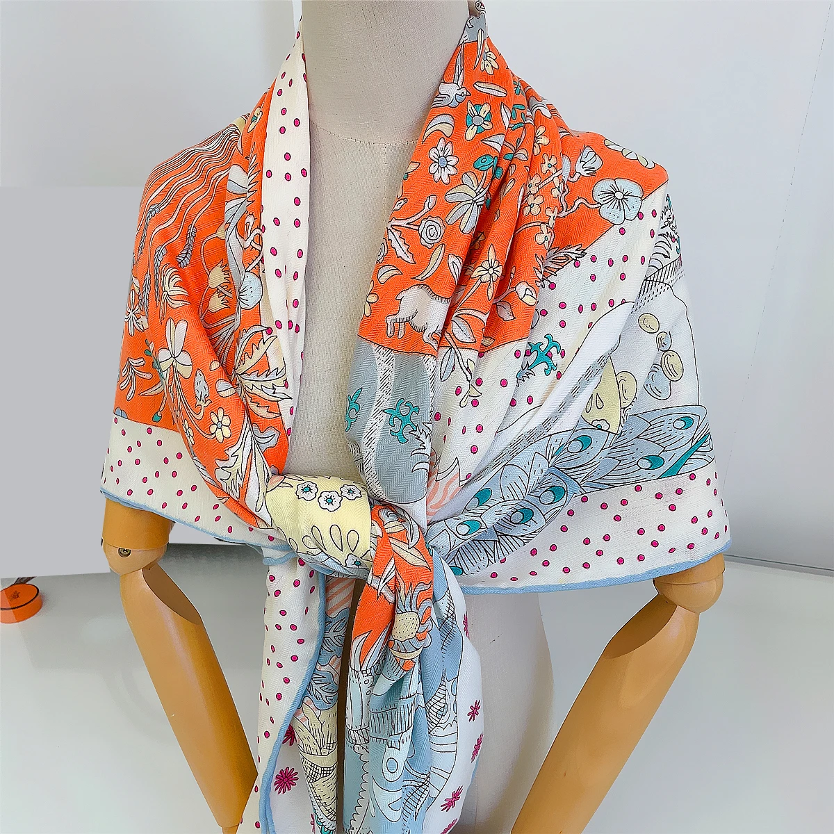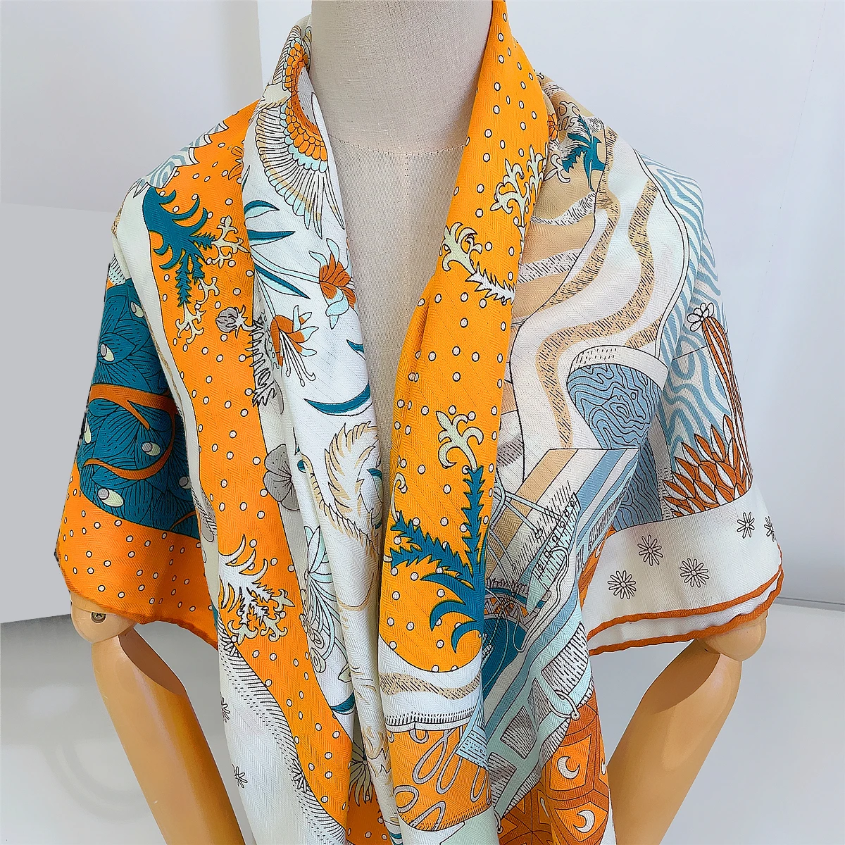 Sciarpa in Cashmere di seta termica da 130CM scialli arrotolati a mano da donna sala da concerto stampa sciarpe quadrate avvolge Bandana hijab Foulard femminile