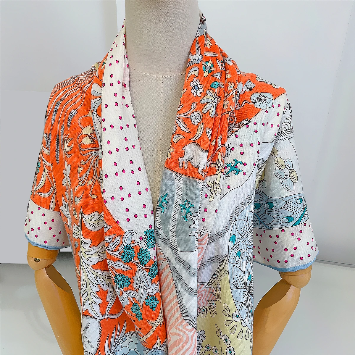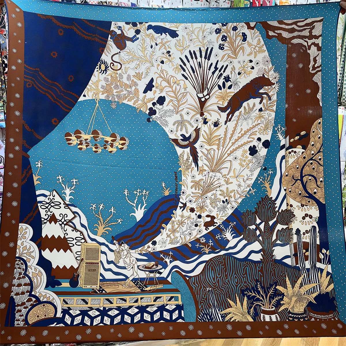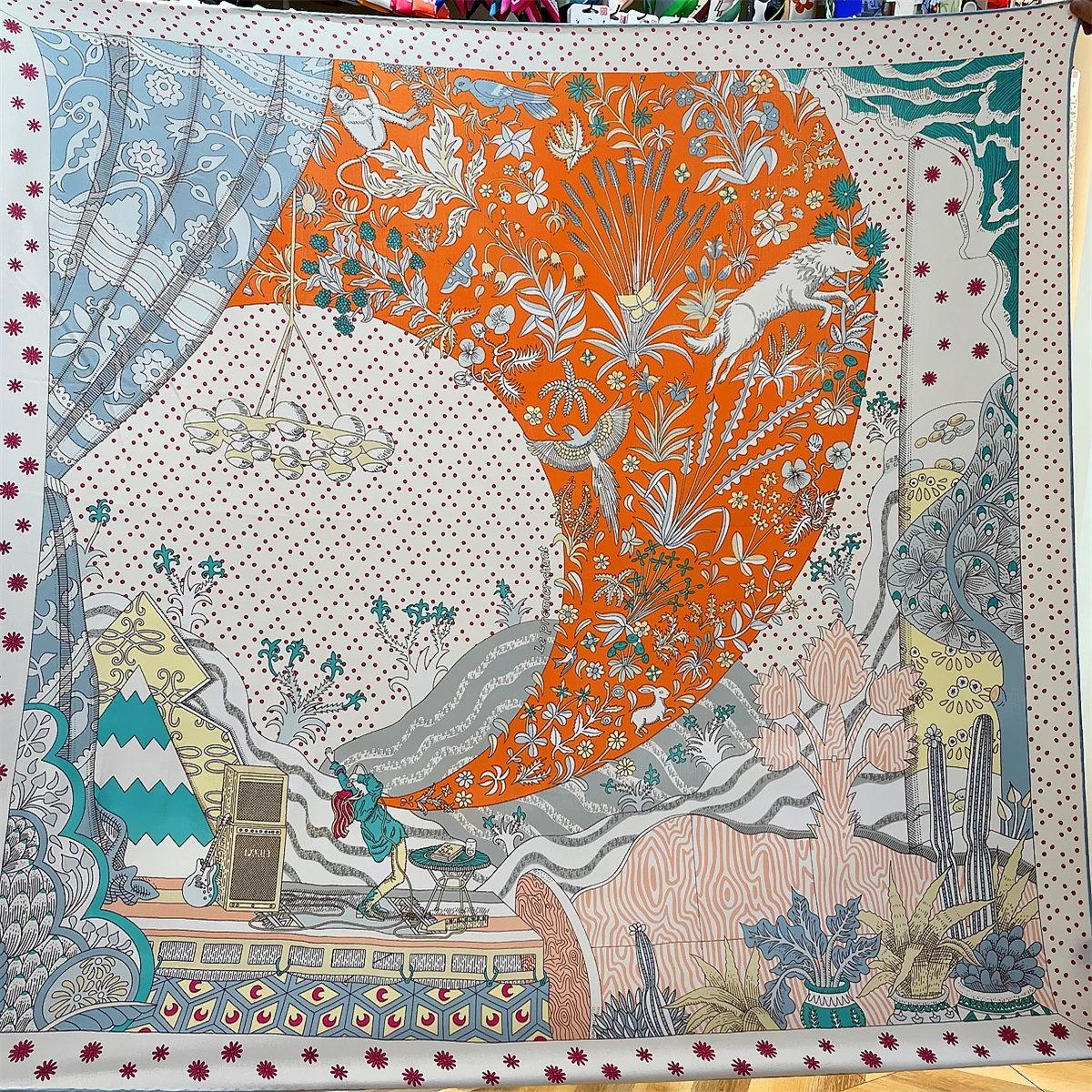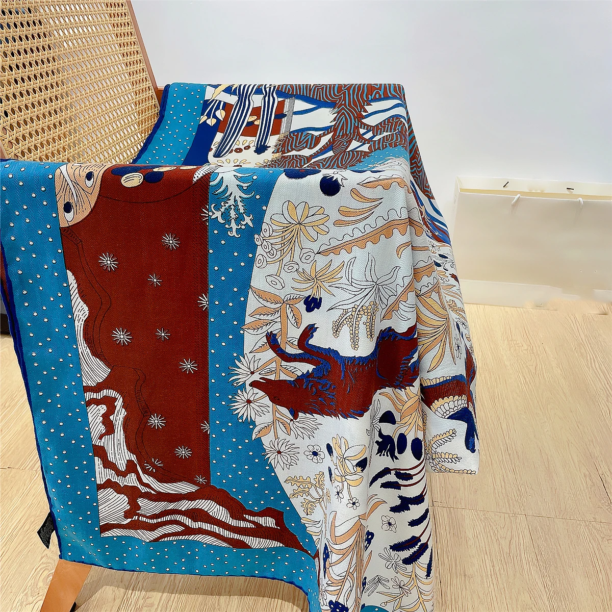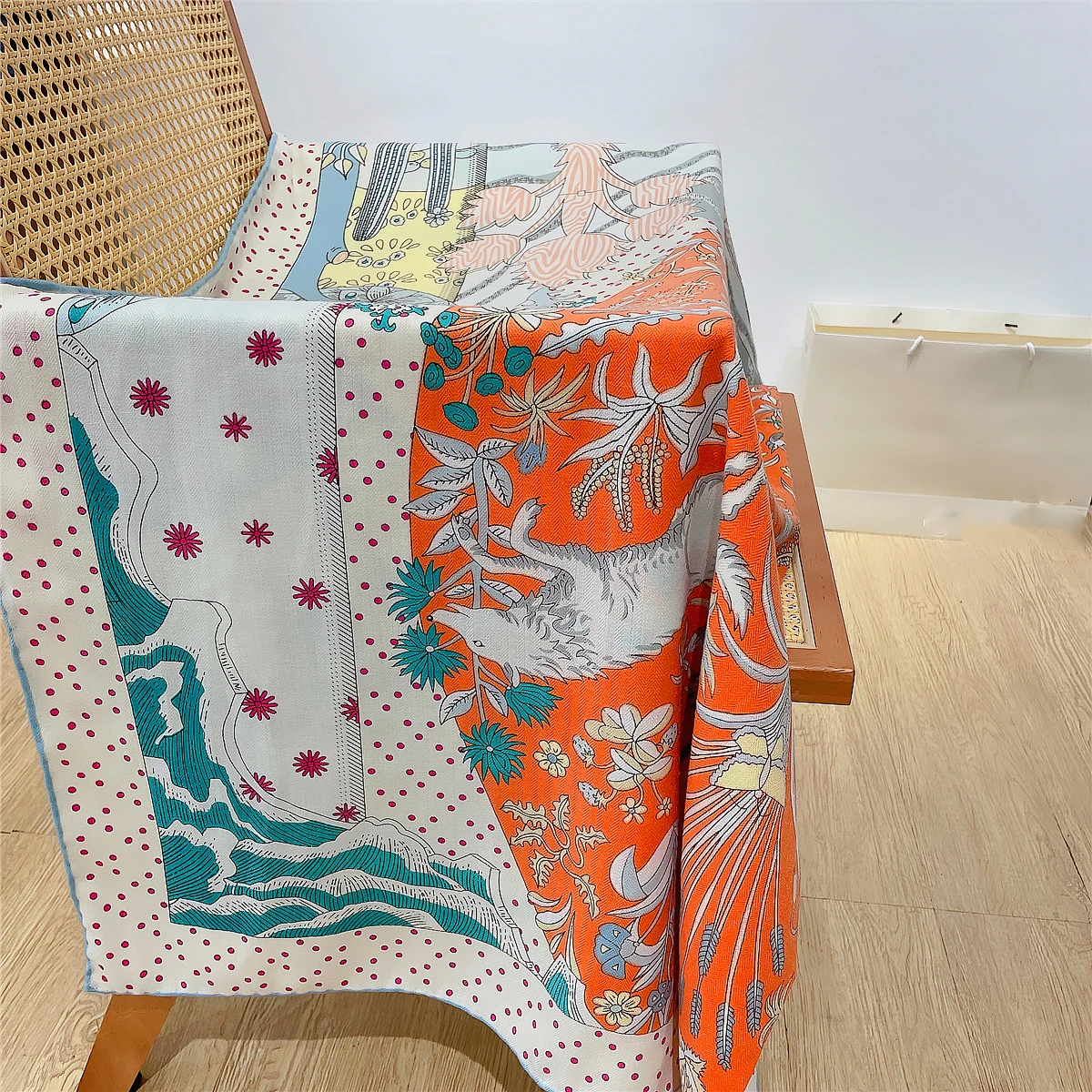 Sciarpa in Cashmere di seta termica da 130CM scialli arrotolati a mano da donna sala da concerto stampa sciarpe quadrate avvolge Bandana hijab Foulard femminile