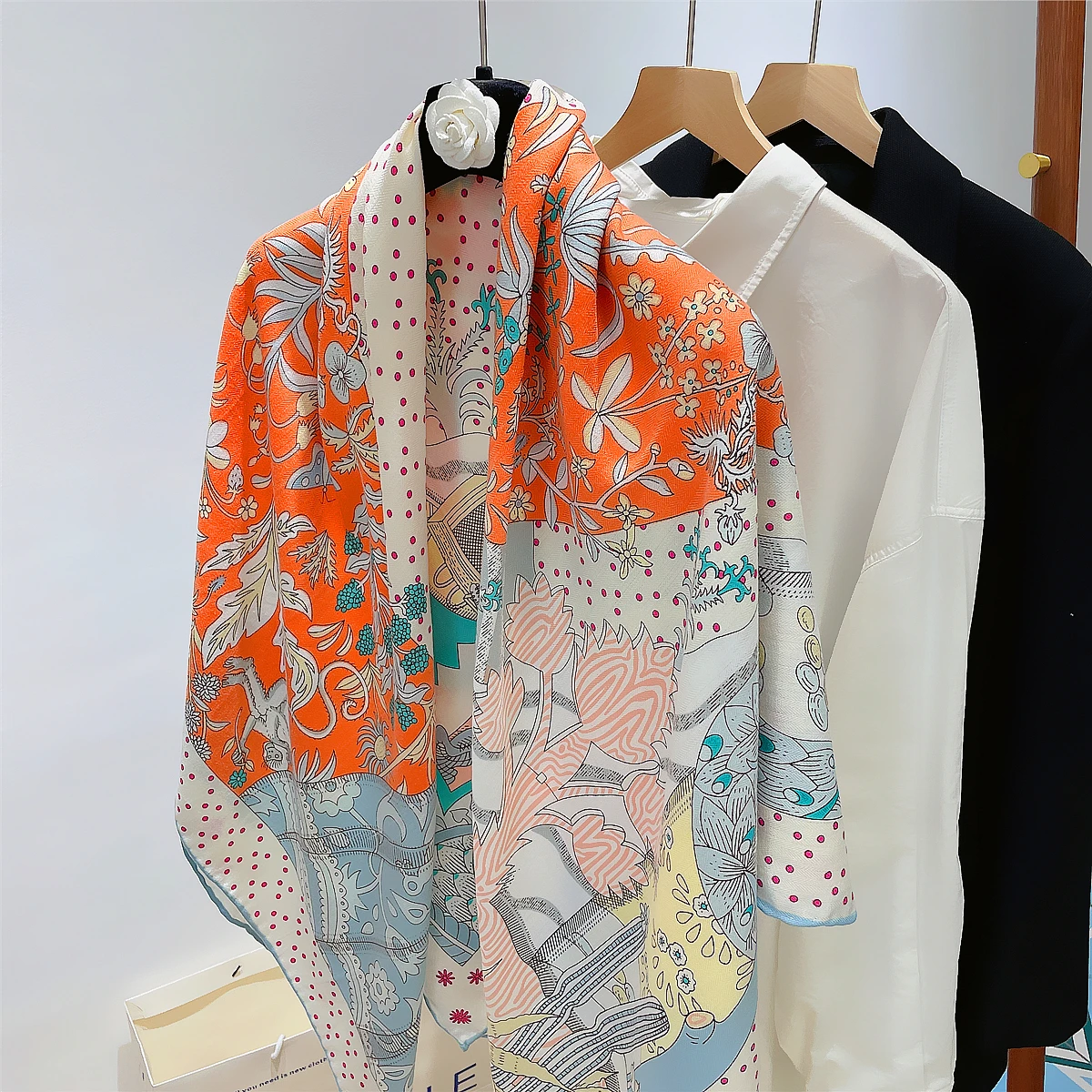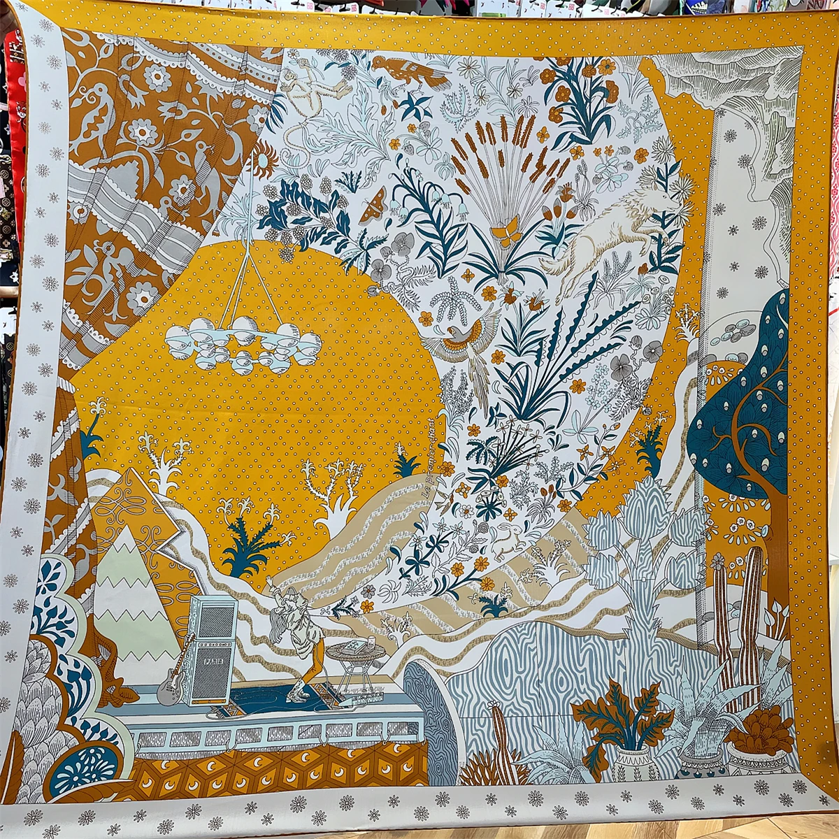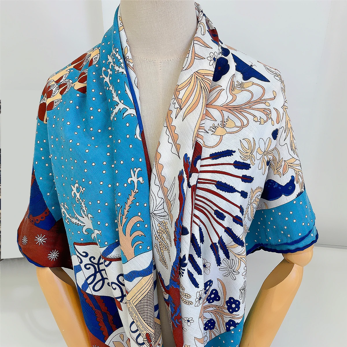 Sciarpa in Cashmere di seta termica da 130CM scialli arrotolati a mano da donna sala da concerto stampa sciarpe quadrate avvolge Bandana hijab Foulard femminile
