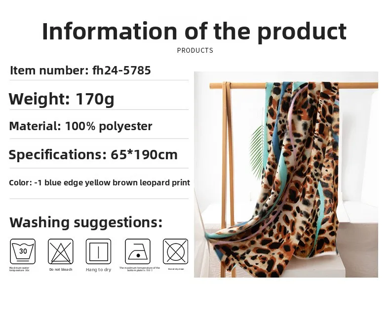 Sciarpa in cashmere imitazione con sensazione di fascia alta per l’inverno da donna 2025 Sciarpa calda versatile con stampa animalier con stampa leopardata di nuovo stileDisponibilità: 12 disponibili