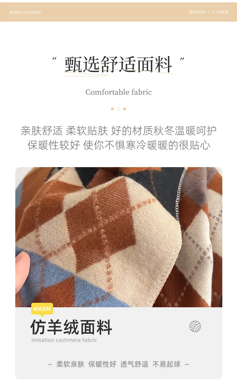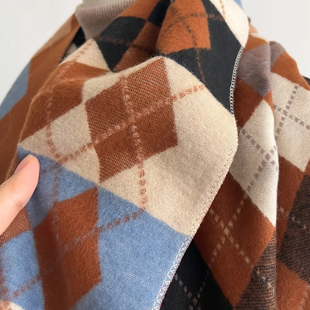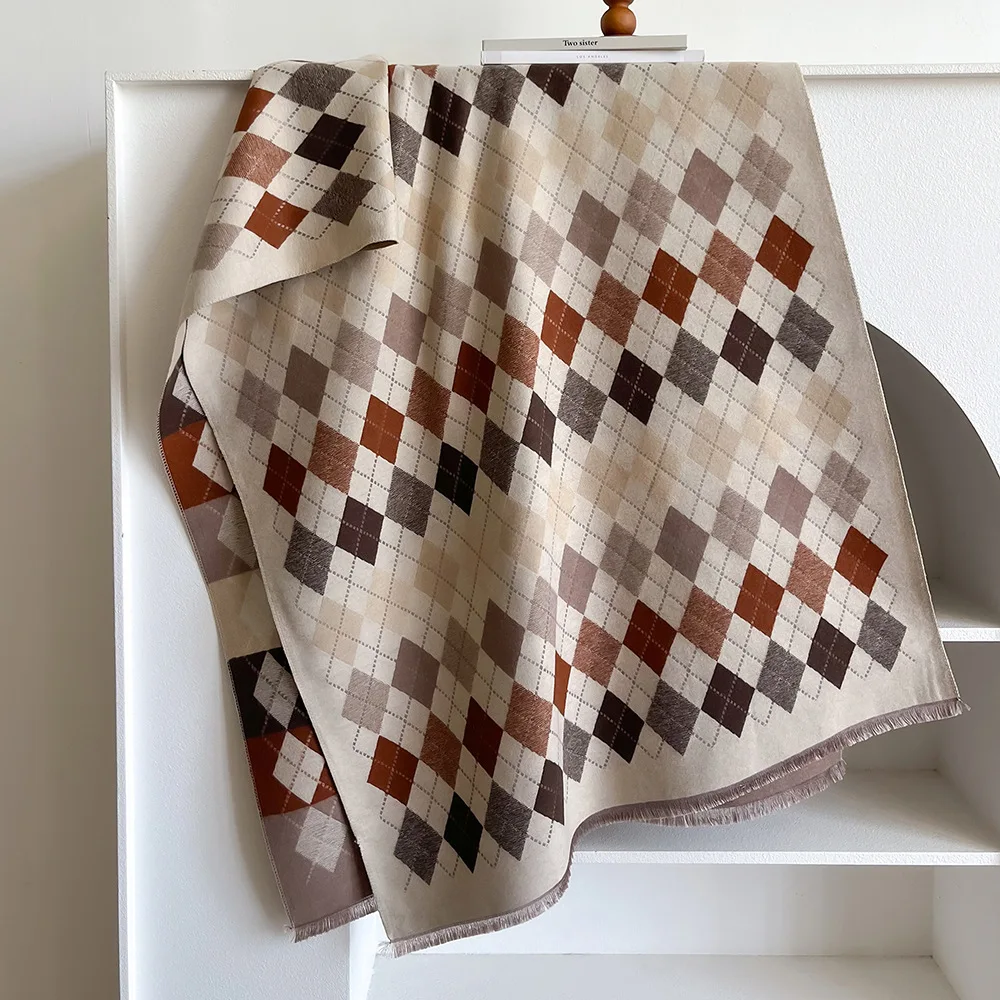 Sciarpa in cashmere imitazione diamante stile college neutro retrò britannico con scialle da studente beige di fascia alta con nappa Szalik 4w935