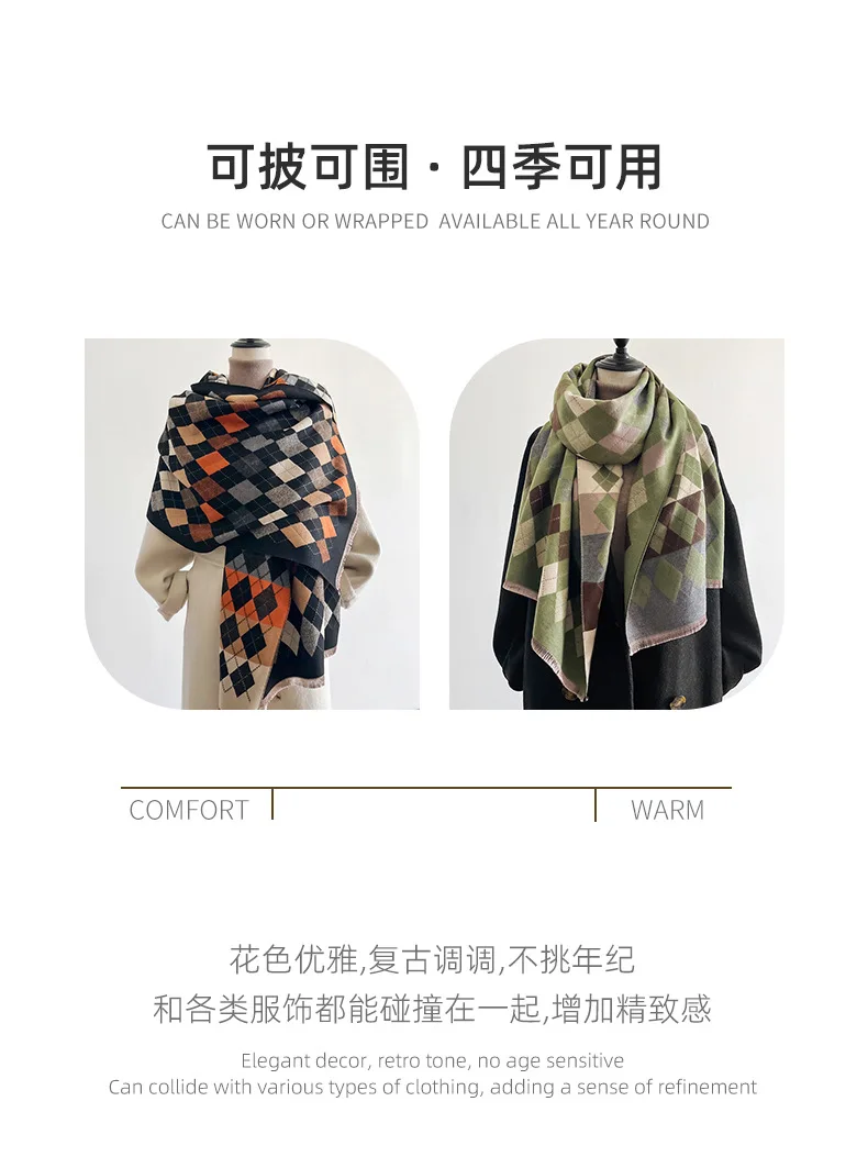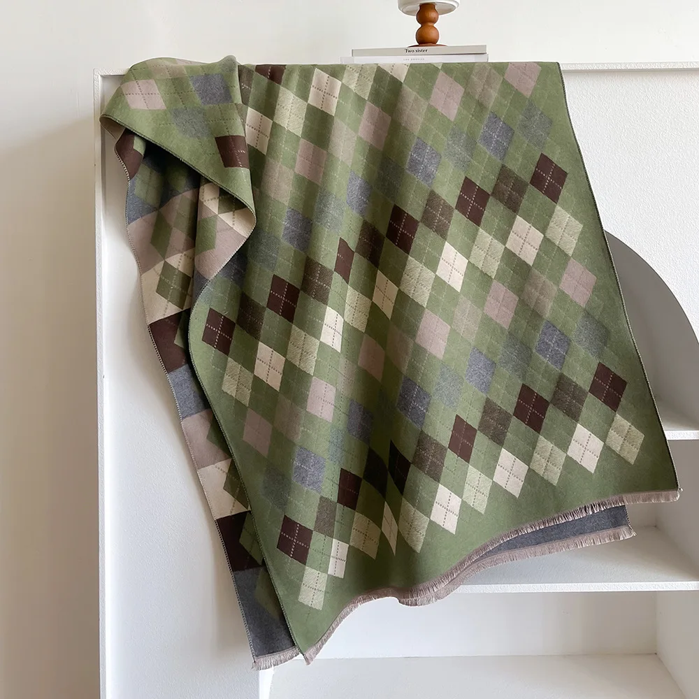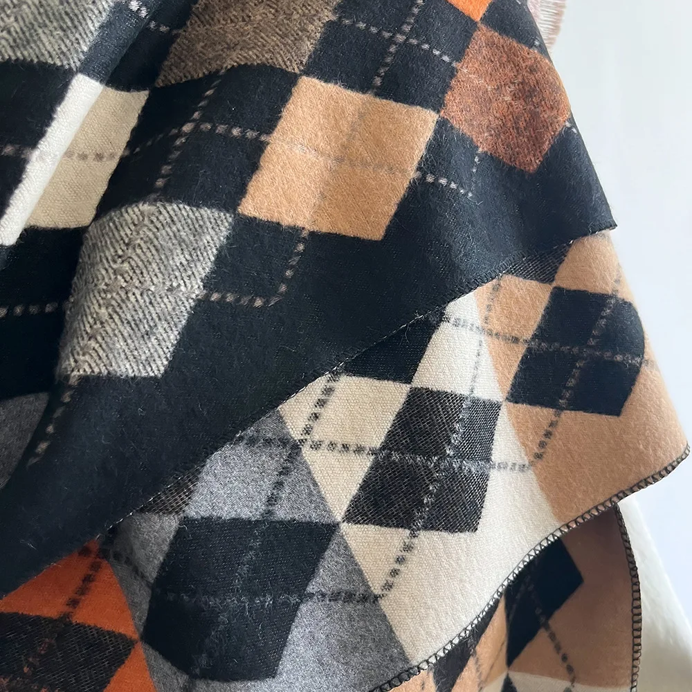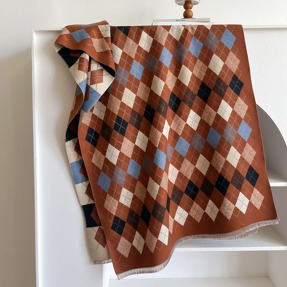 Sciarpa in cashmere imitazione diamante stile college neutro retrò britannico con scialle da studente beige di fascia alta con nappa Szalik 4w935