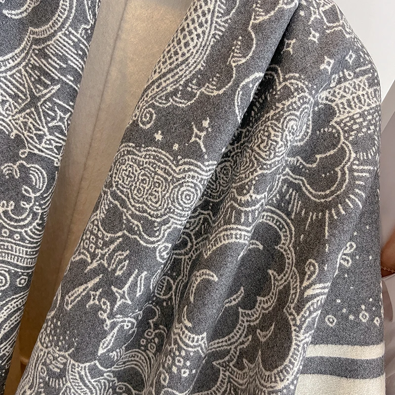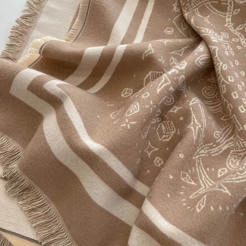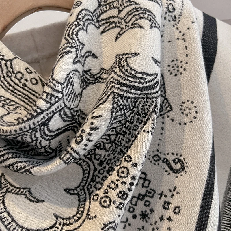 Sciarpa invernale in cashmere da donna di marca di lusso 2025 – Scialle, bandana e poncho con scialle di pashmina con nappe stampate floreali