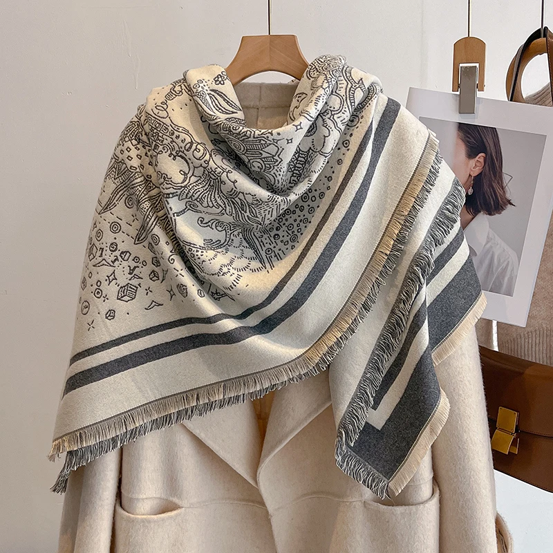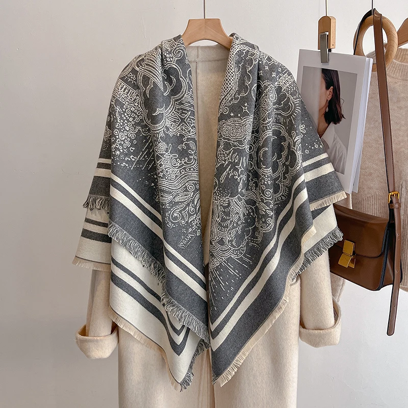 Sciarpa invernale in cashmere da donna di marca di lusso 2025 – Scialle, bandana e poncho con scialle di pashmina con nappe stampate floreali