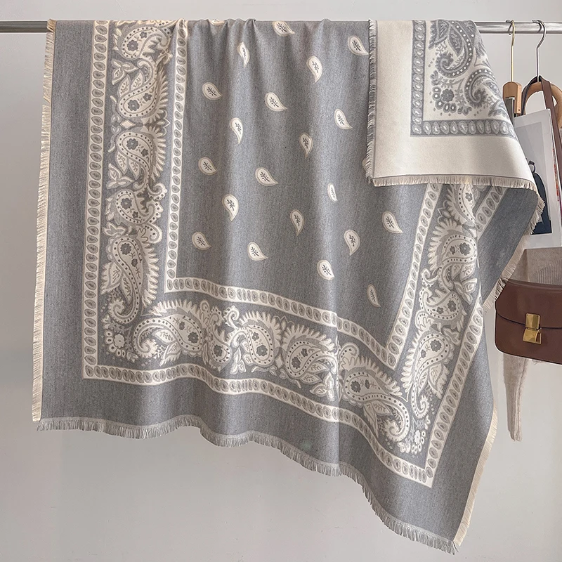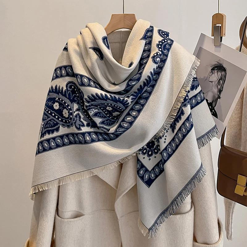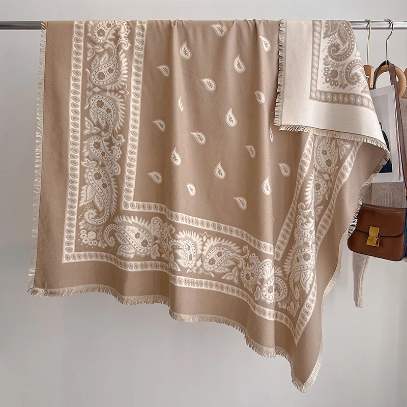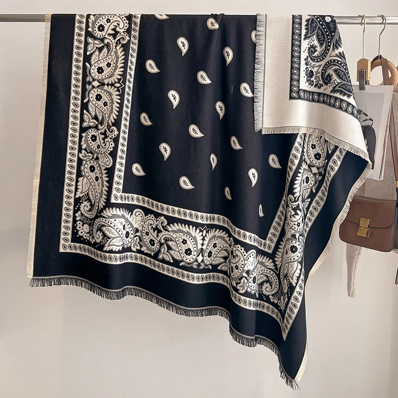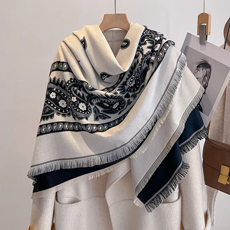 Sciarpa invernale in cashmere da donna di marca di lusso 2025 – Scialle, bandana e poncho con scialle di pashmina con nappe stampate paisley